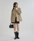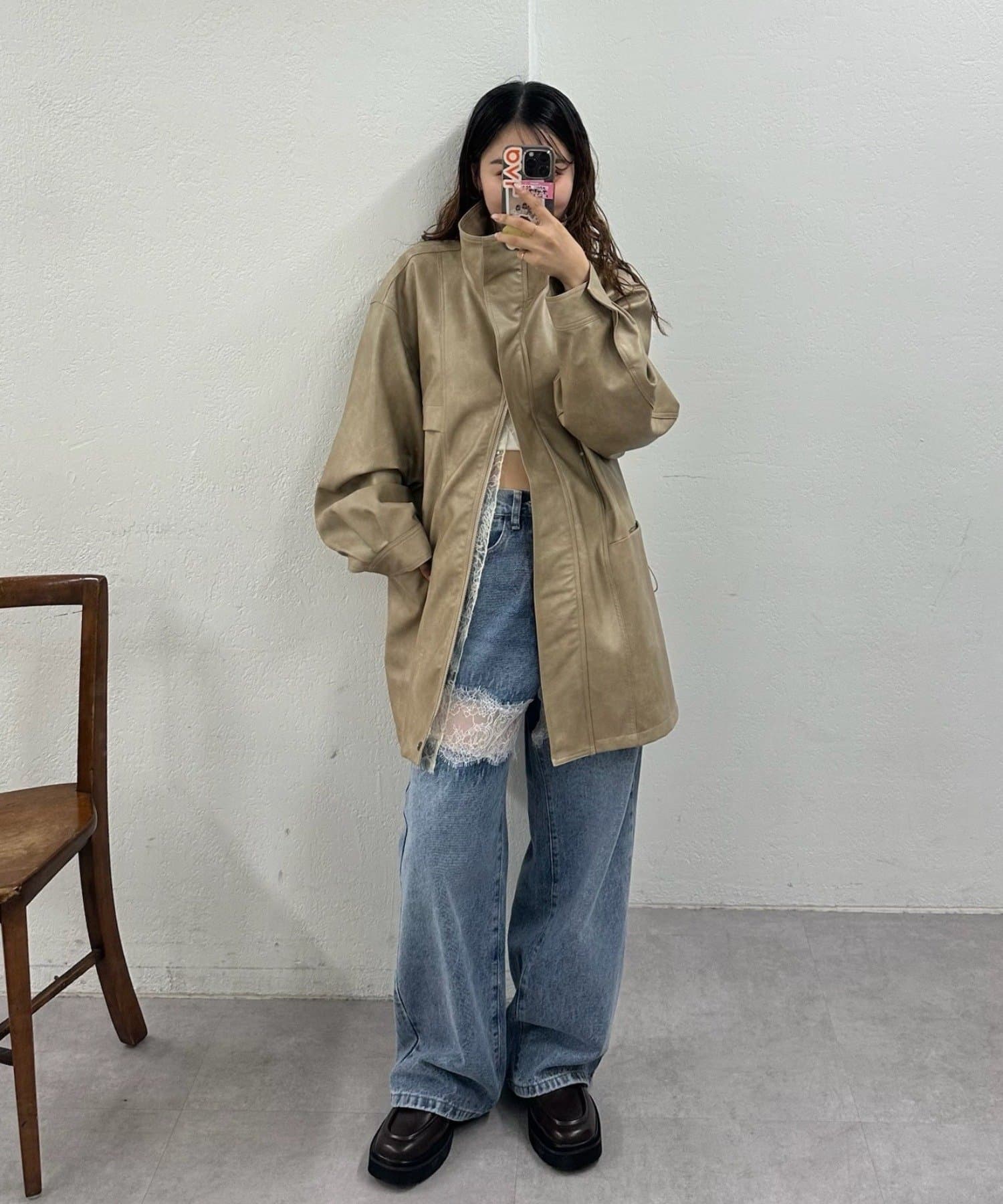 ゆったりとしたサイズ感なので、中に厚手のニットを着ることも出来るので冬まで長く着れます!