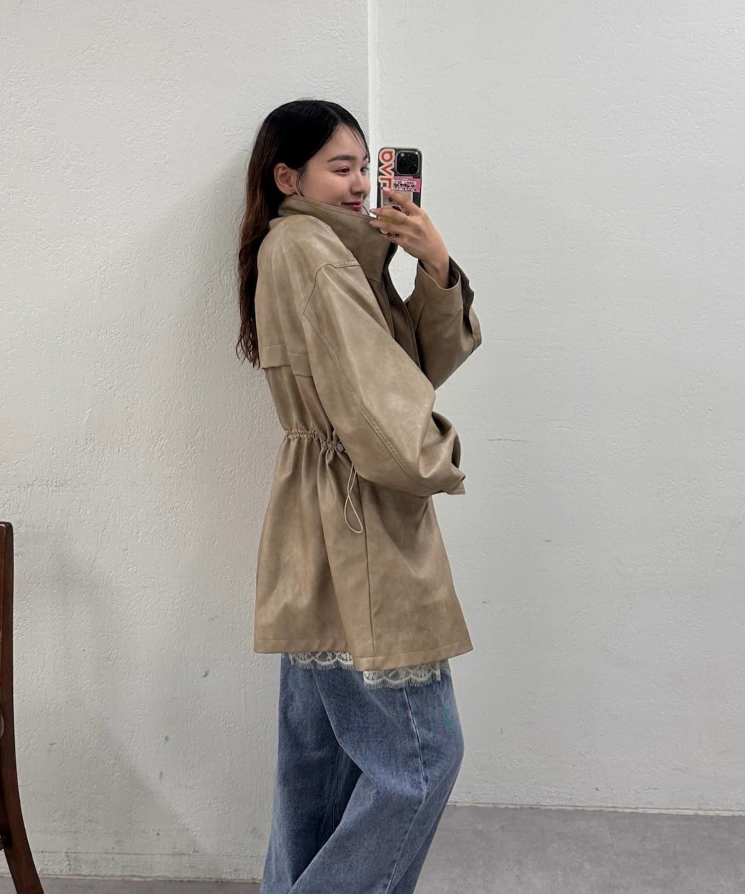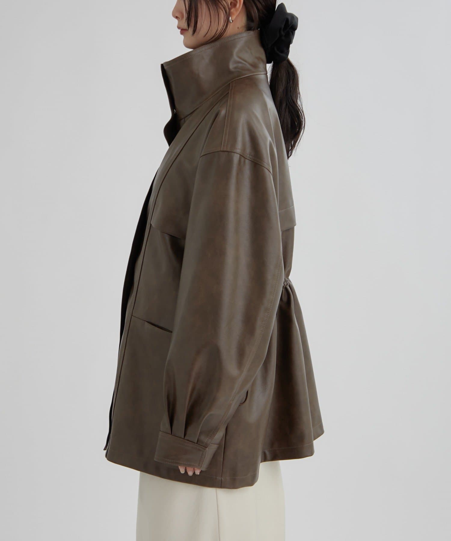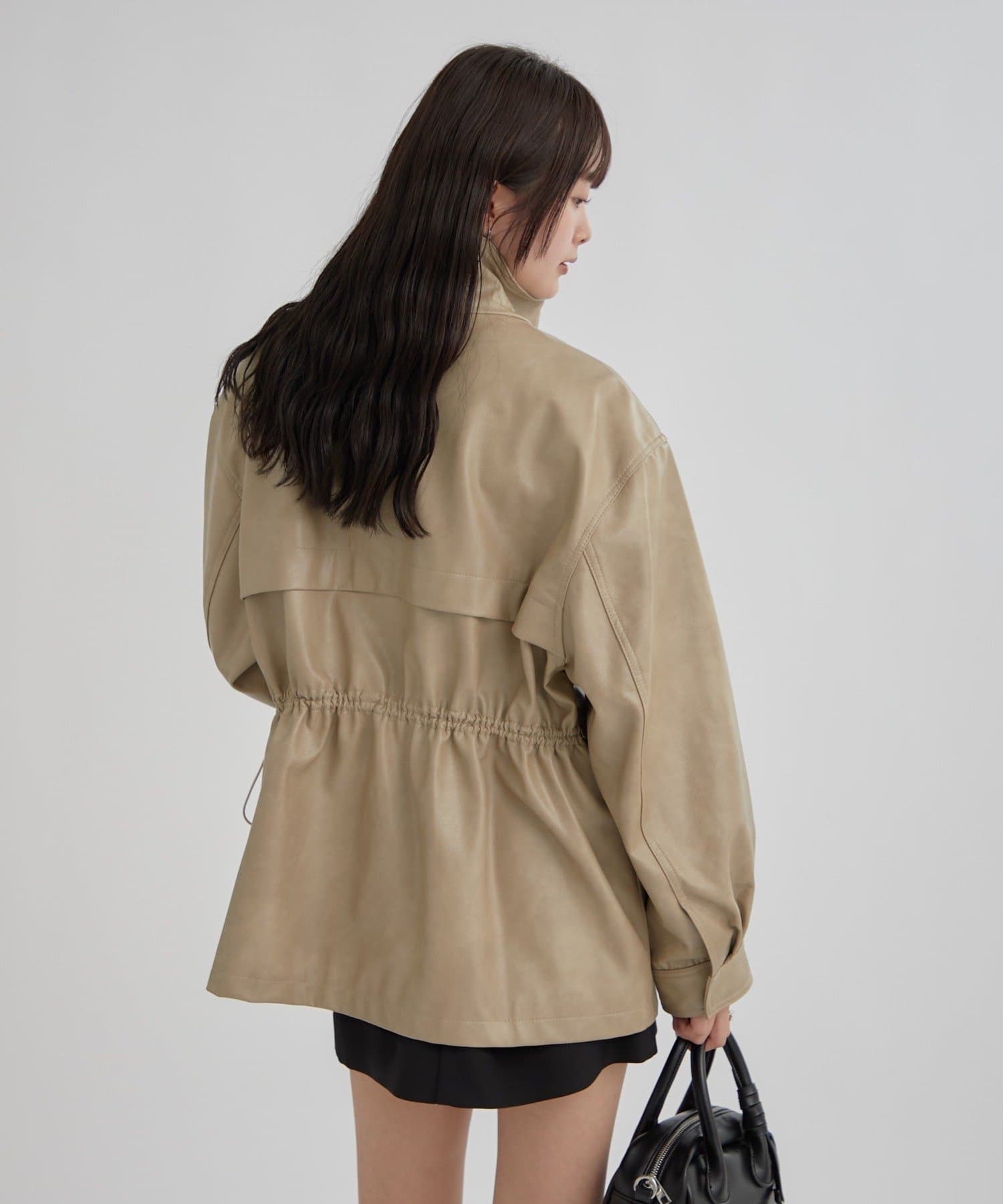 • mystic(ミスティック) 【ウエストが絞れるのが嬉しい!】ドロストフェイクレザーブルゾン