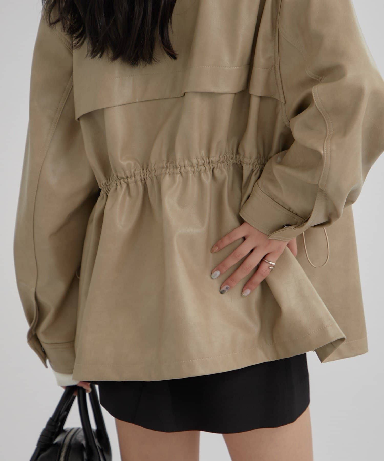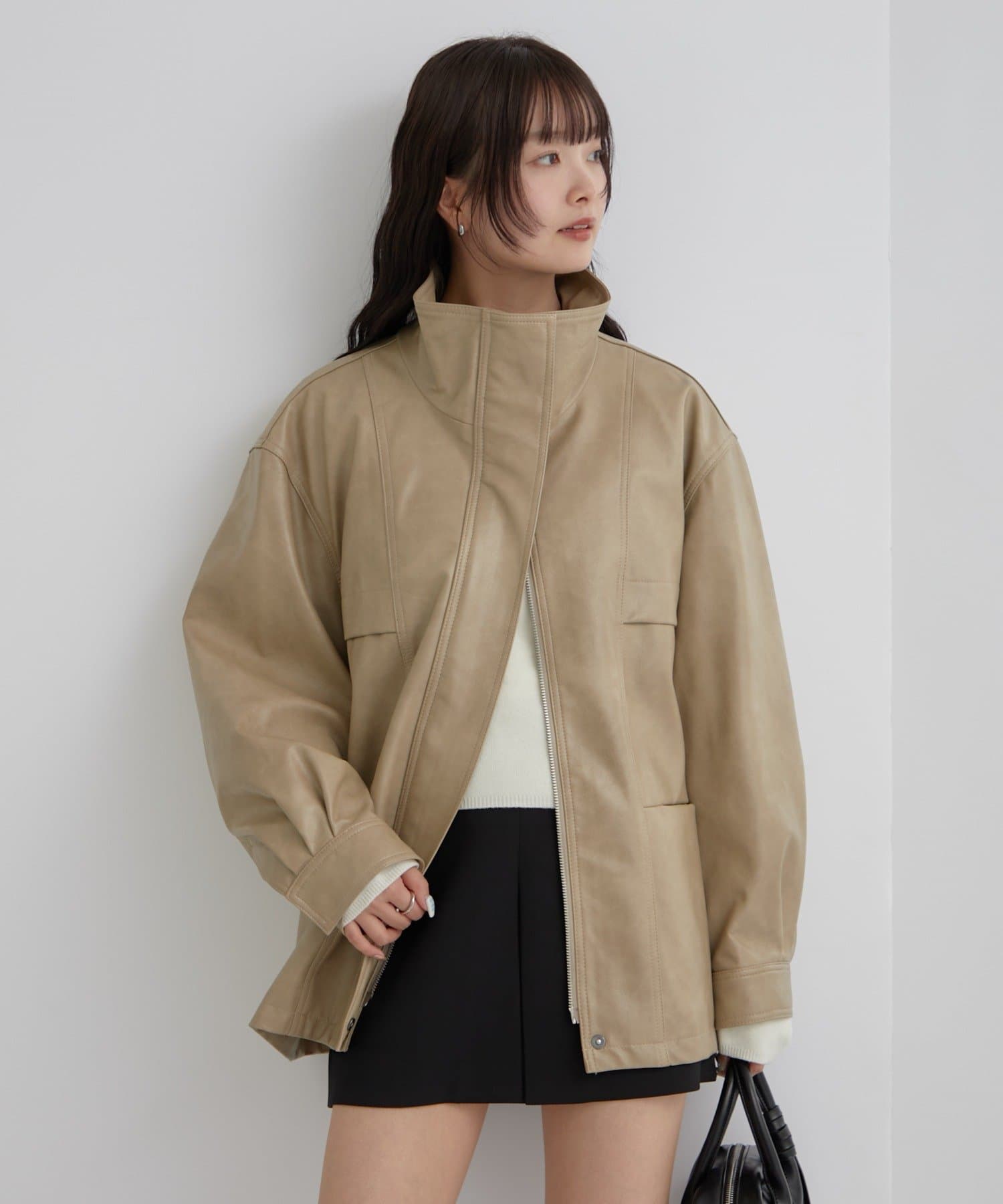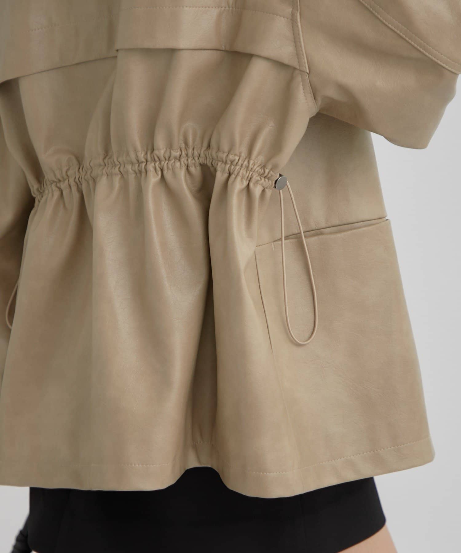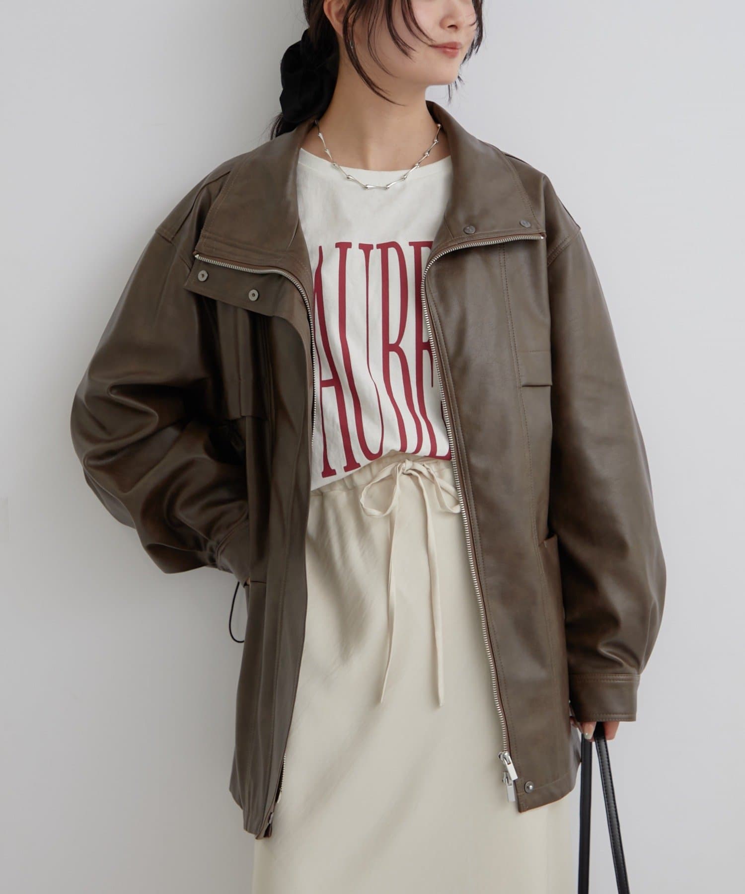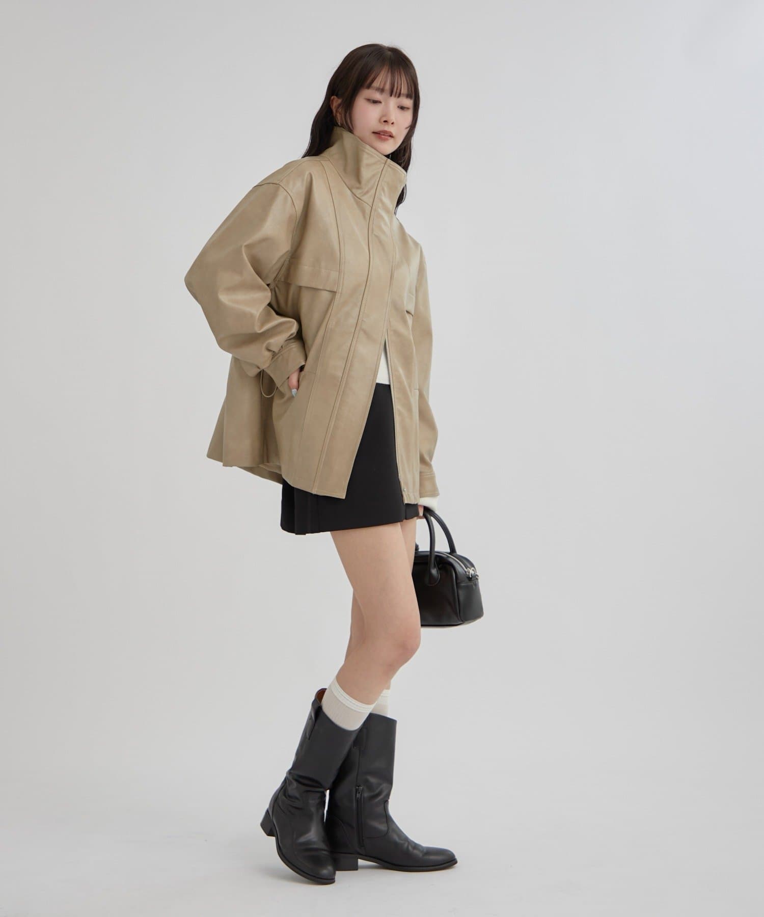 大きめシルエットのドロストフェイクレザーブルゾンが登場!