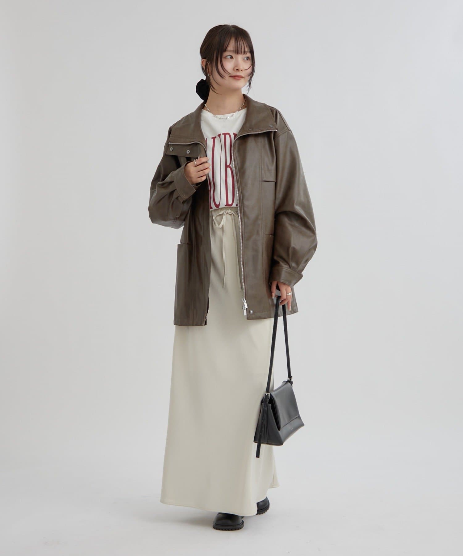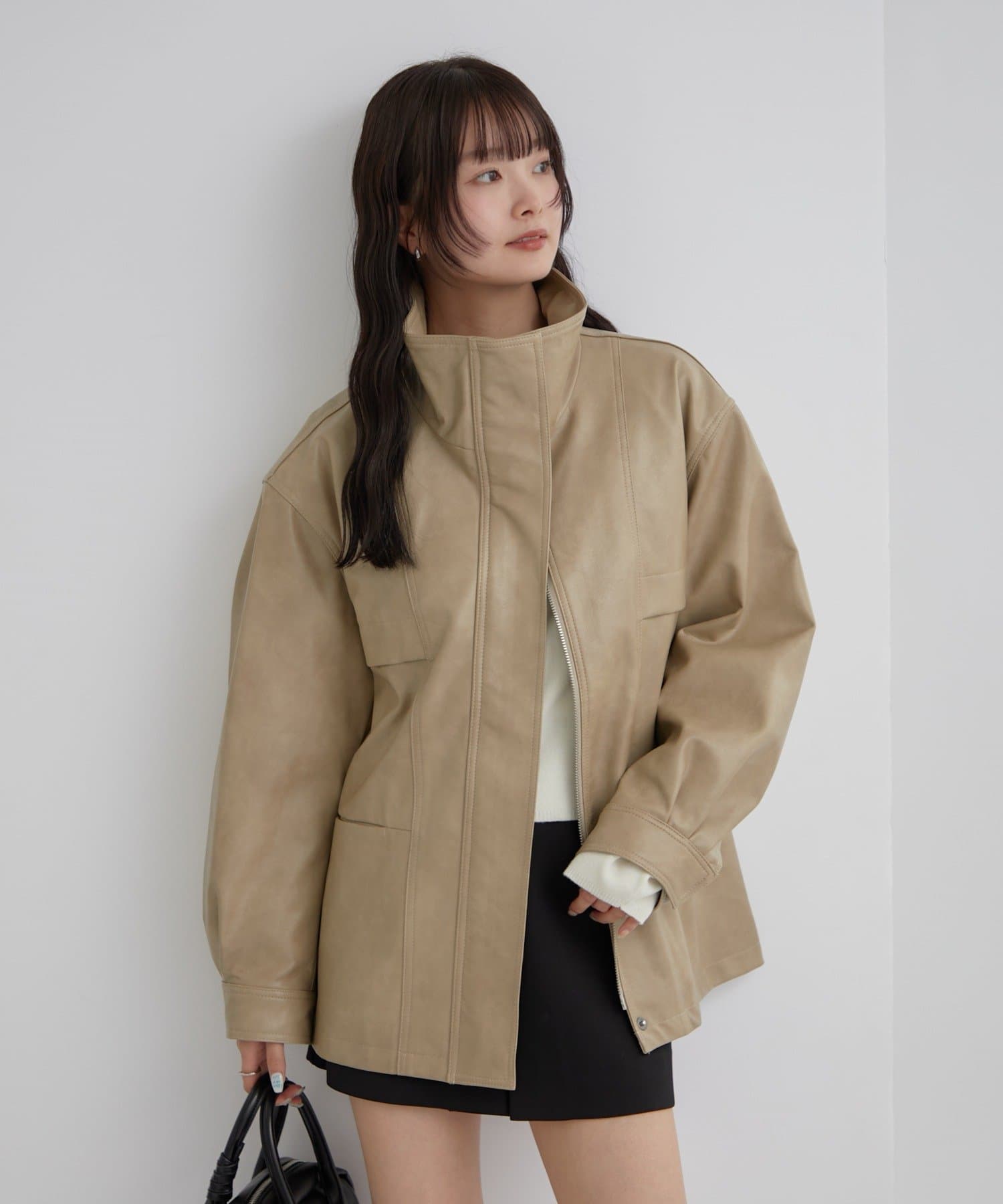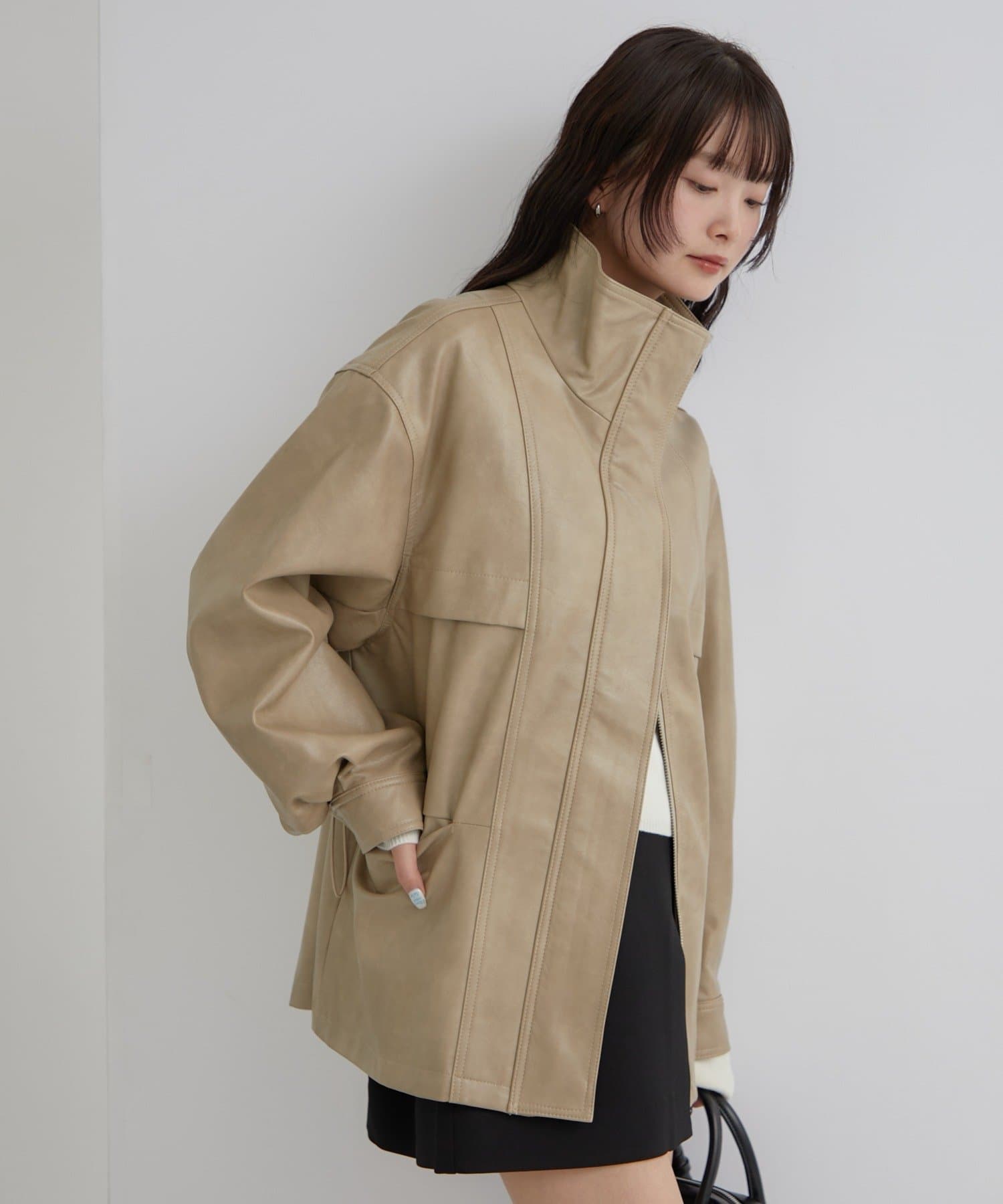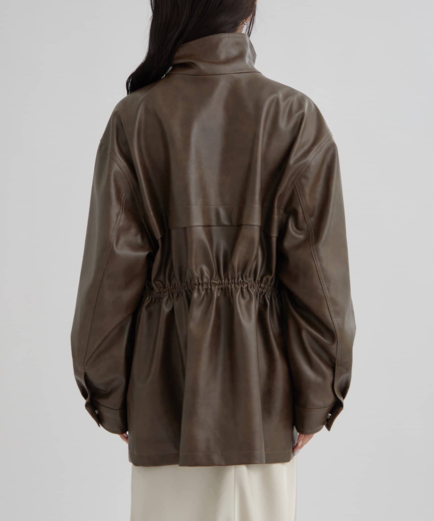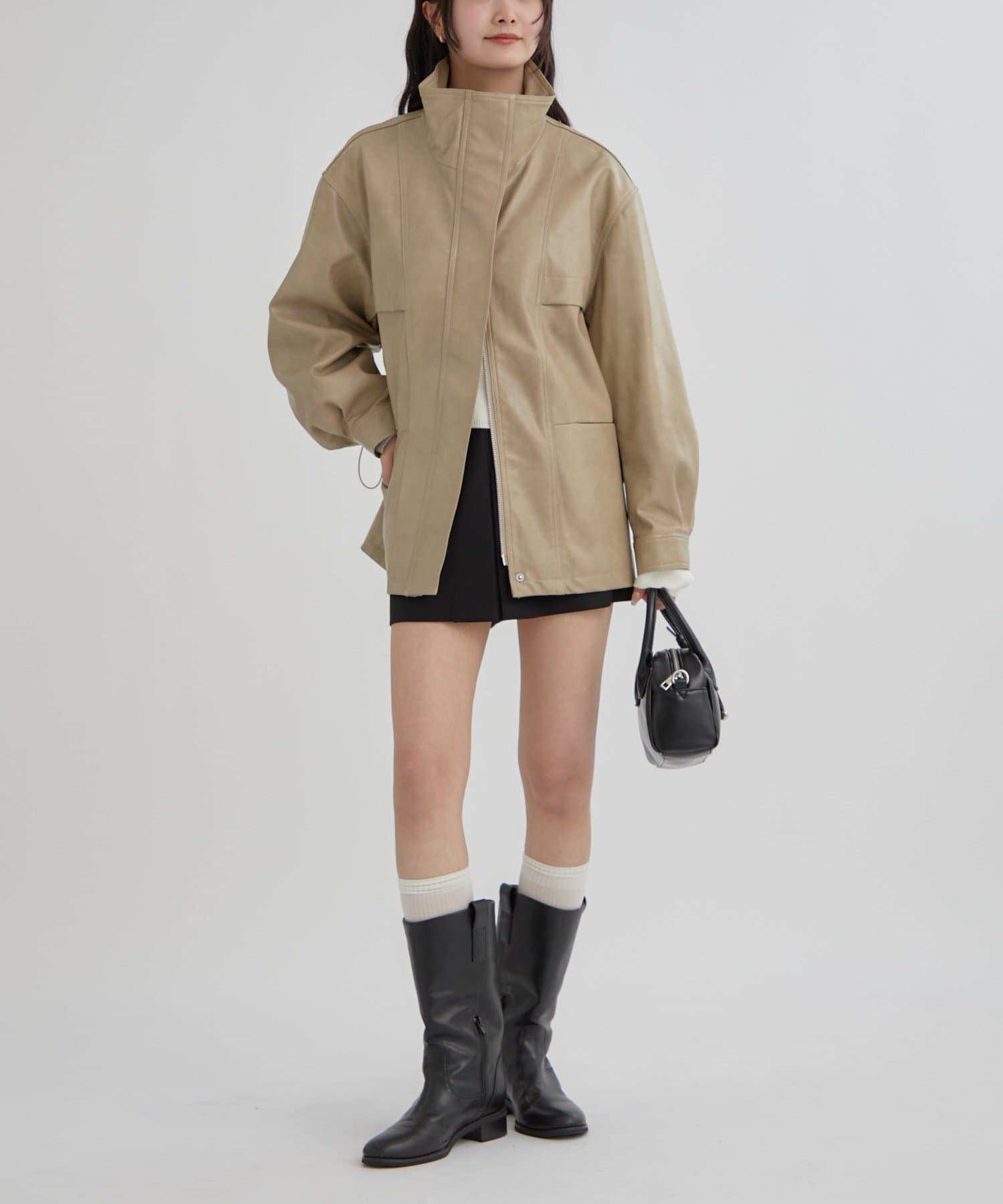大きめシルエットのドロストフェイクレザーブルゾンが登場!