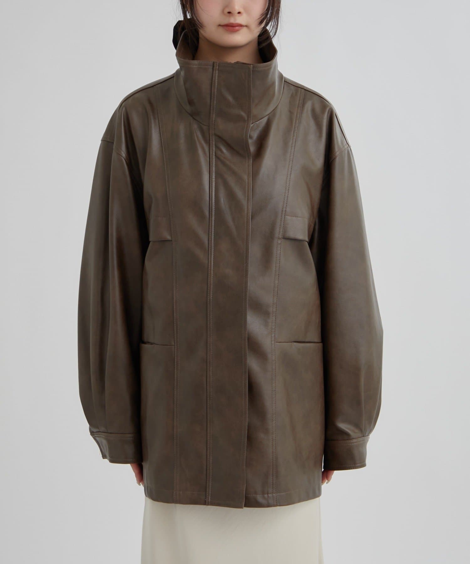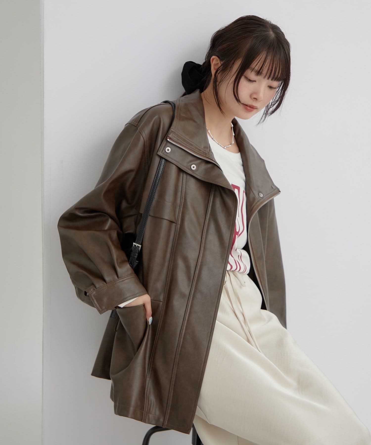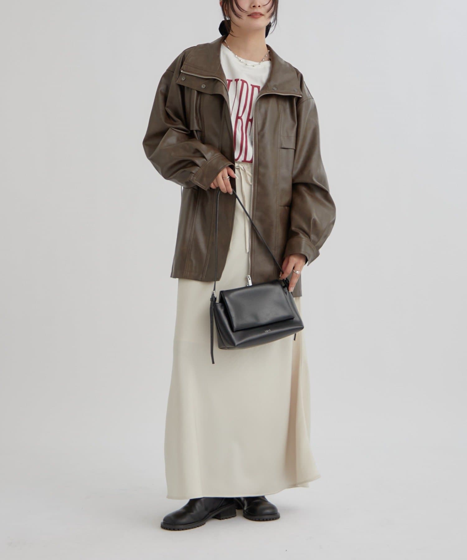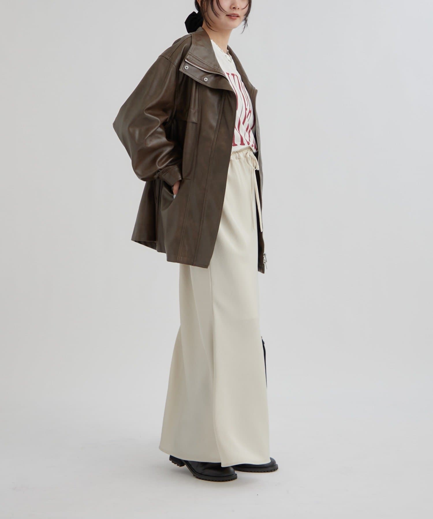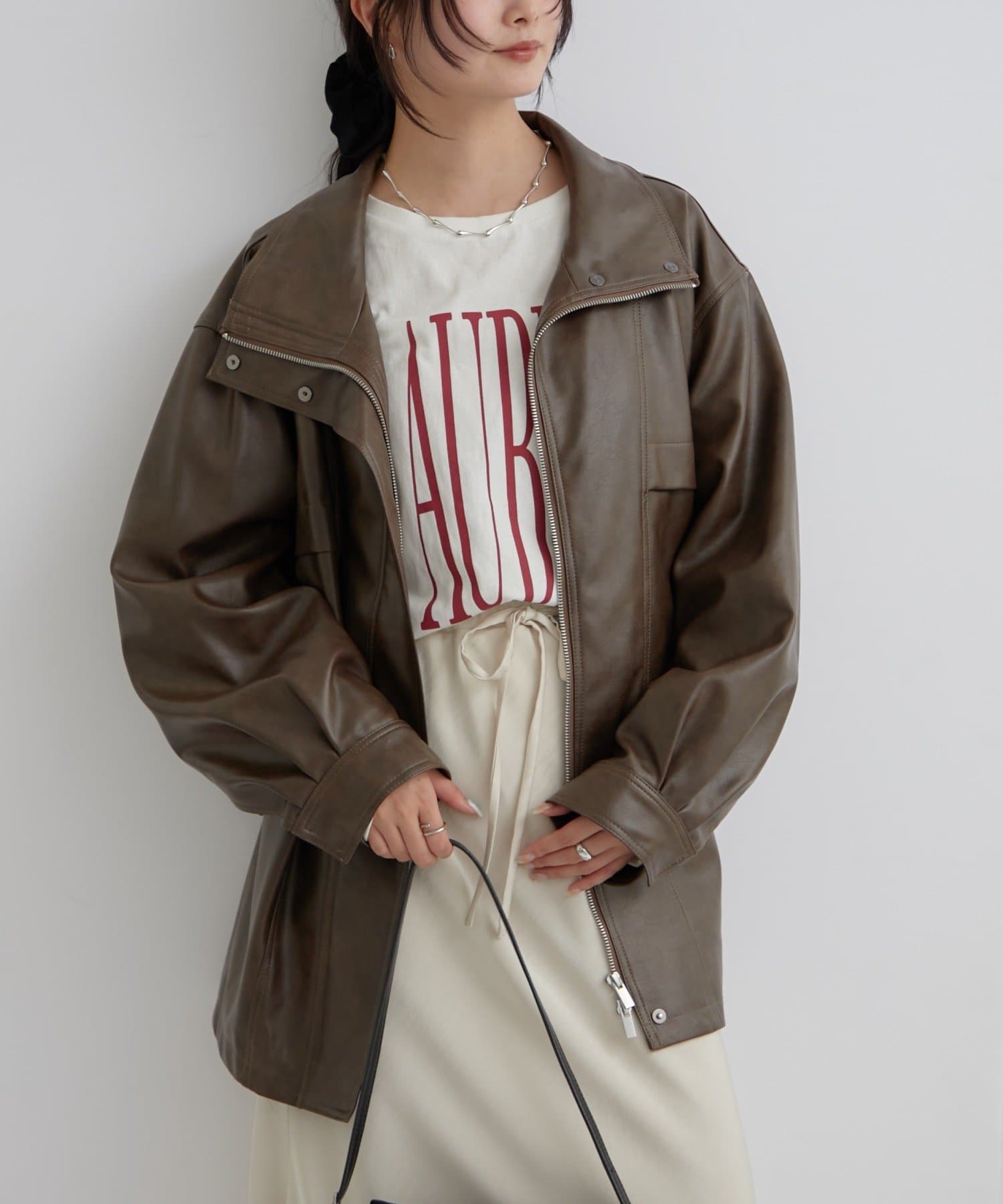 大きめシルエットのドロストフェイクレザーブルゾンが登場!