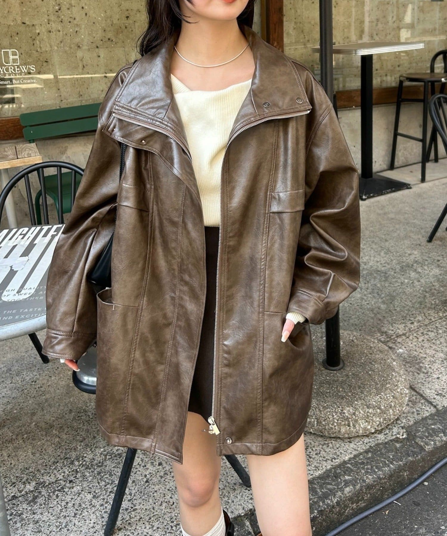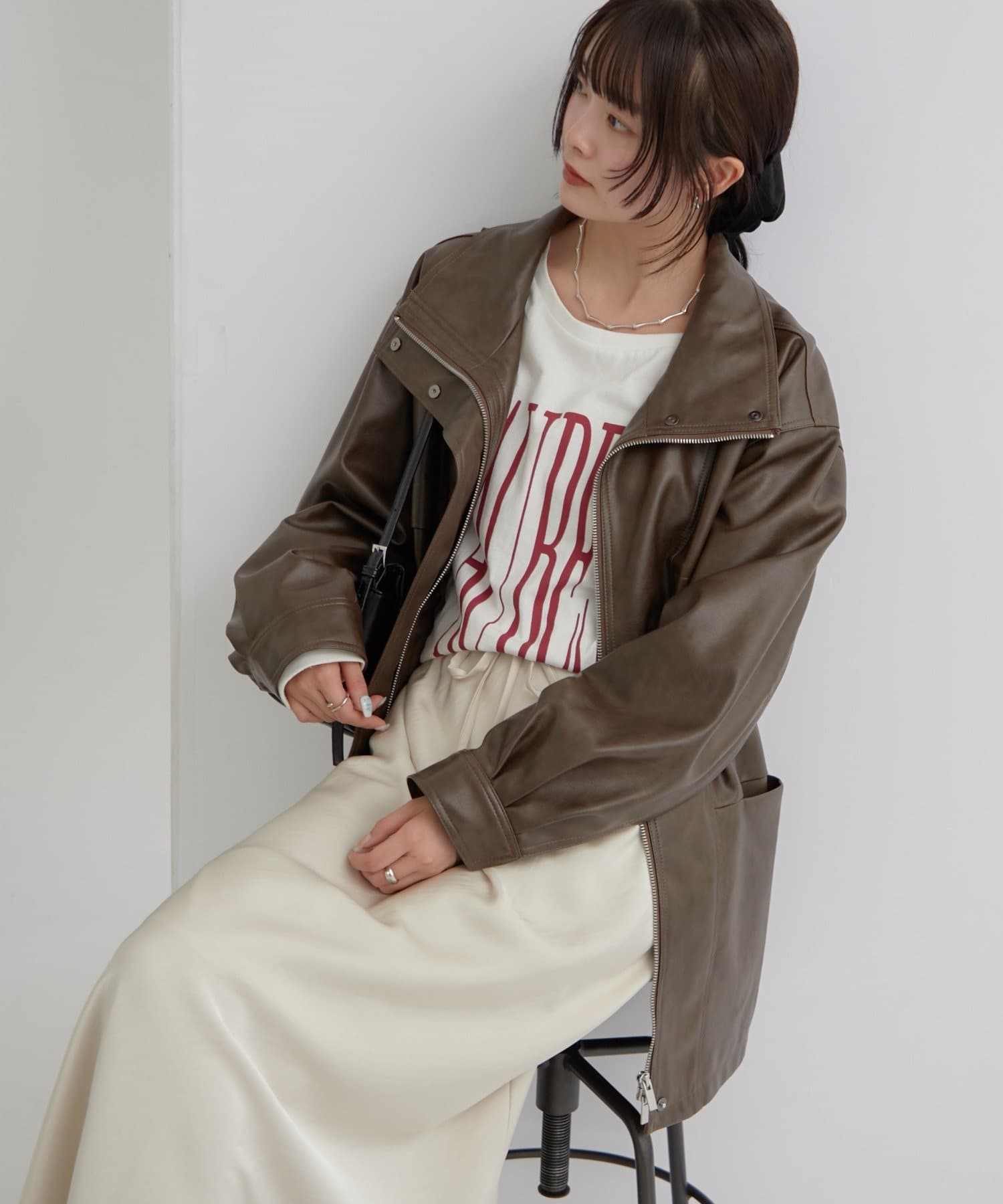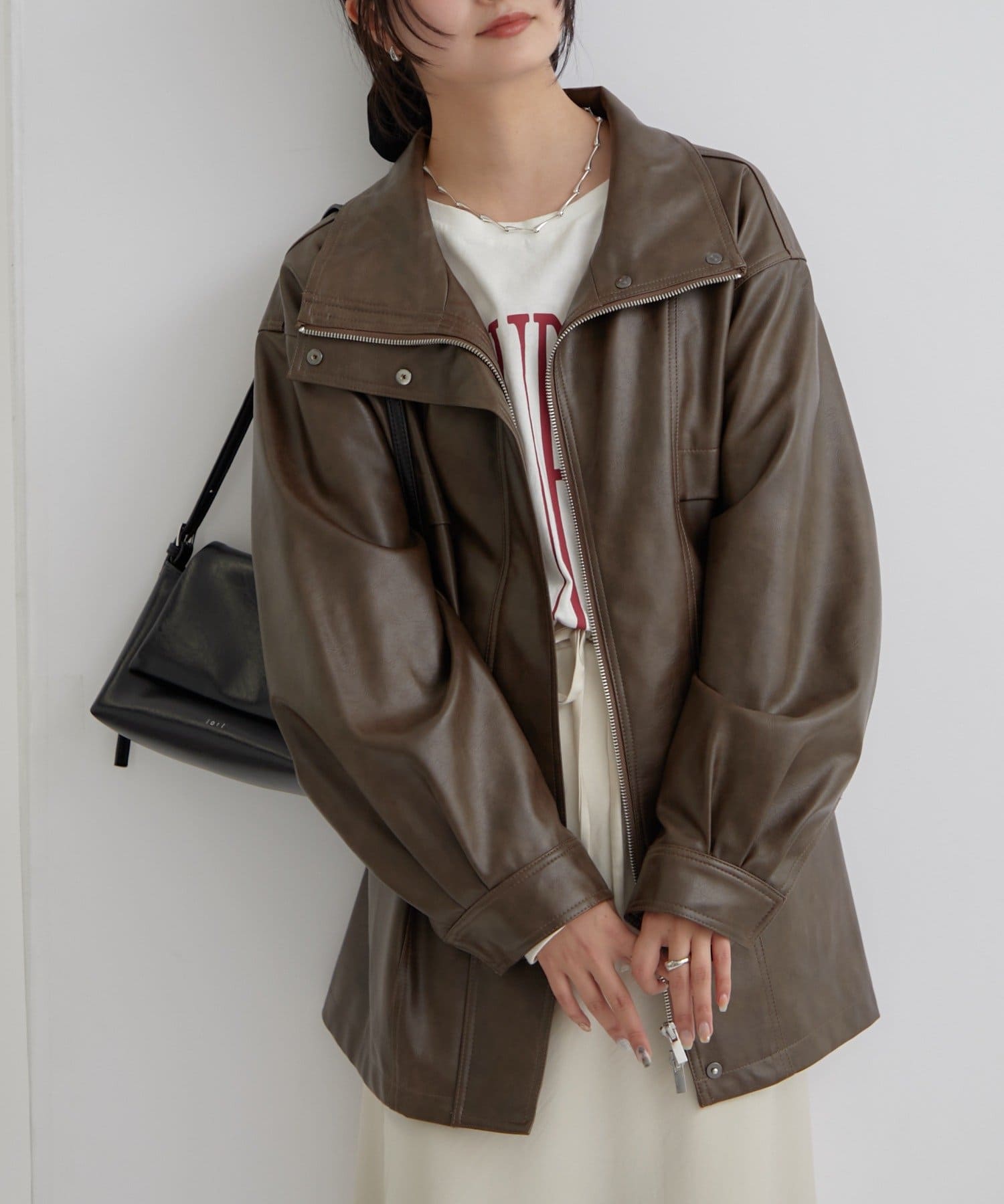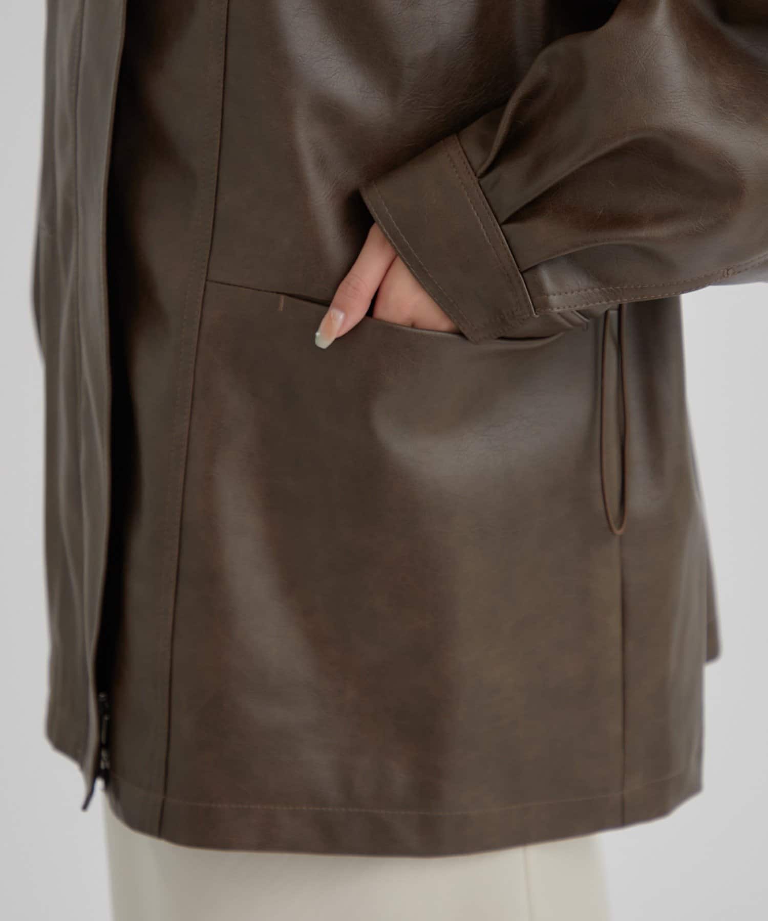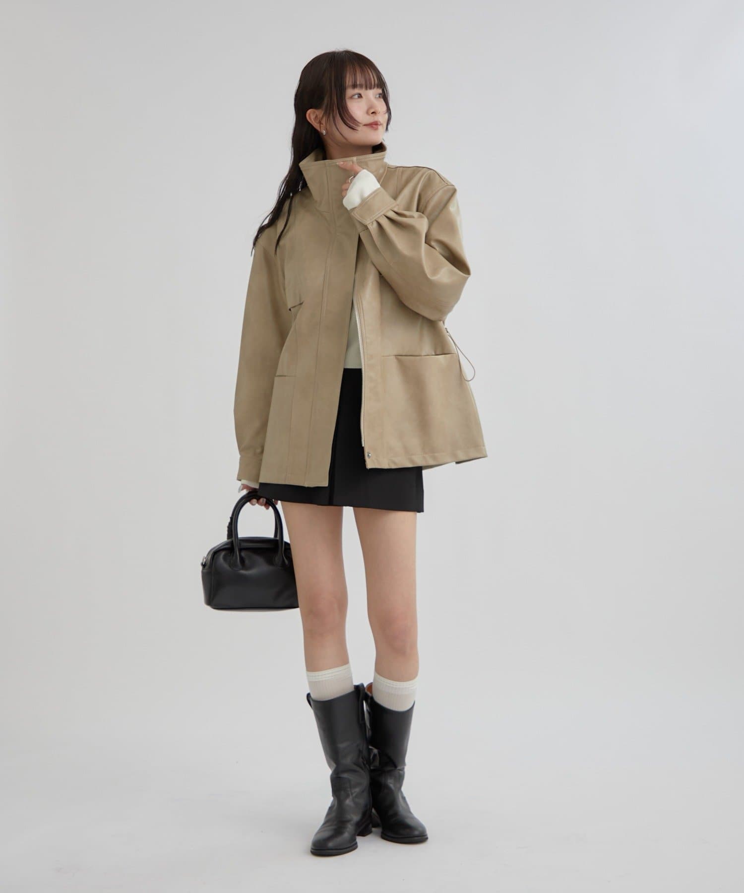 大きめシルエットのドロストフェイクレザーブルゾンが登場!