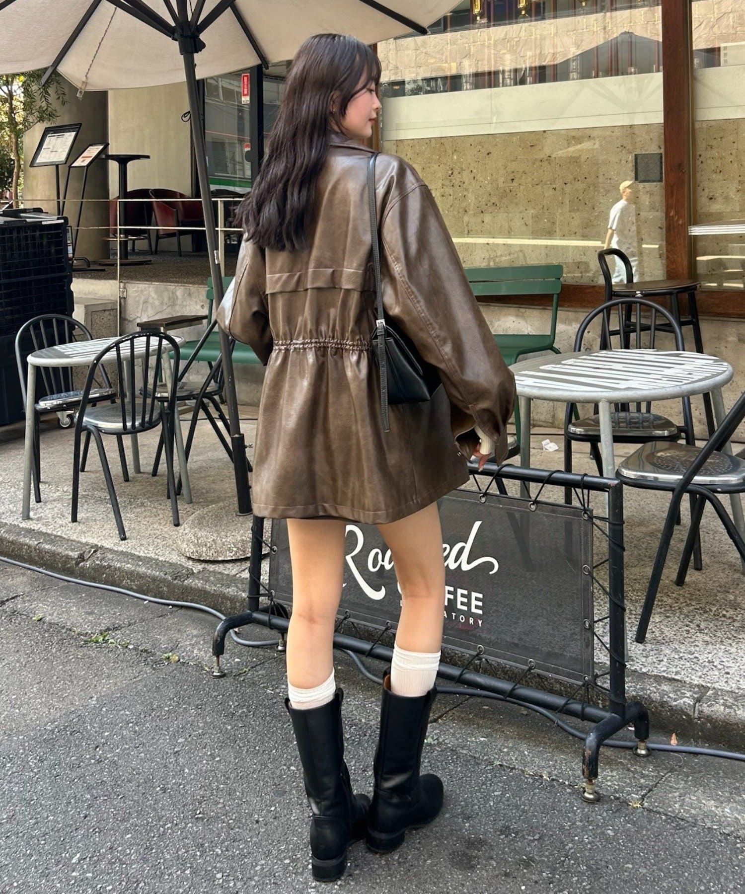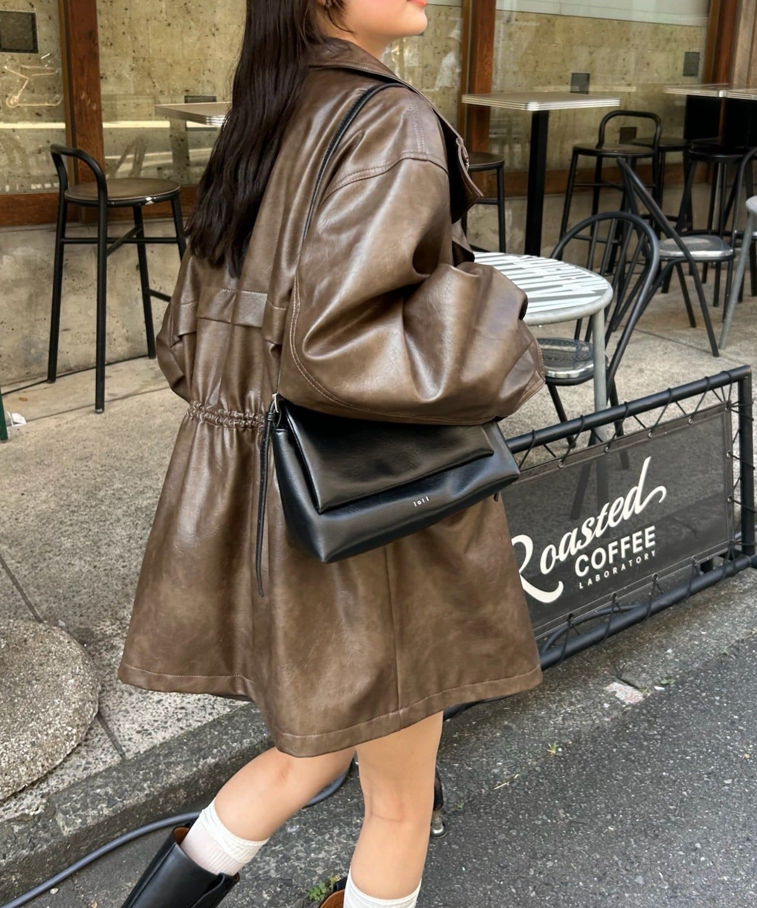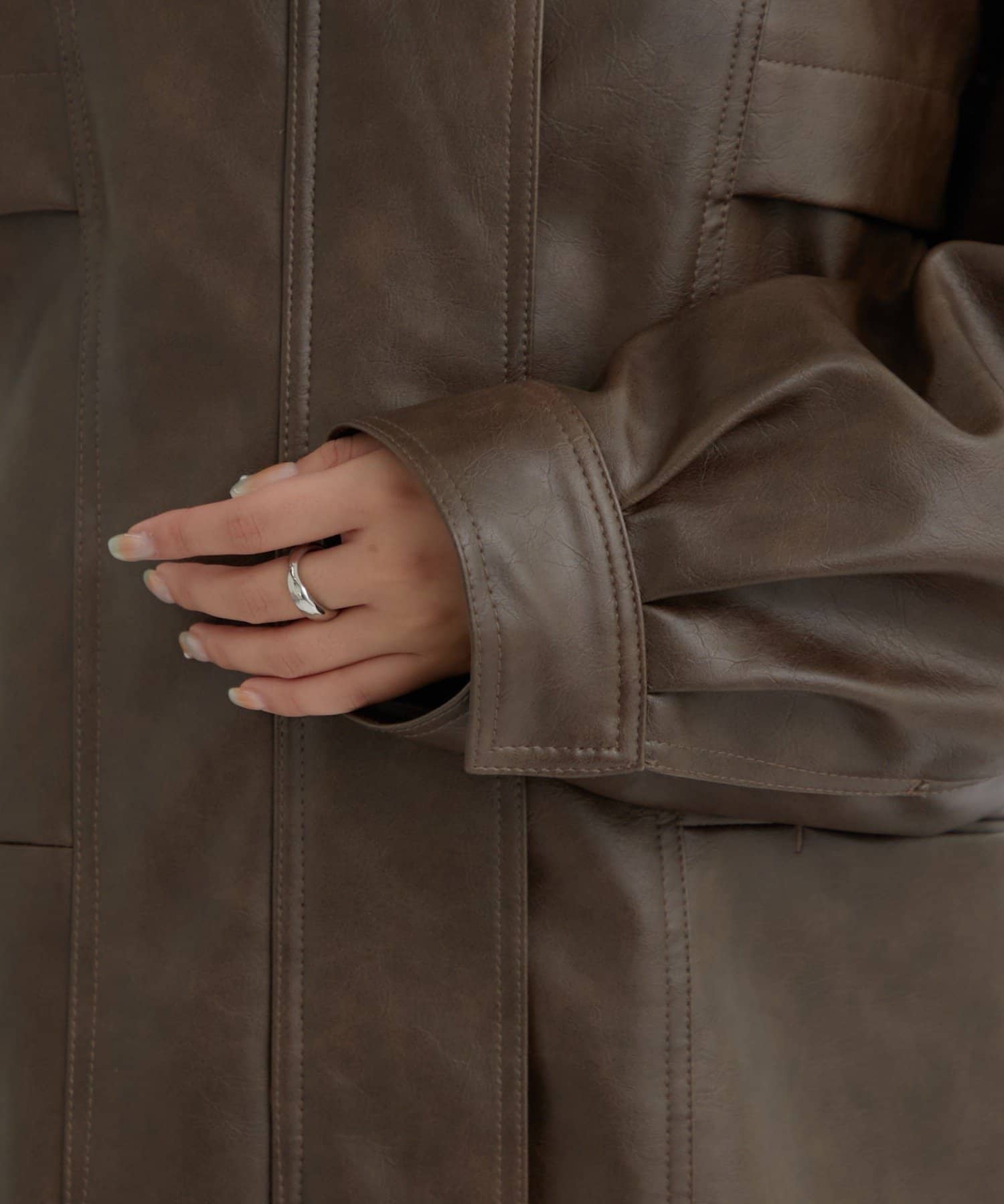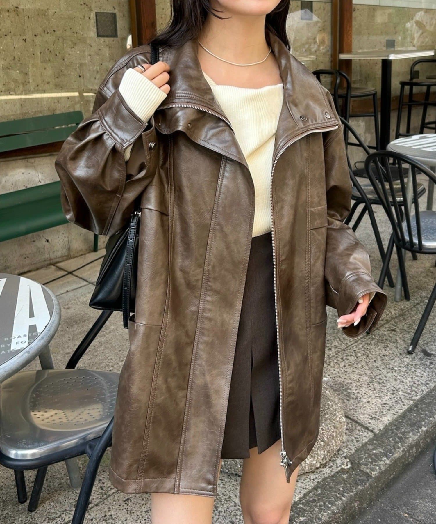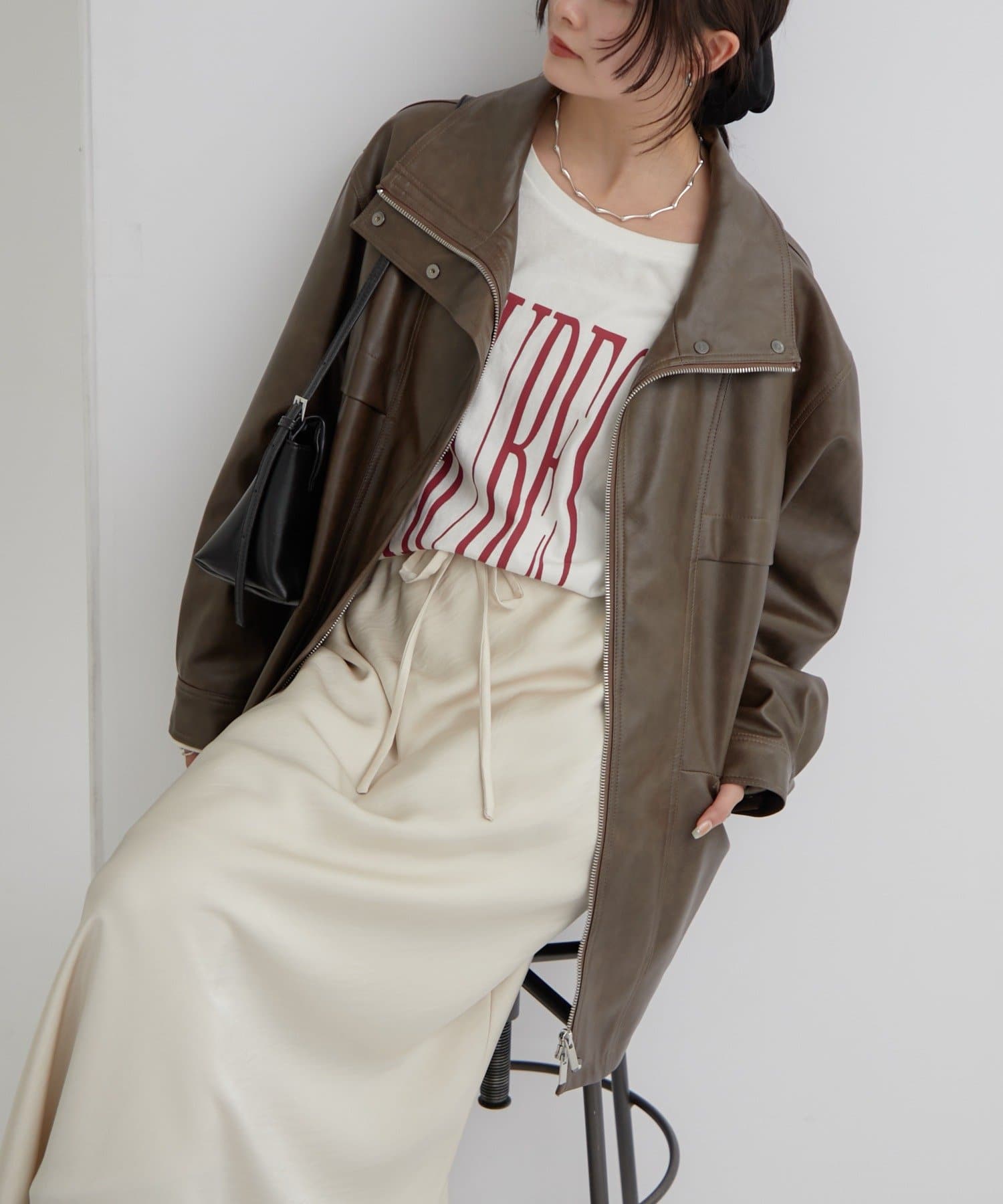 大きめシルエットのドロストフェイクレザーブルゾンが登場!