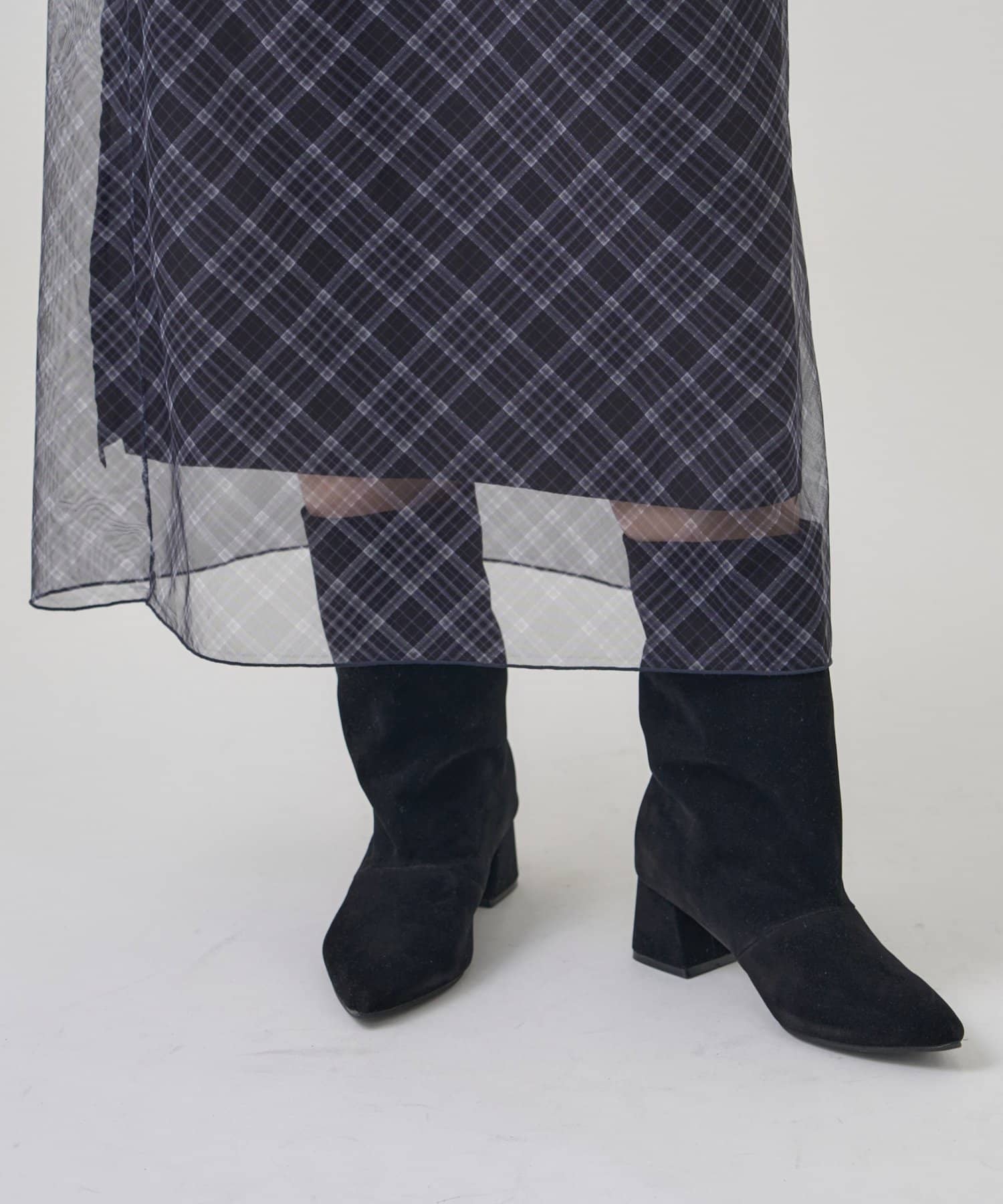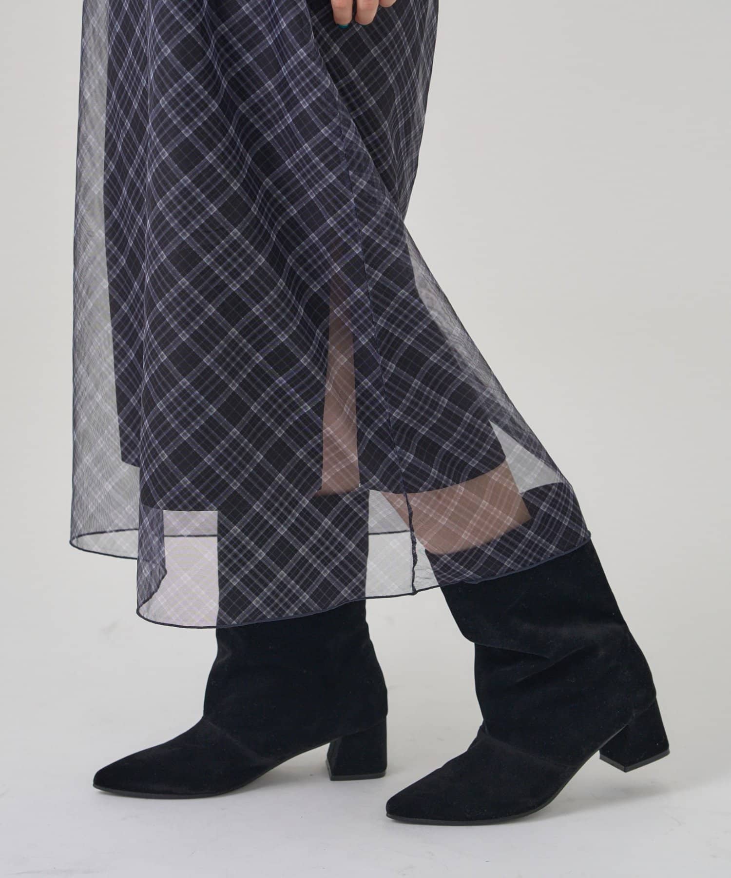 ・ロングソックスをレイヤードさせてトレンドライクなスタイルに。