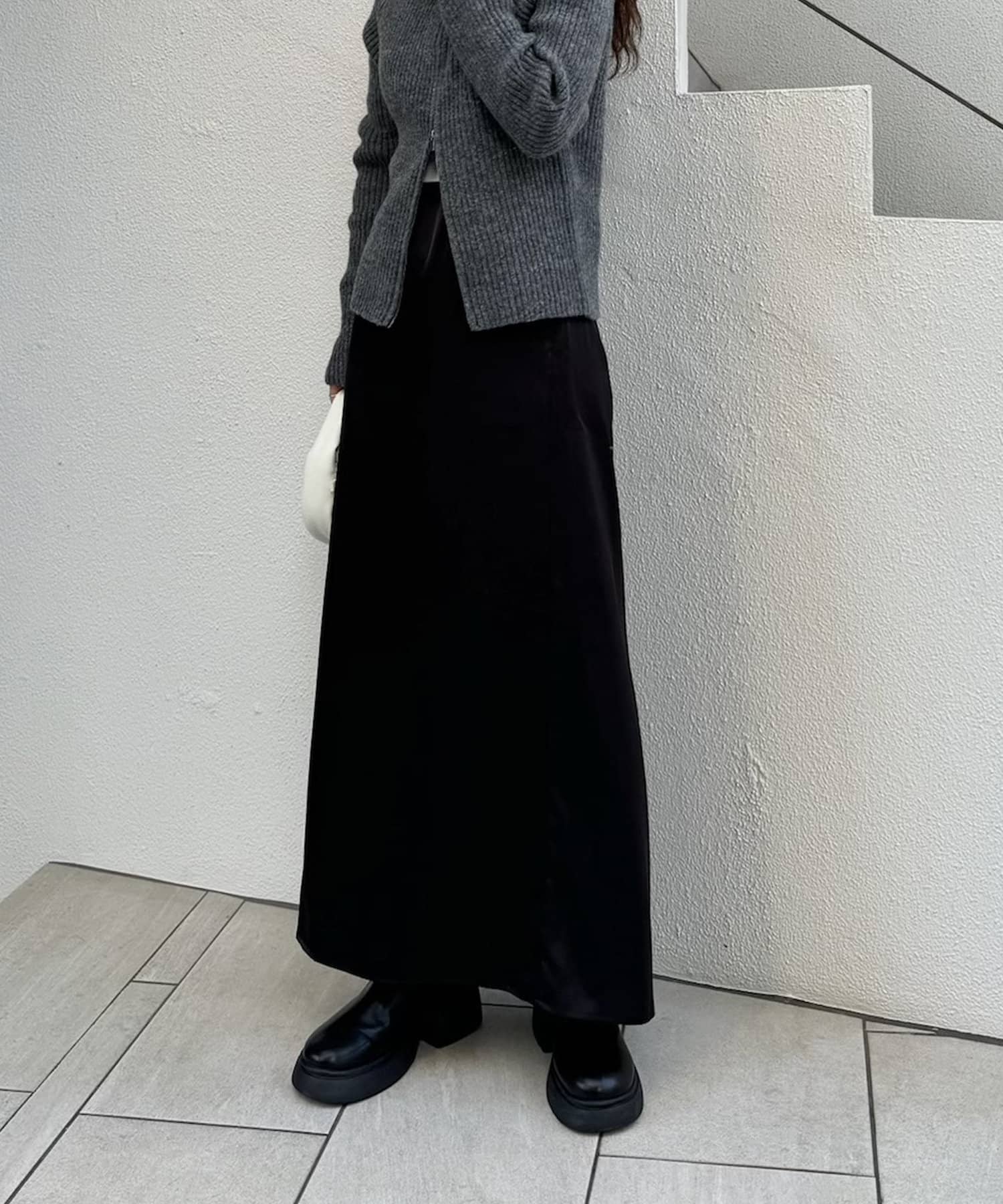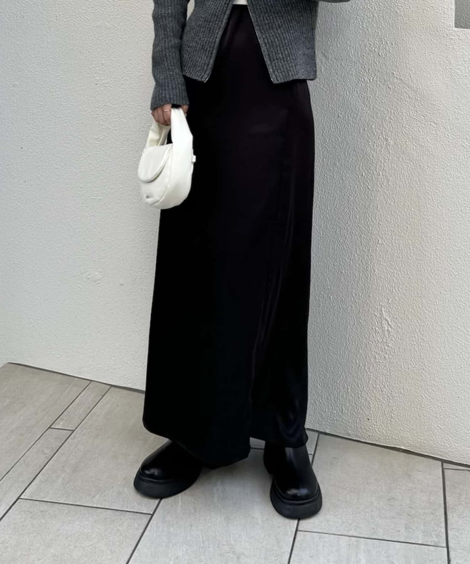 ・ロングスカートのシルエットの中に、スリットが抜け感を出してくれます◎