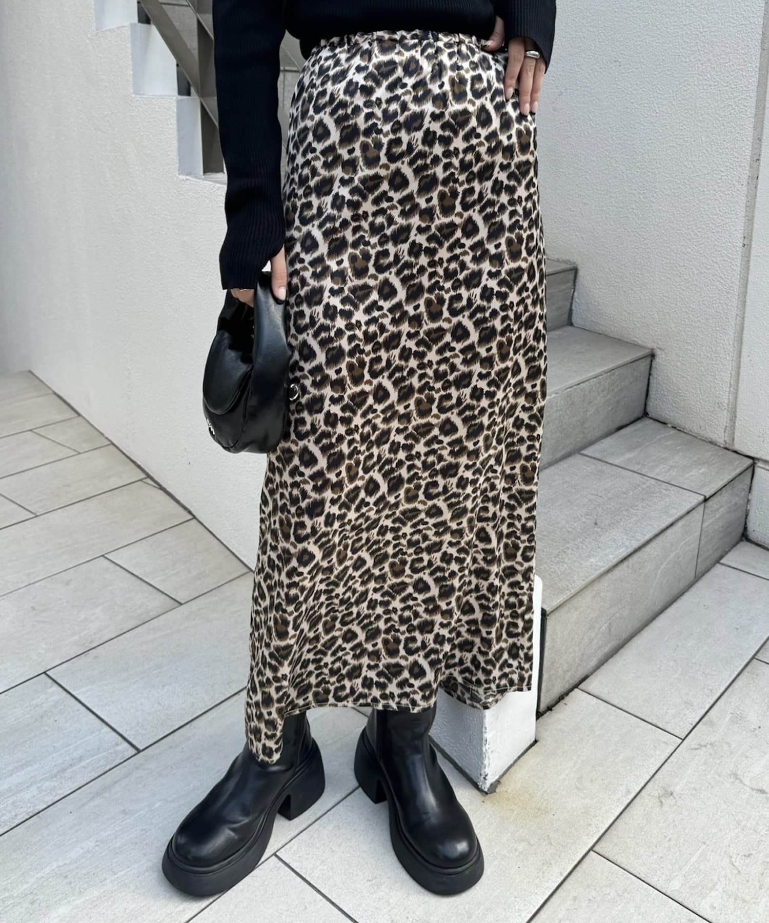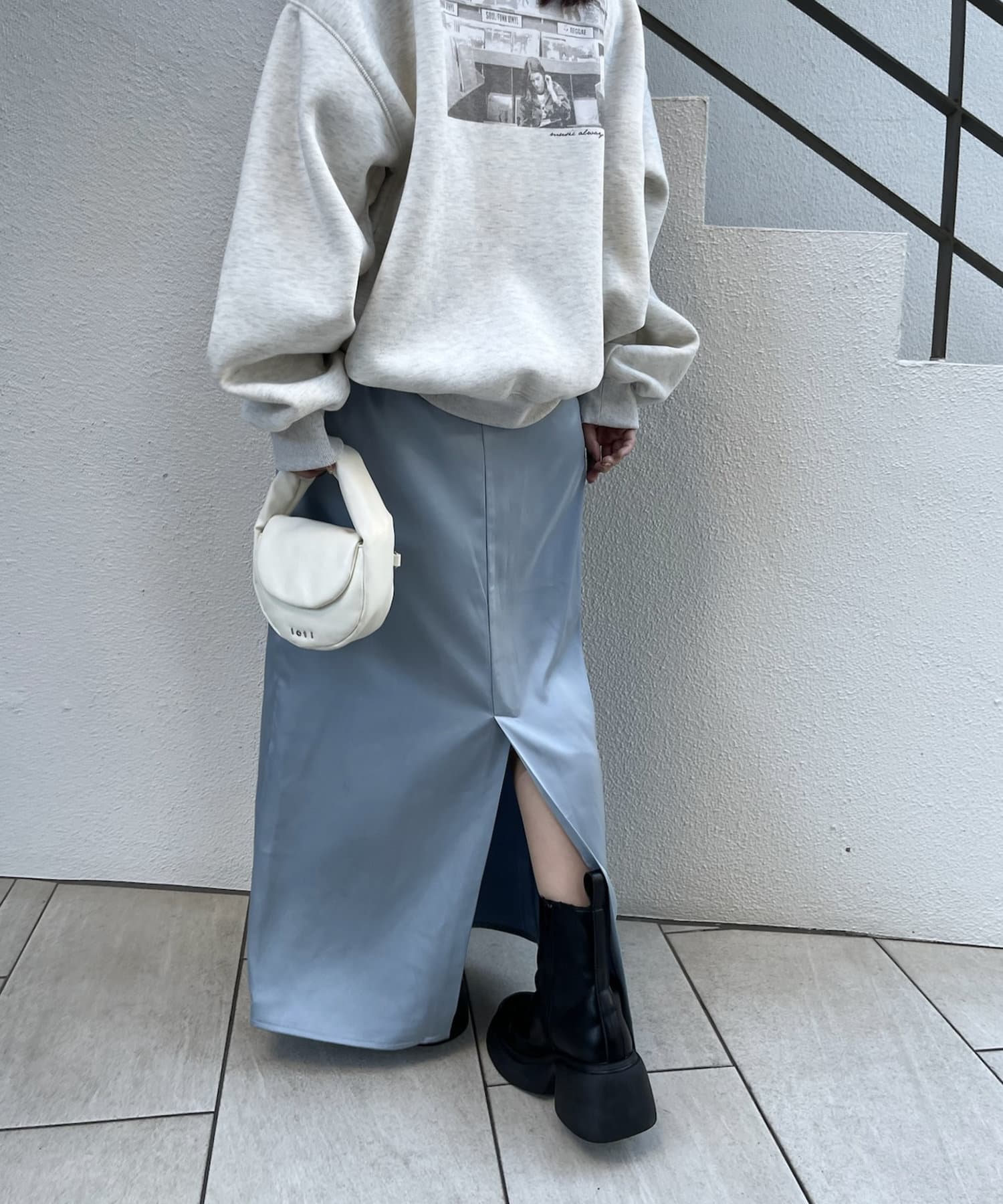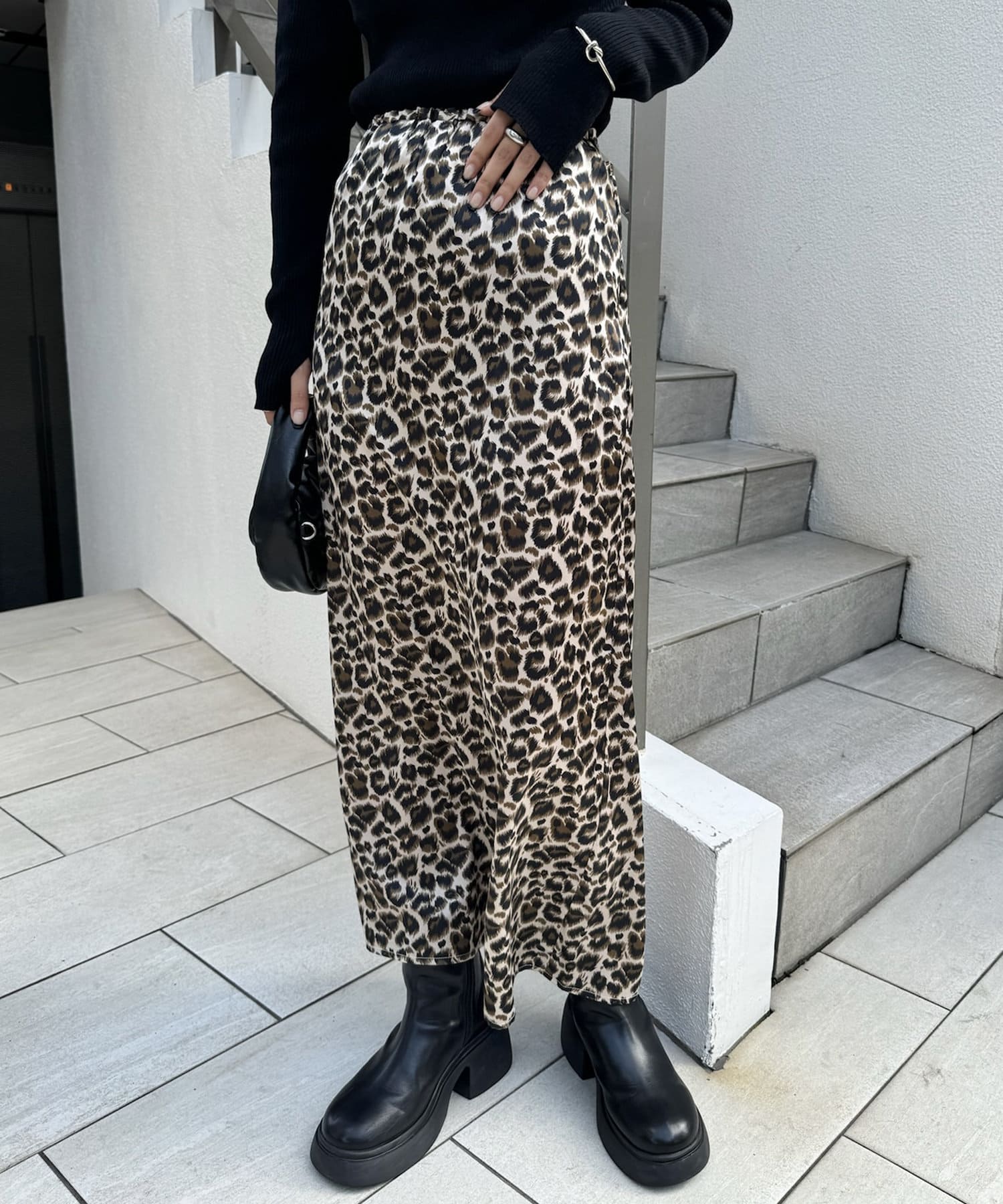 ・ロングスカートのシルエットの中に、スリットが抜け感を出してくれます◎
