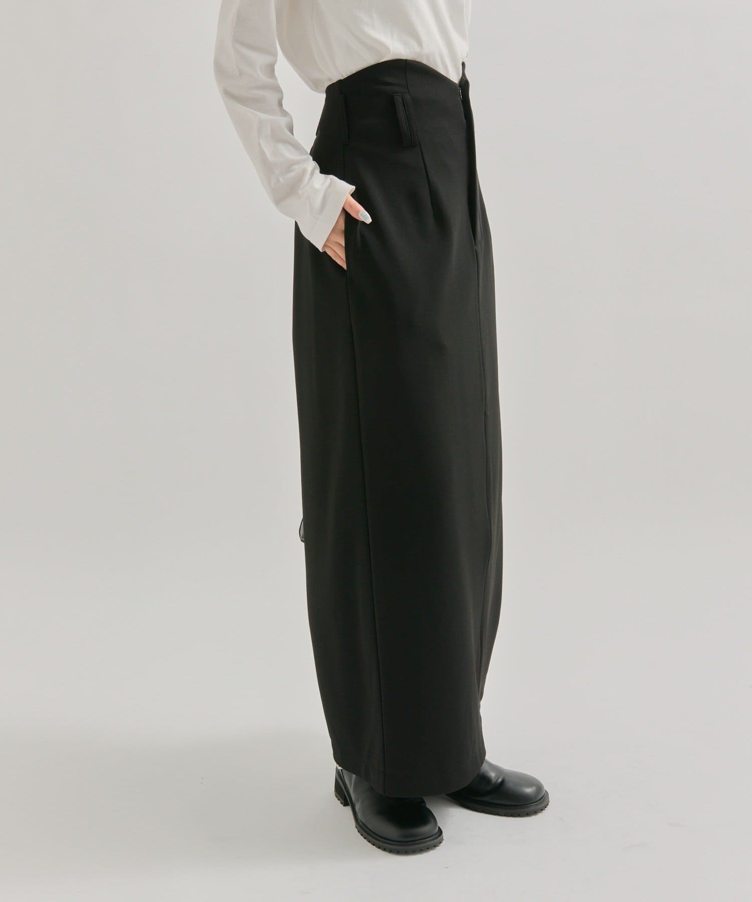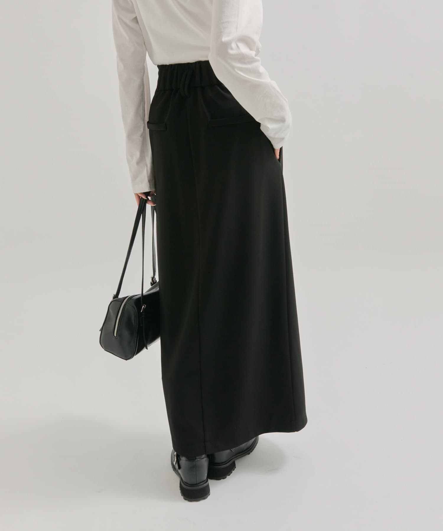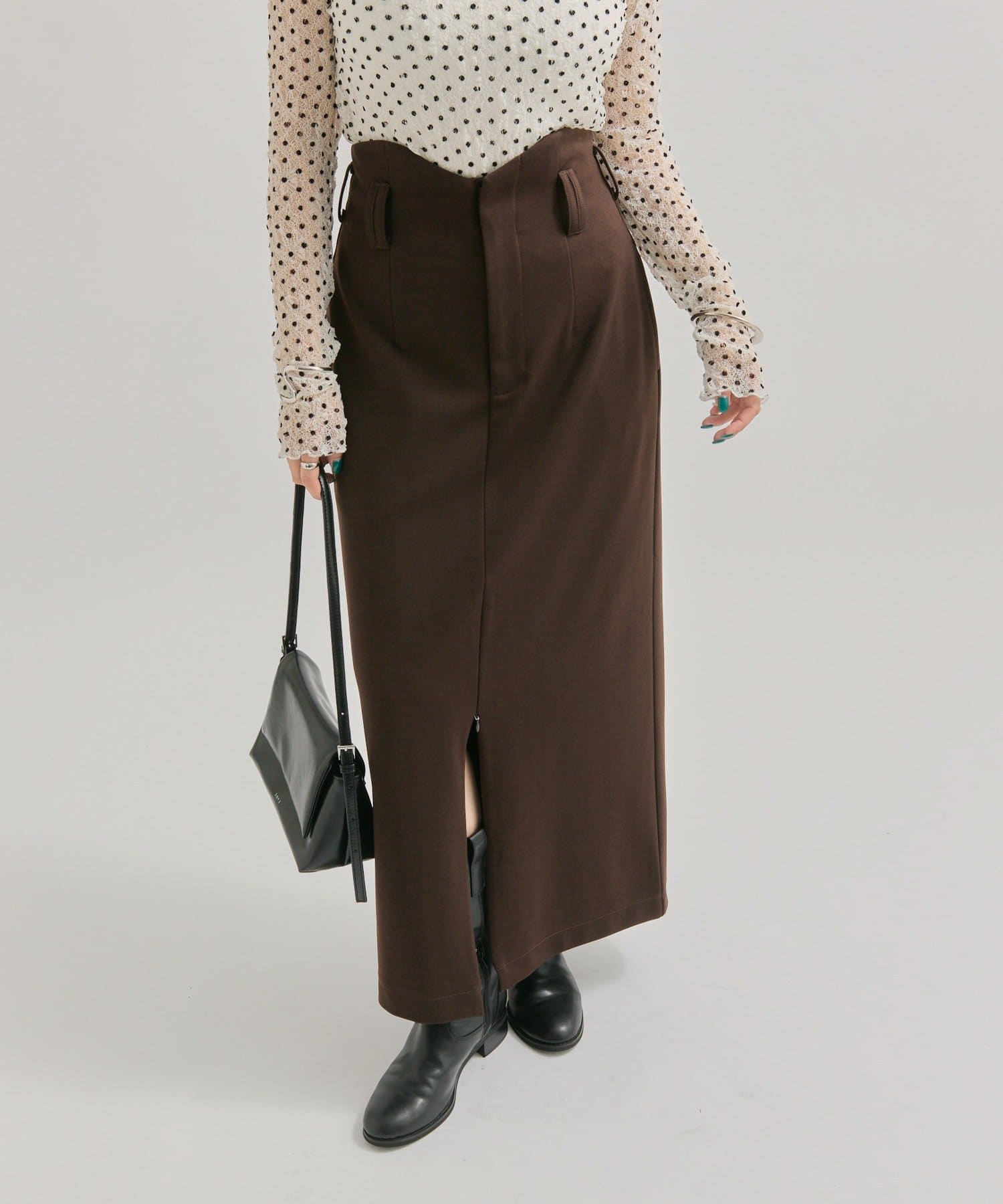 ・ウェーブデザインと2本のベルトループがお洒落見えするデザイン性のあるロングスカート!