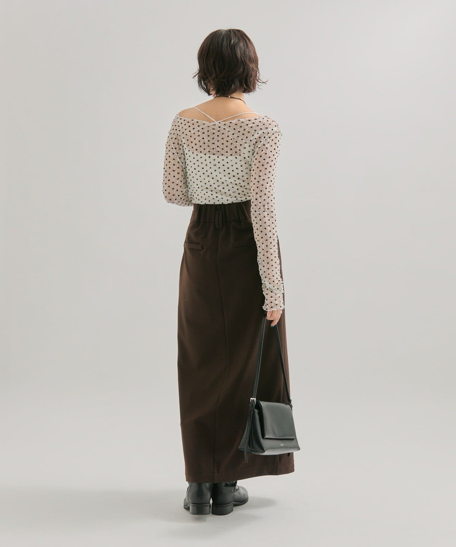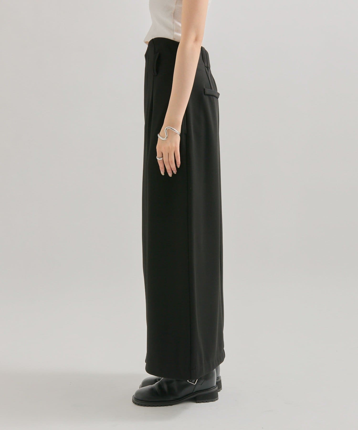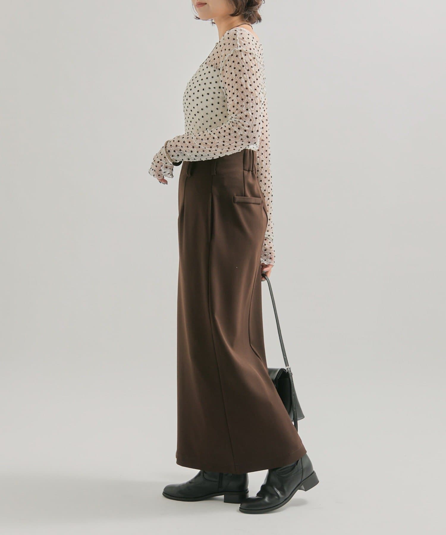スリット部分が調整できるので肌魅せが苦手な方でも安心して履いていただけます。