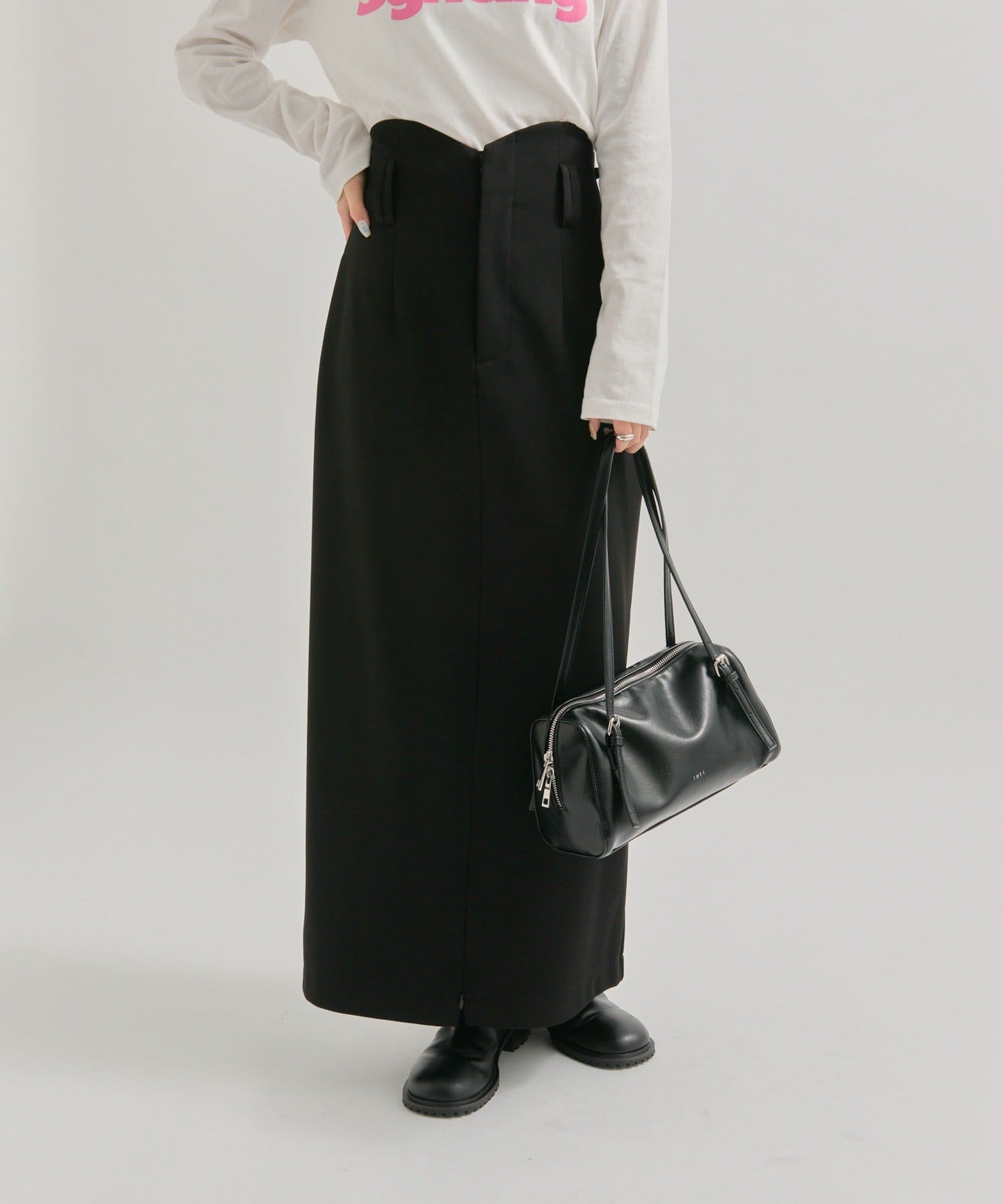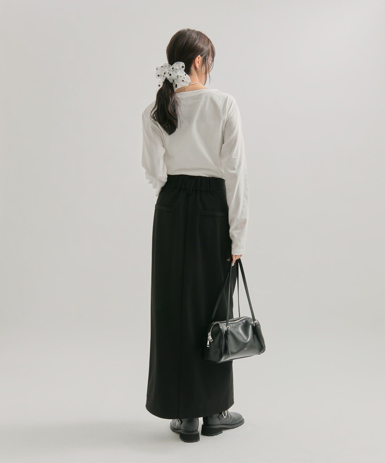 キレイめなスカートなので、オーバーサイズのトップスでカジュアルダウンさせて着るのもおすすめです!