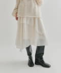 足元はミドルブーツやミュール合わせでトレンドライクな仕上がりに◎