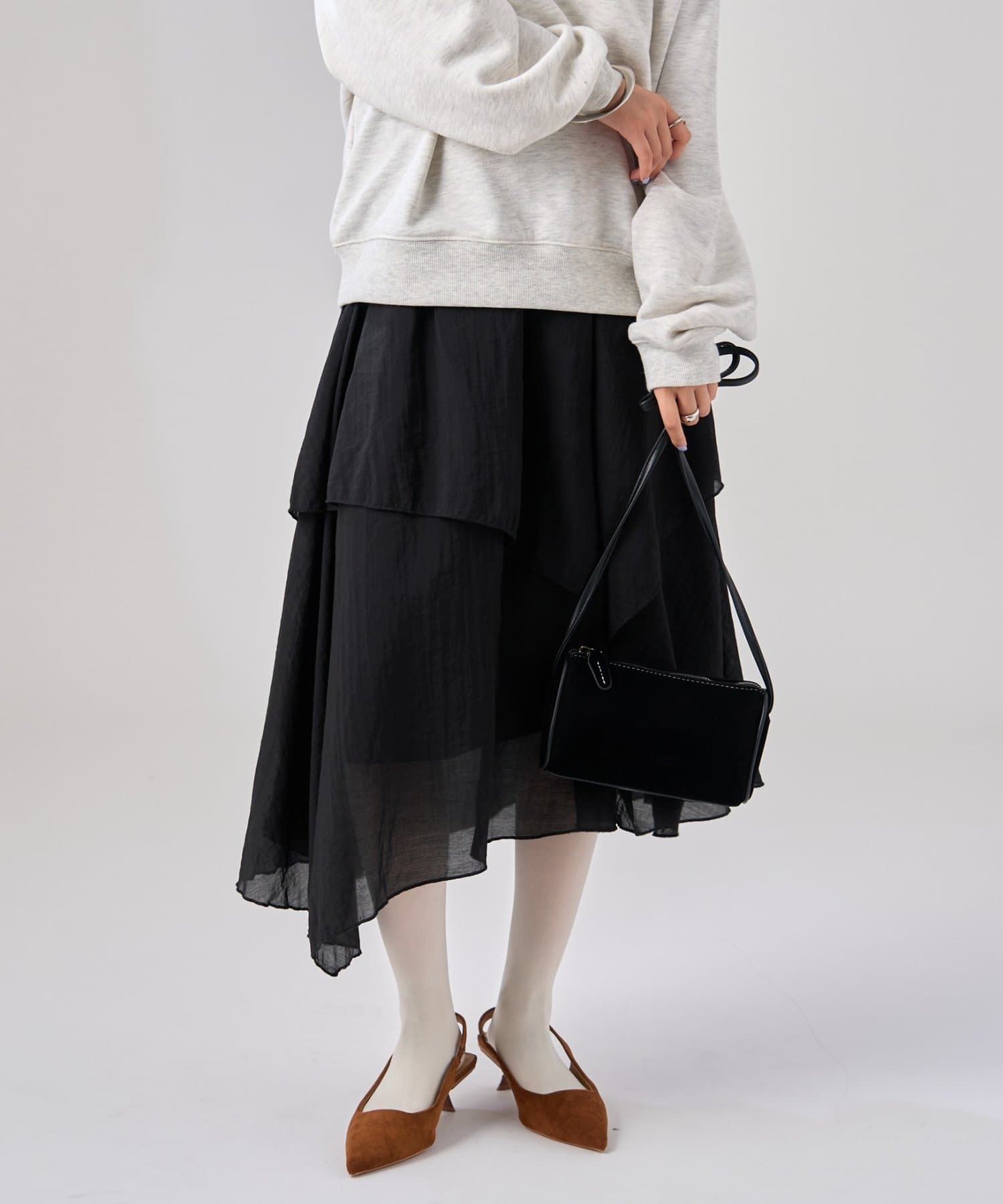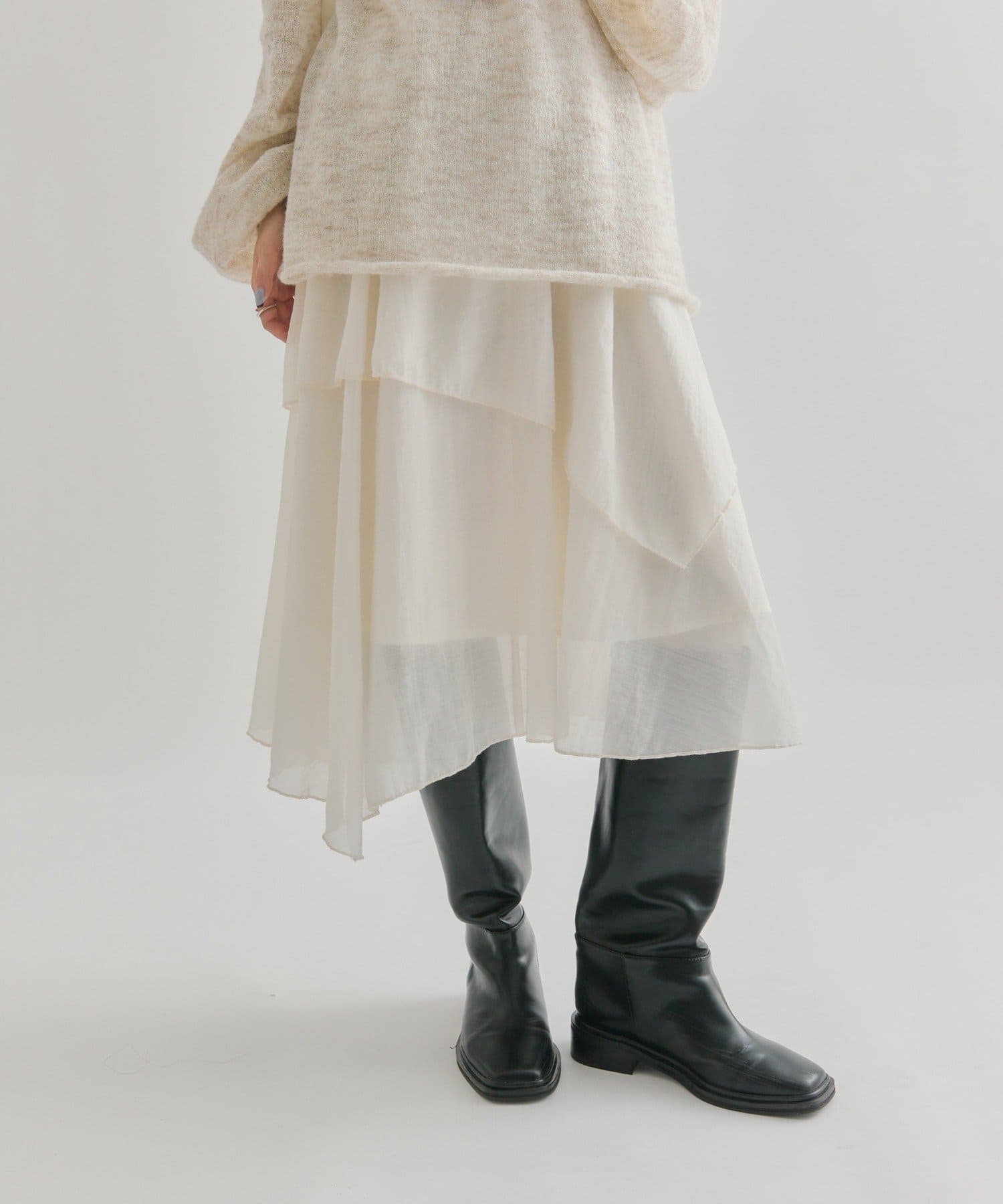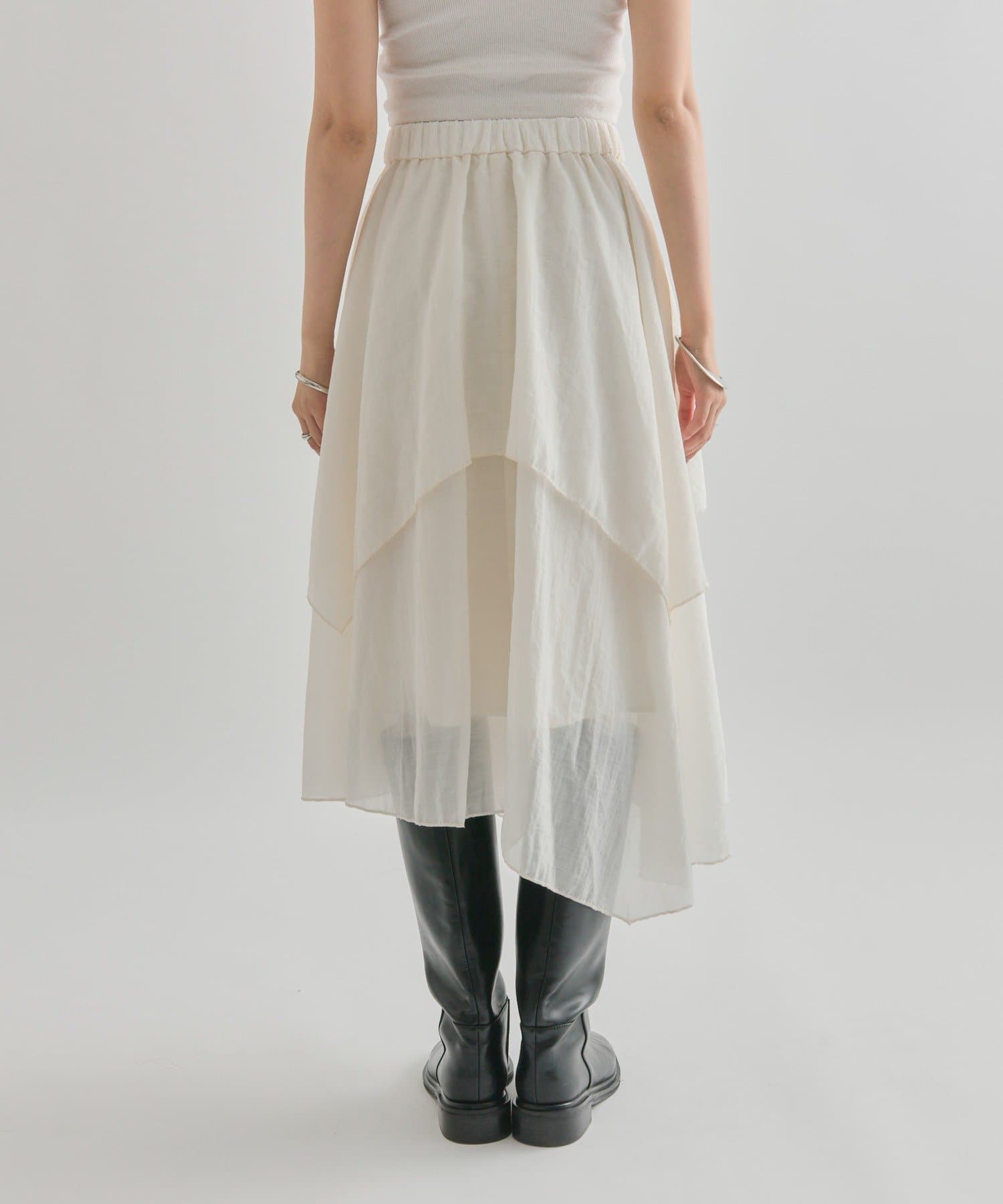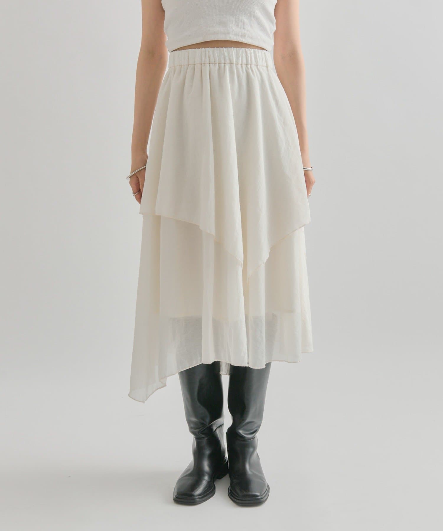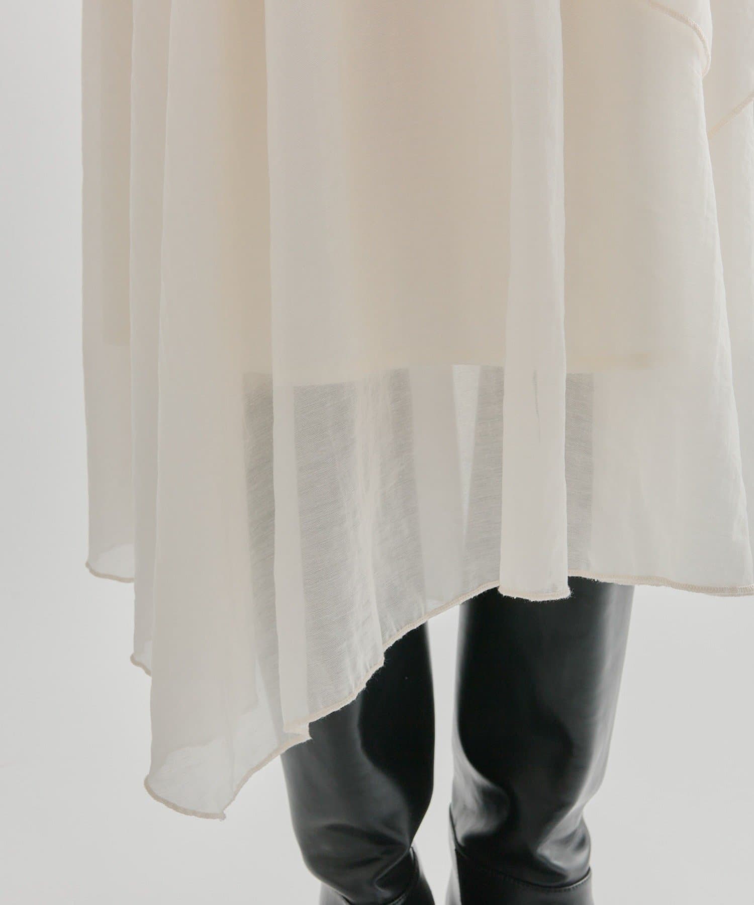 ひらひら揺れるアシンメトリーな裾のラインがスタイリングをアップデートさせてくれる一枚。