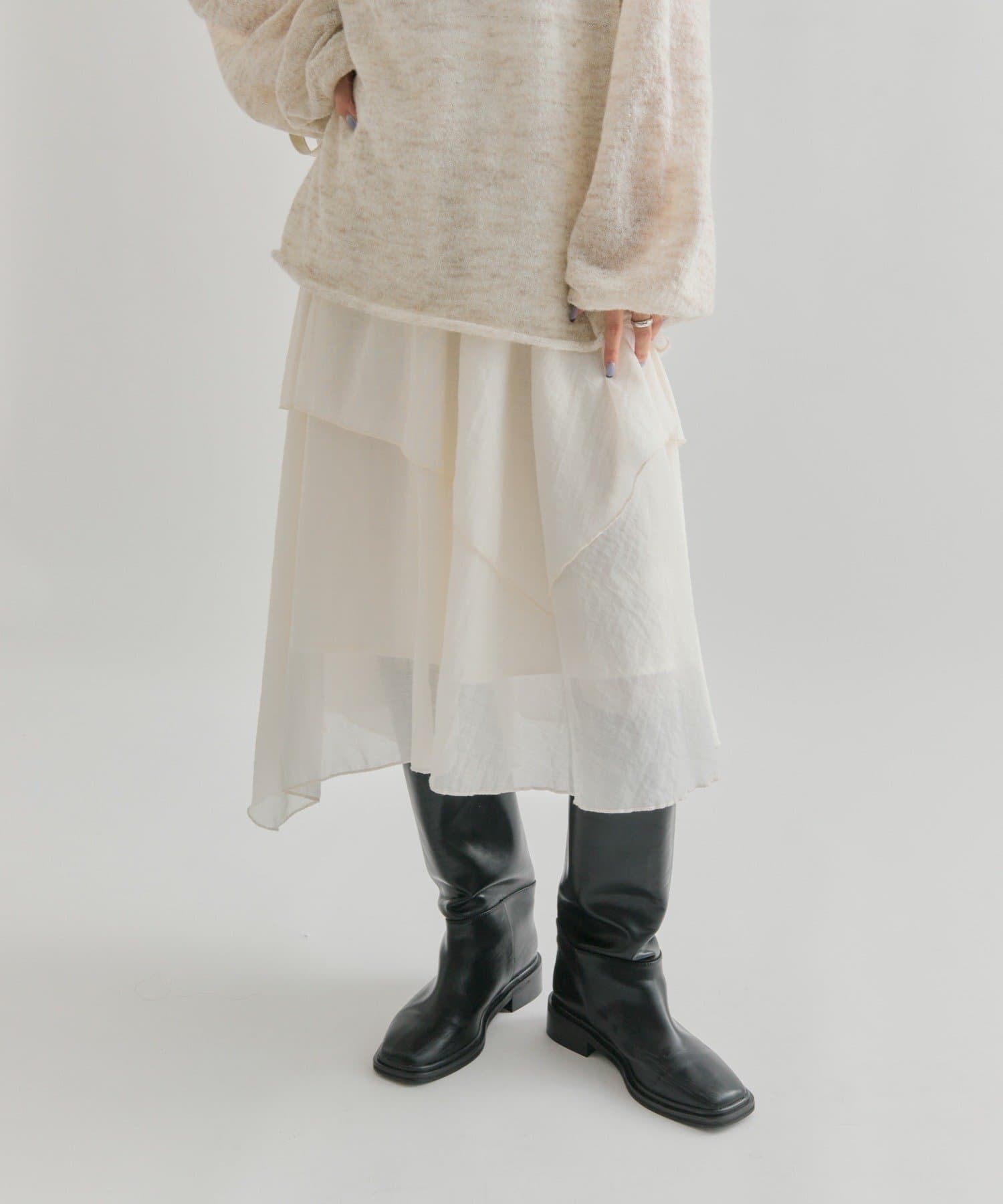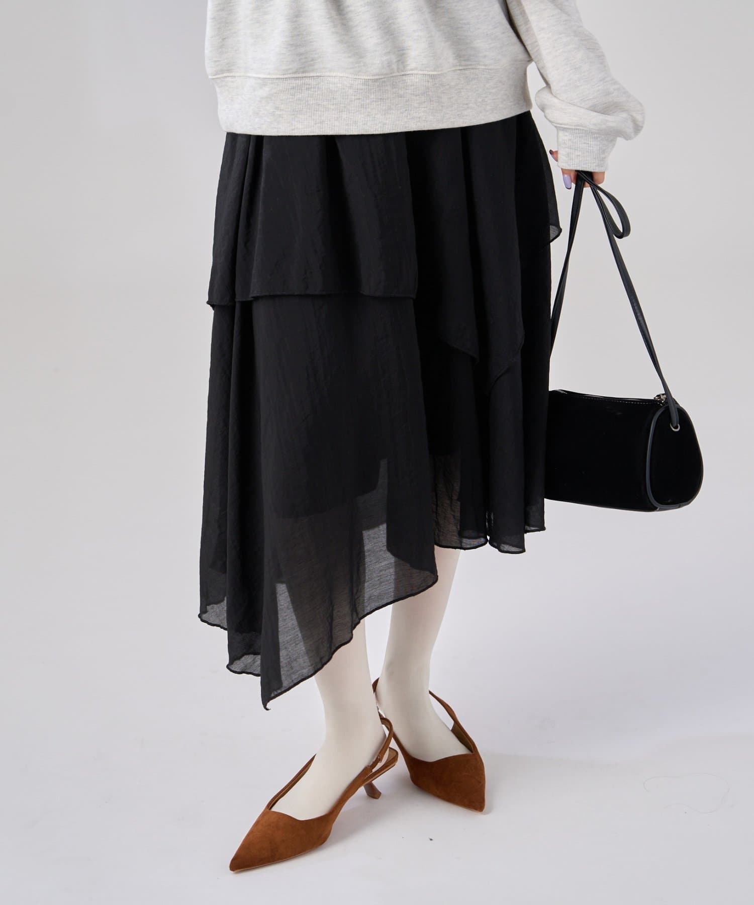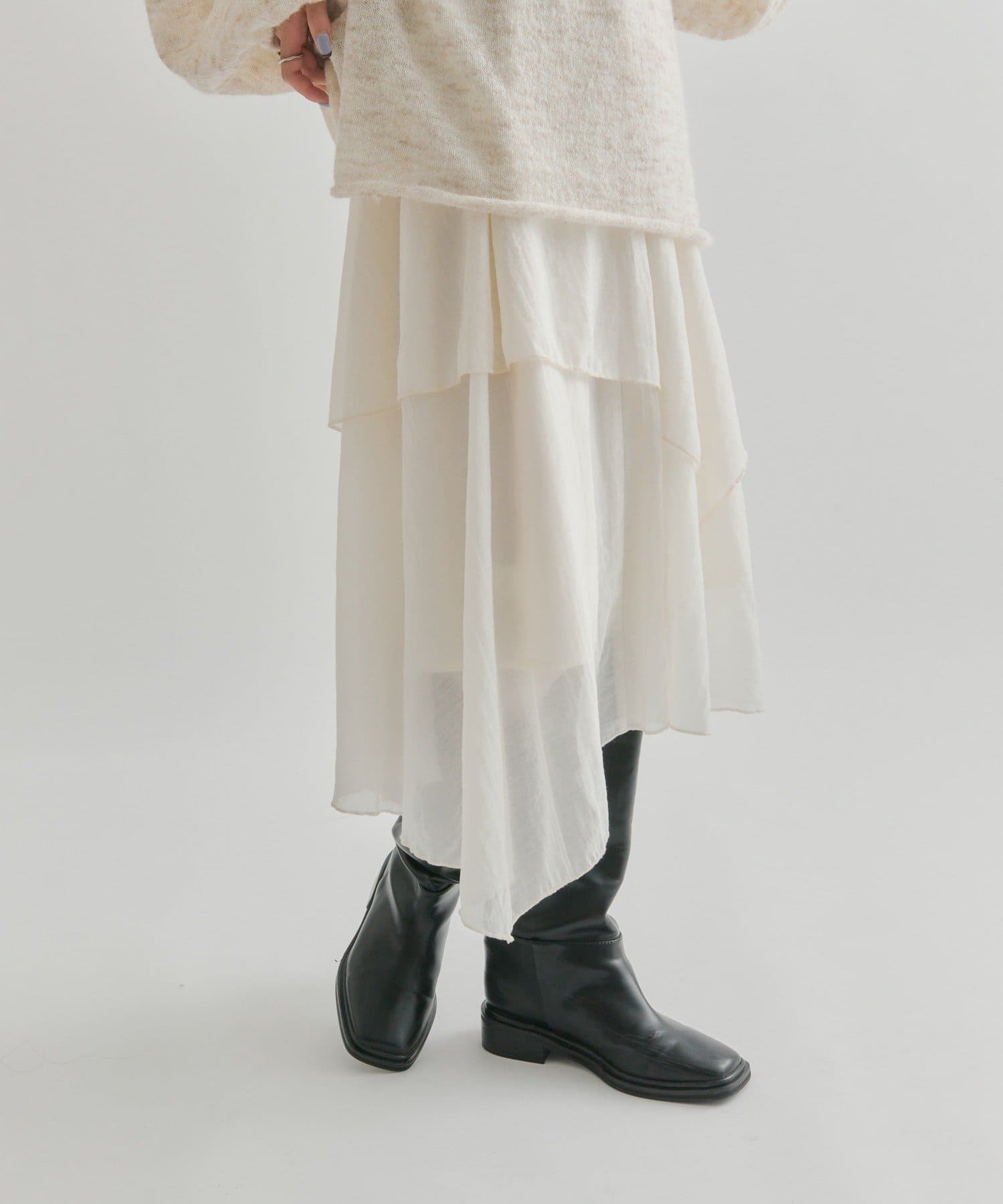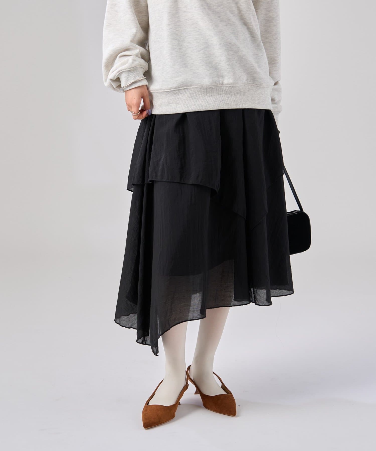 ひらひら揺れるアシンメトリーな裾のラインがスタイリングをアップデートさせてくれる一枚。