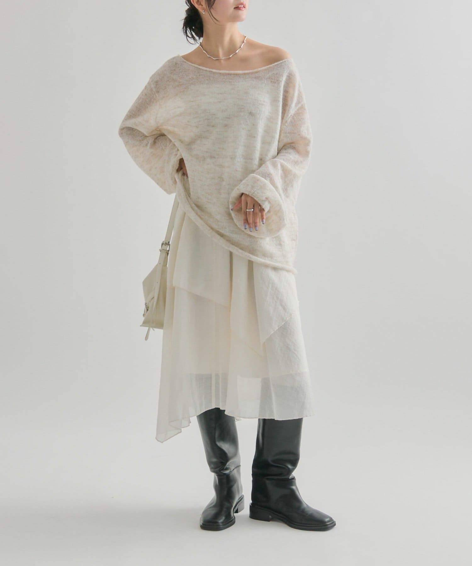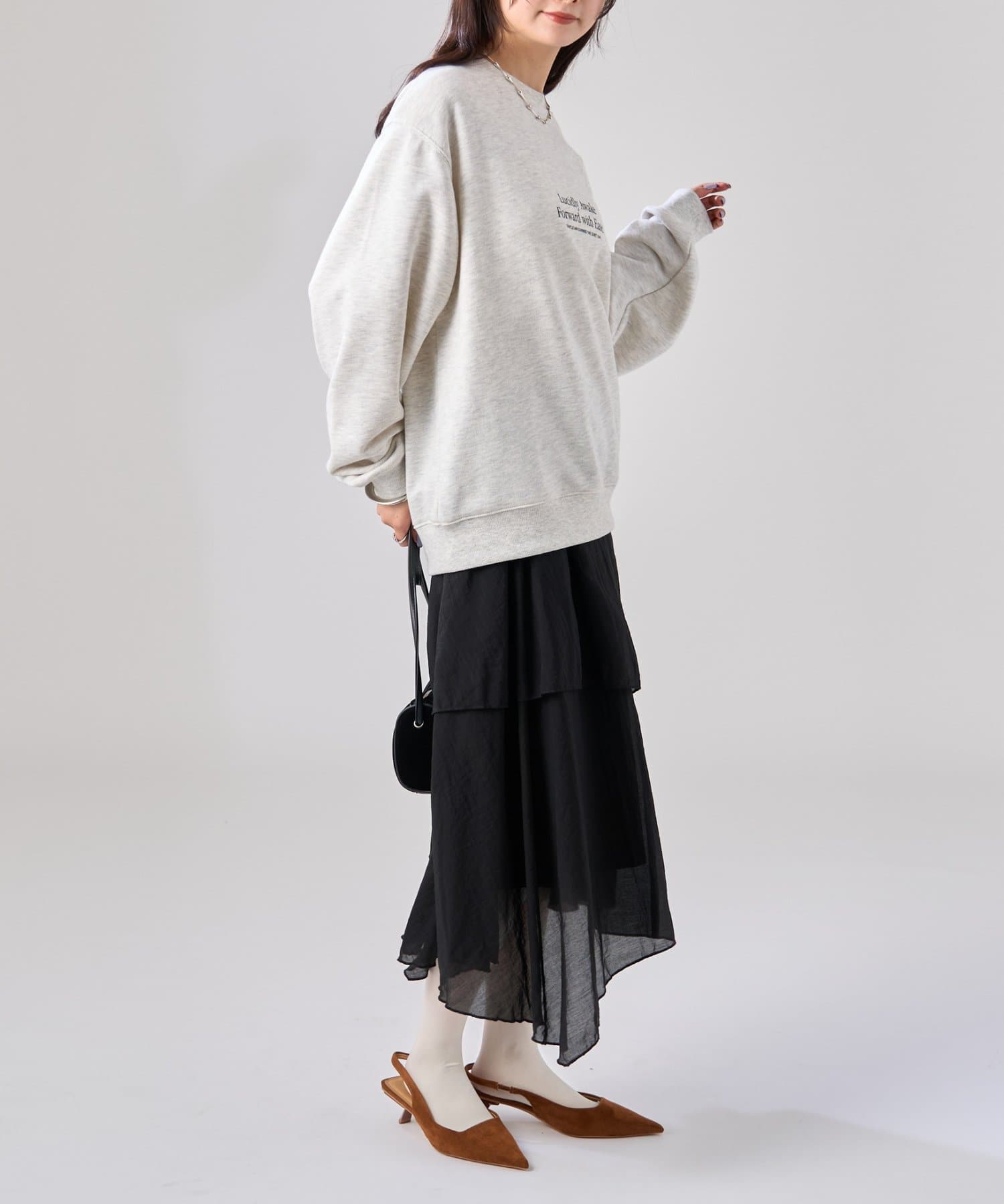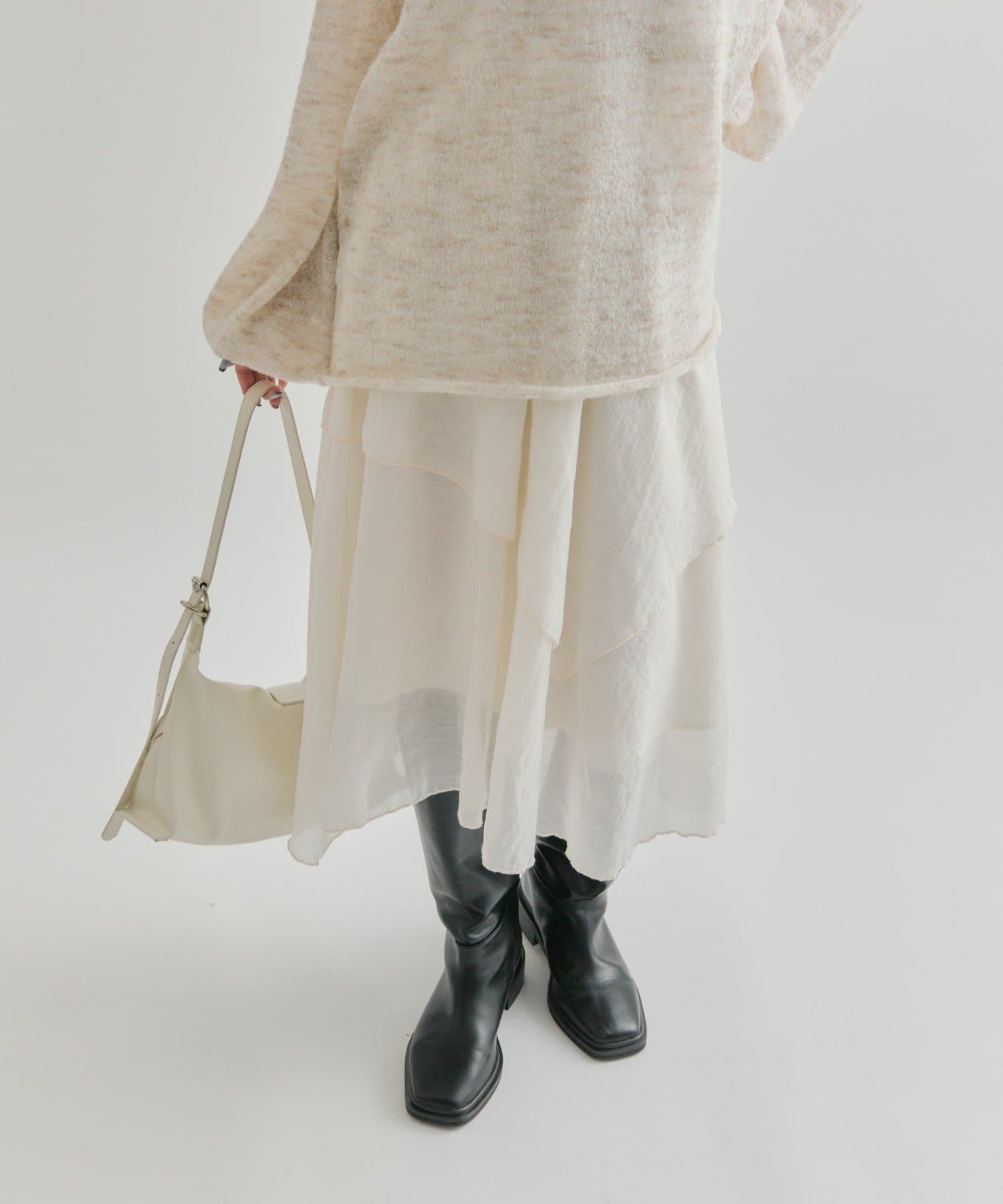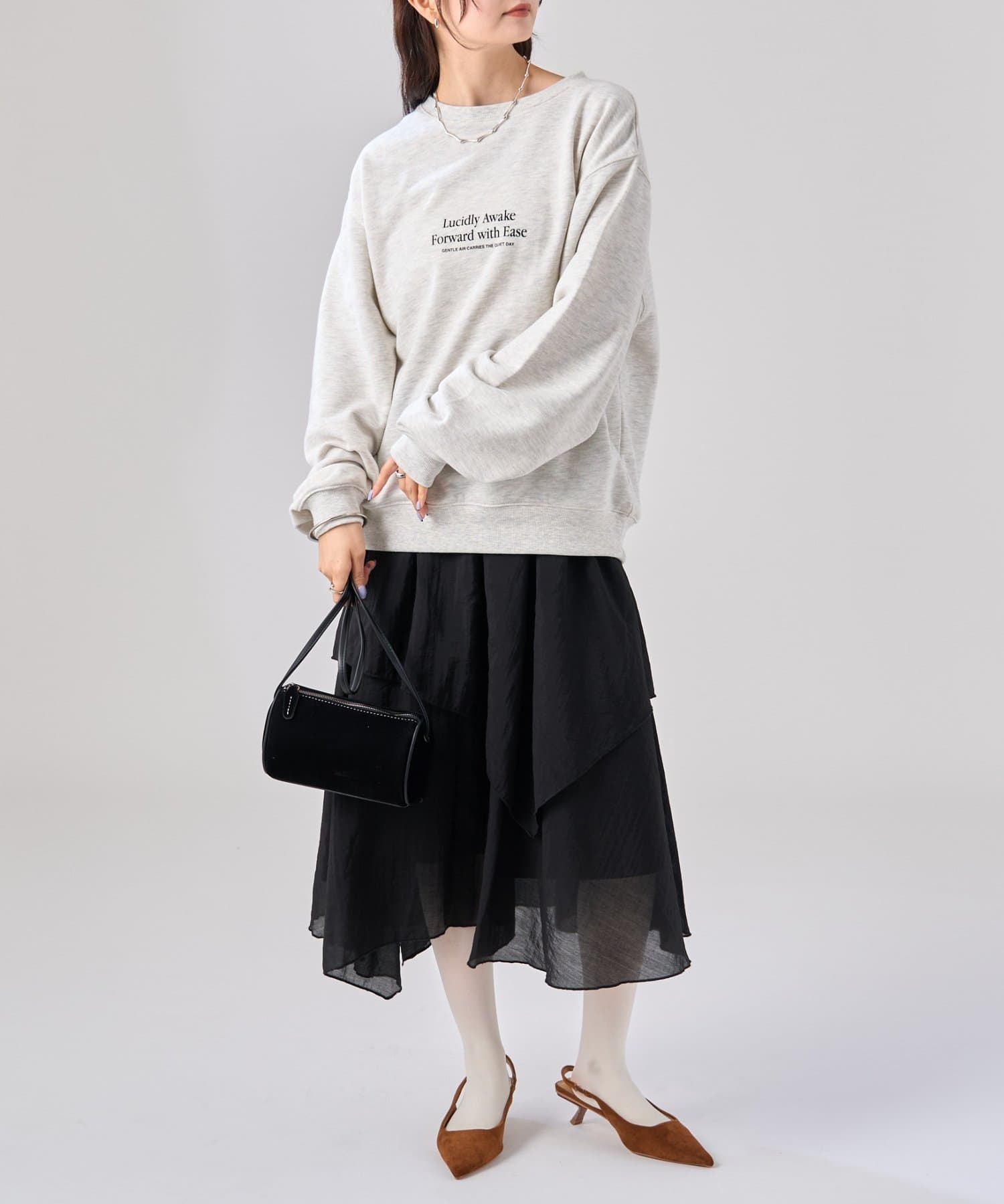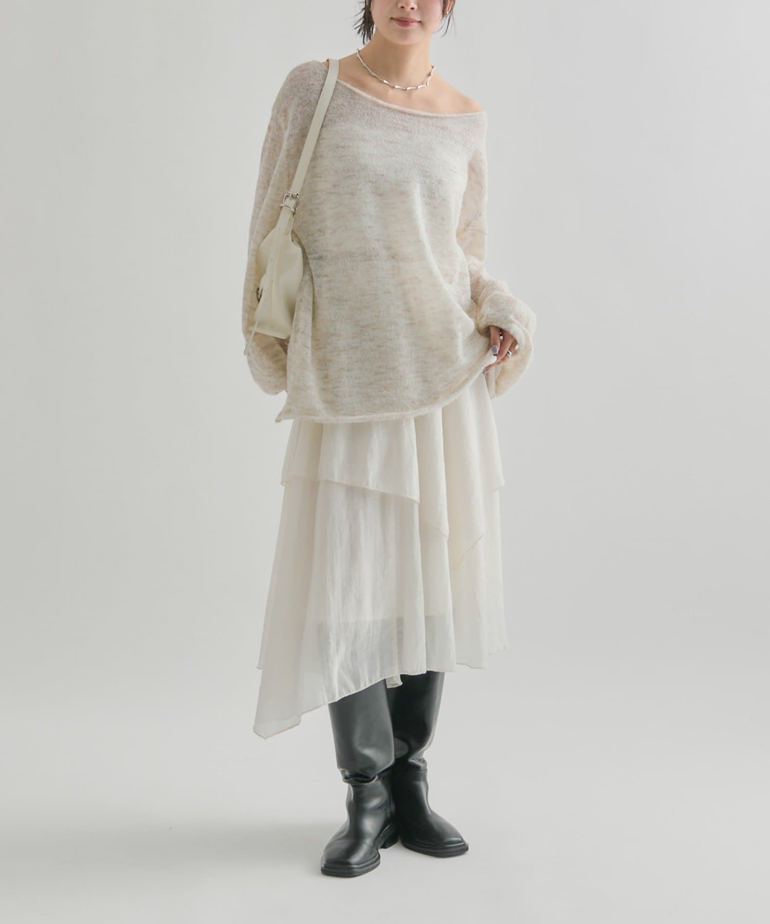 ひらひら揺れるアシンメトリーな裾のラインがスタイリングをアップデートさせてくれる一枚。