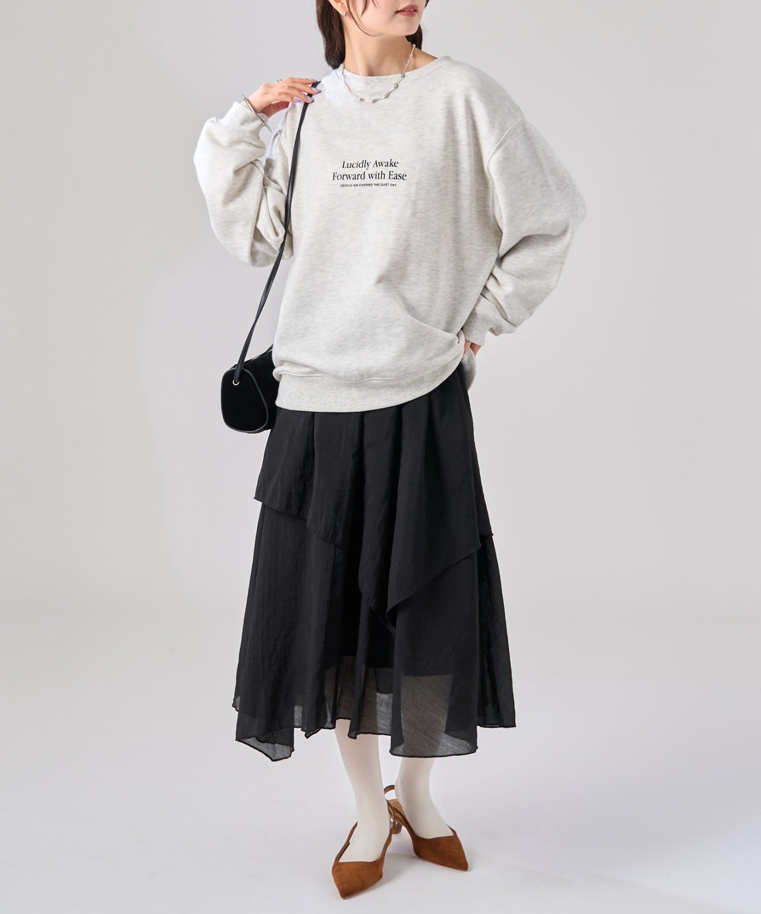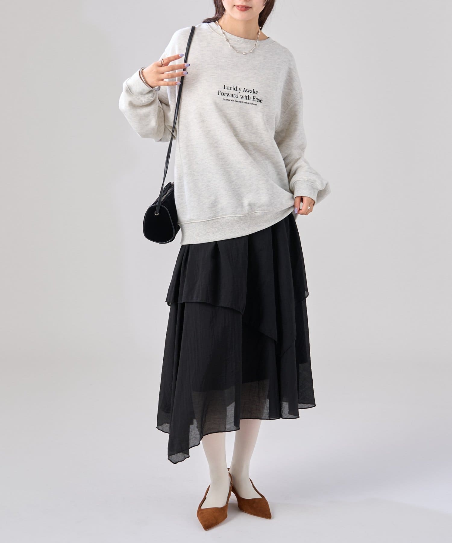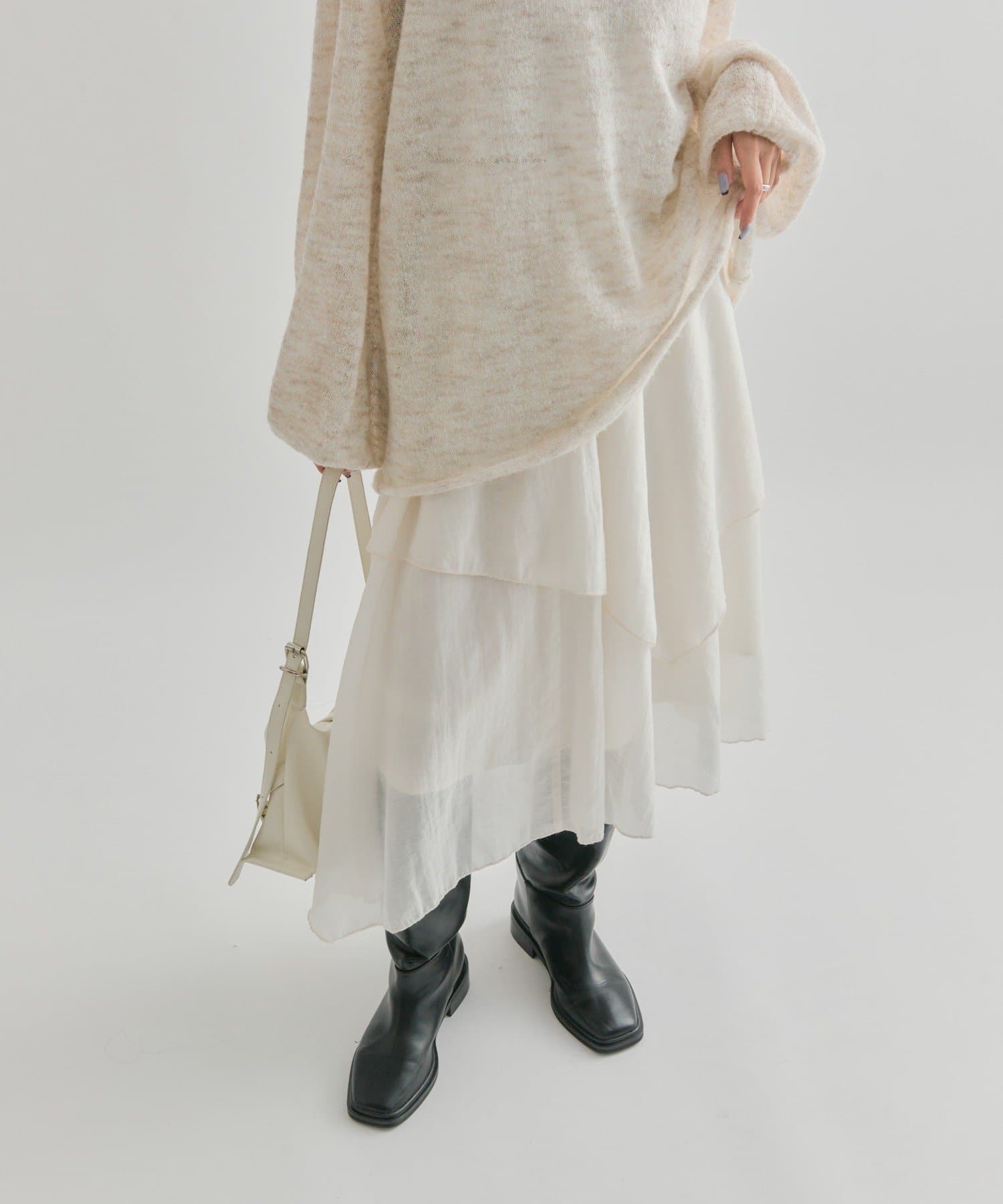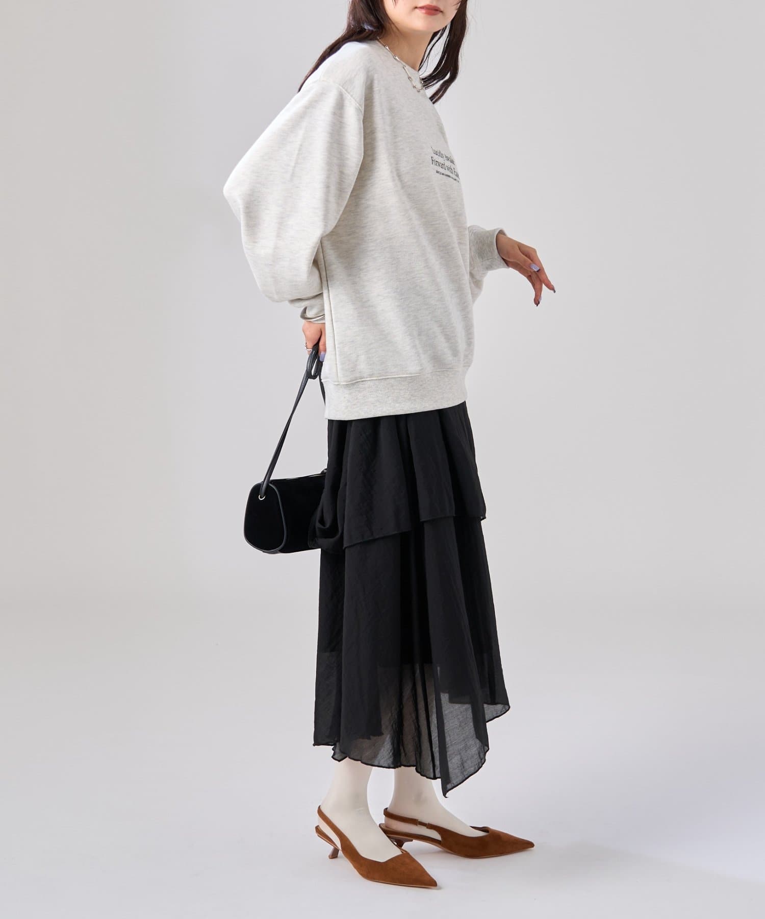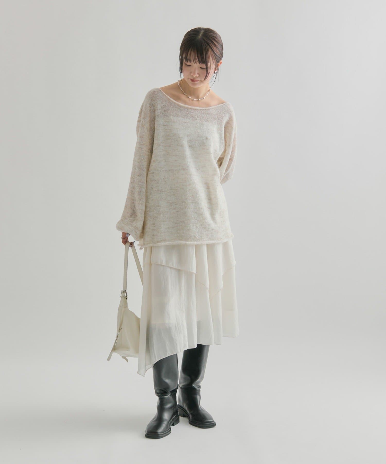 ひらひら揺れるアシンメトリーな裾のラインがスタイリングをアップデートさせてくれる一枚。