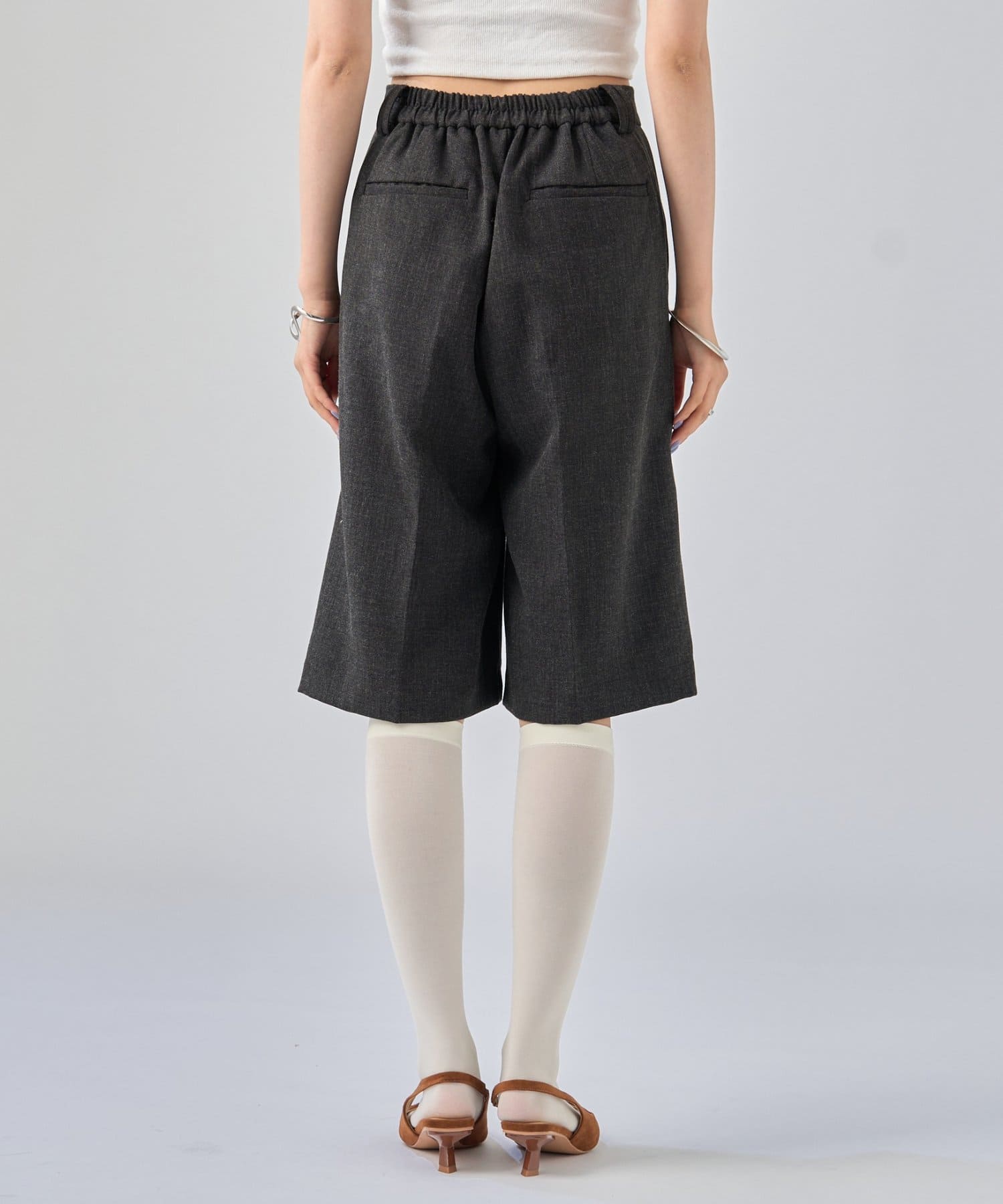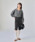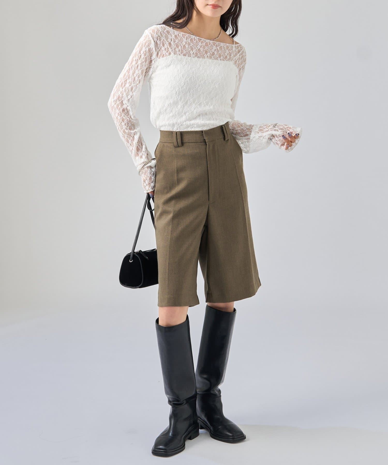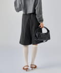 ・膝丈まであるハーフパンツのためクロップド丈のトップスと合わせるとバランスよく着れるのでおすすめです◎