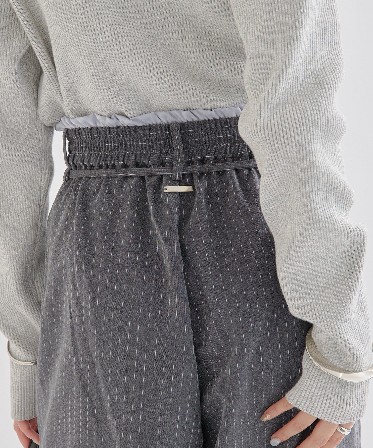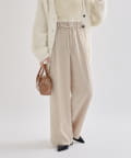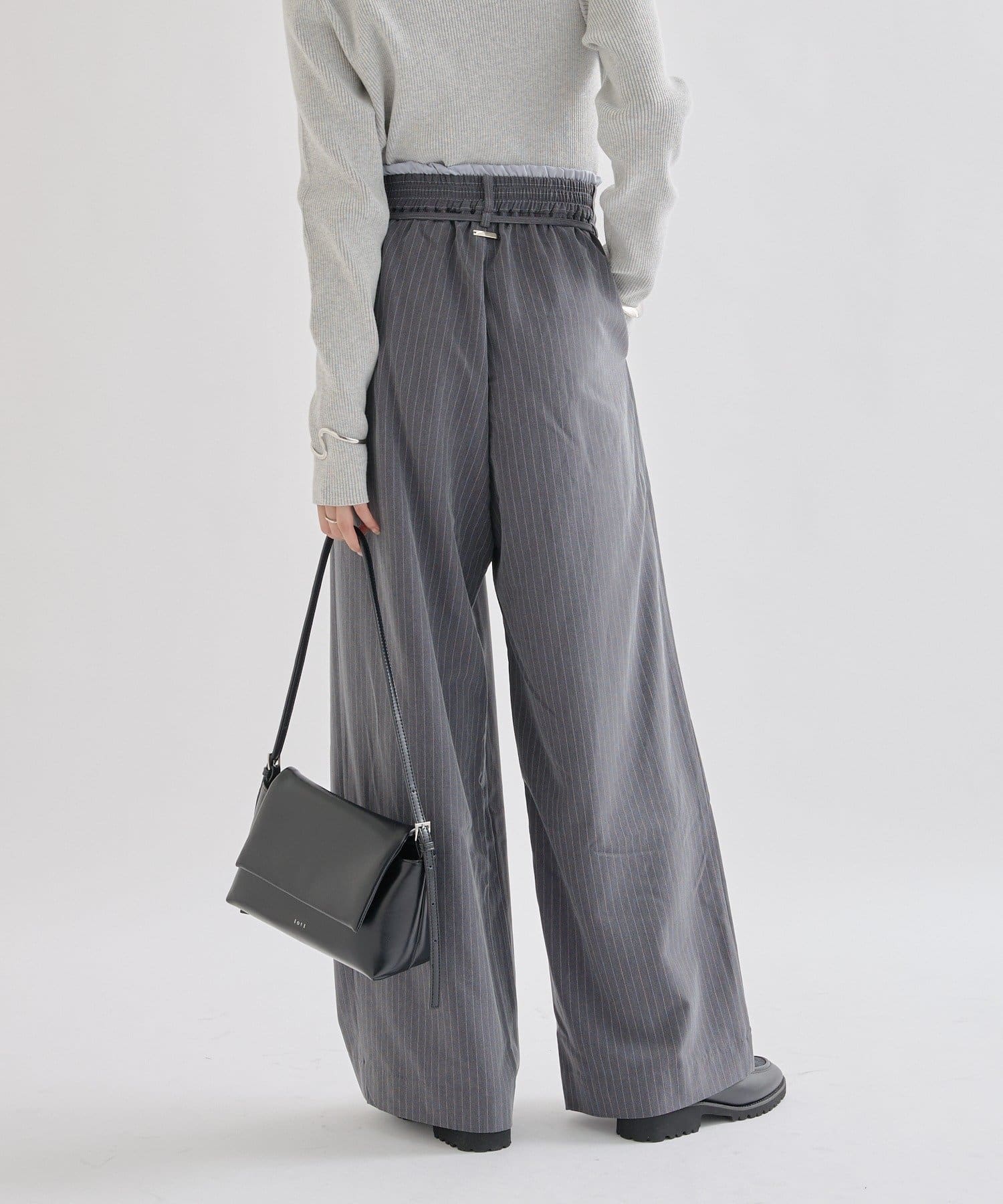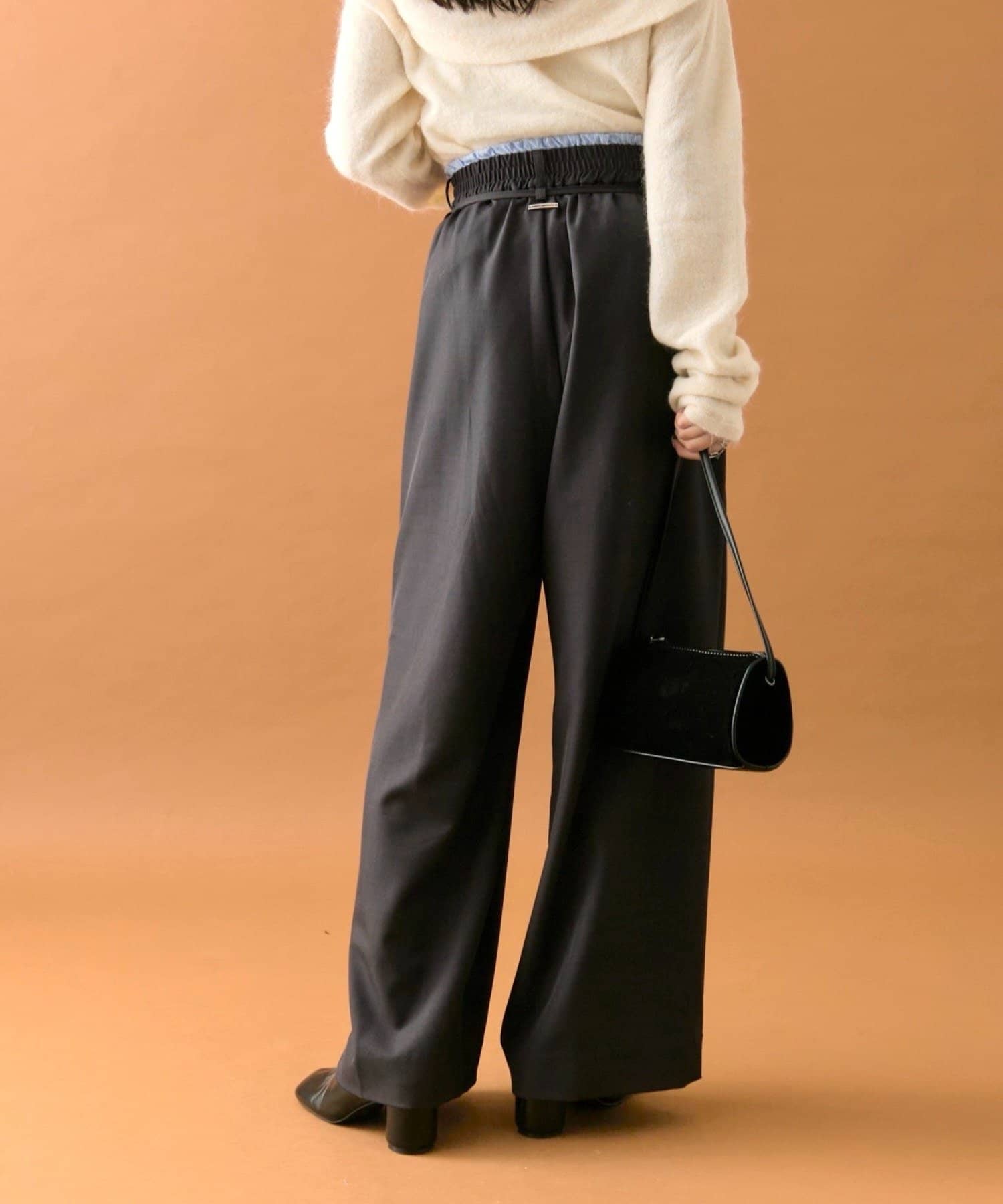 ウエストデザインが目を惹く!一着でレイヤードスタイルができるWベルトパンツ!