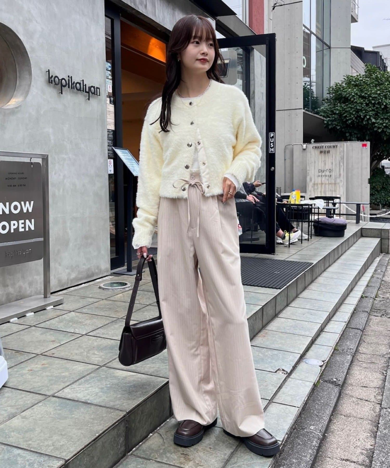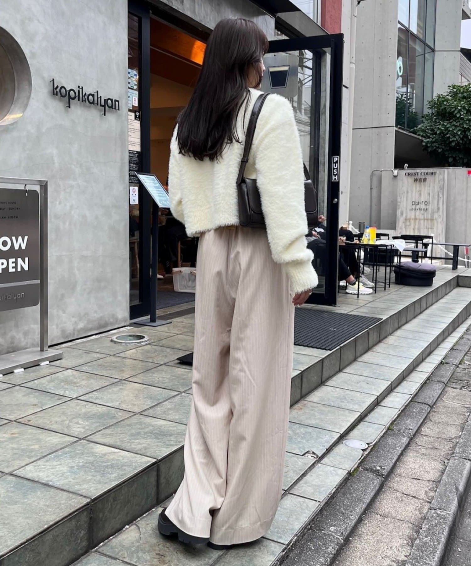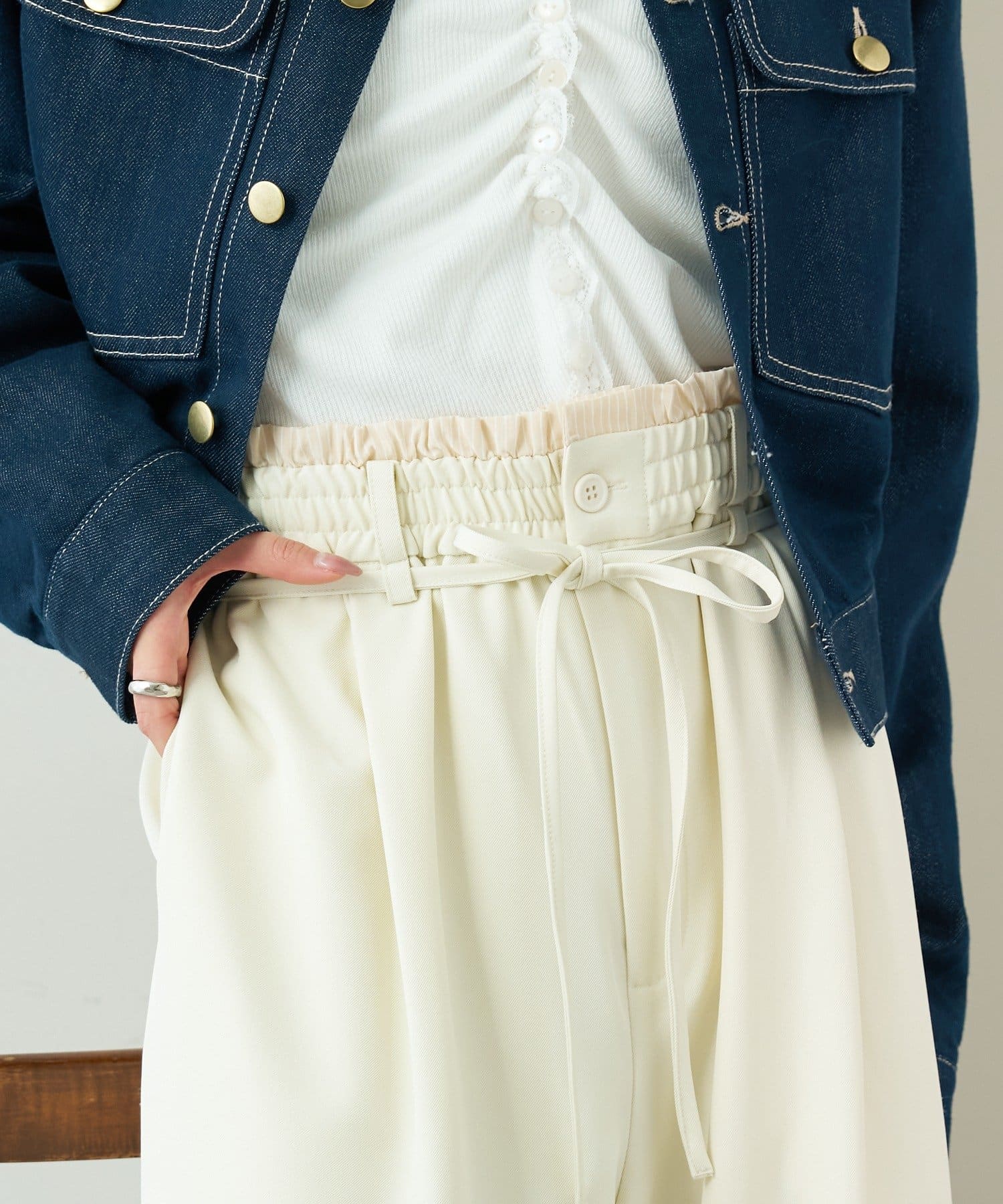 ・クロップド丈のトップスと合わせたりインスタイルでウエストデザインを見せると◎