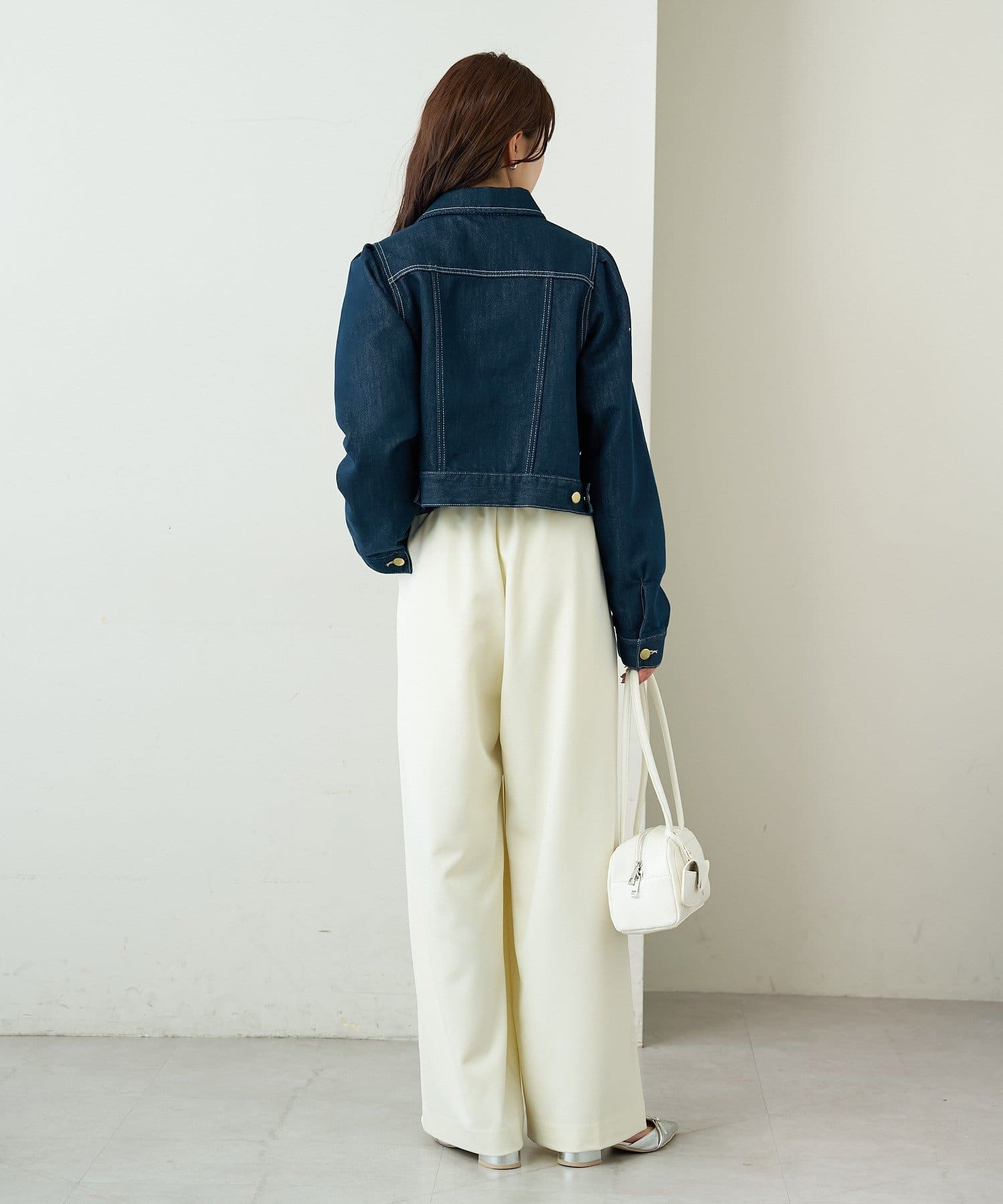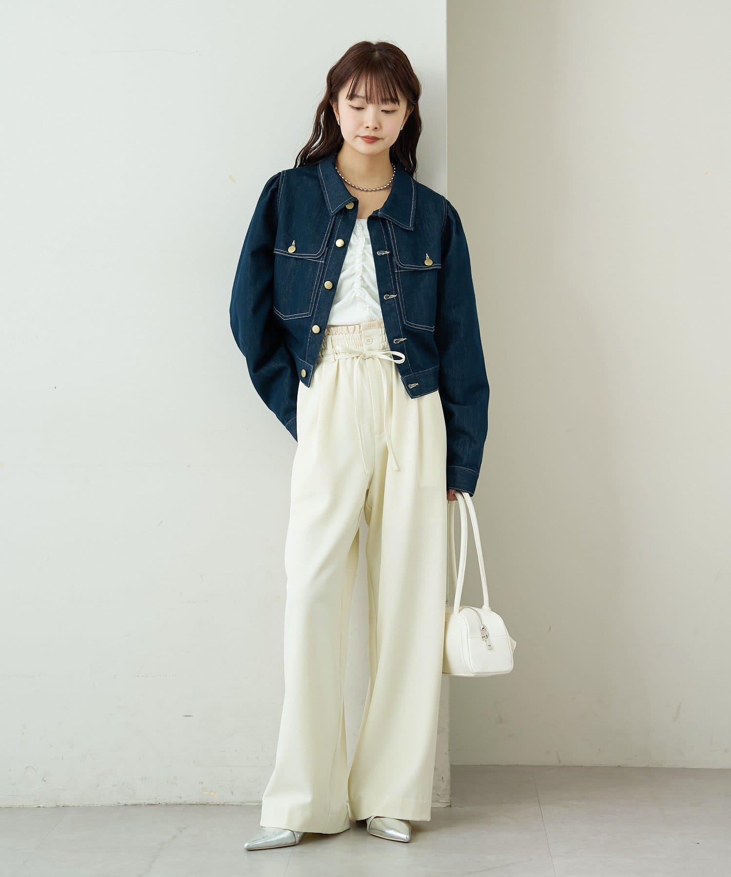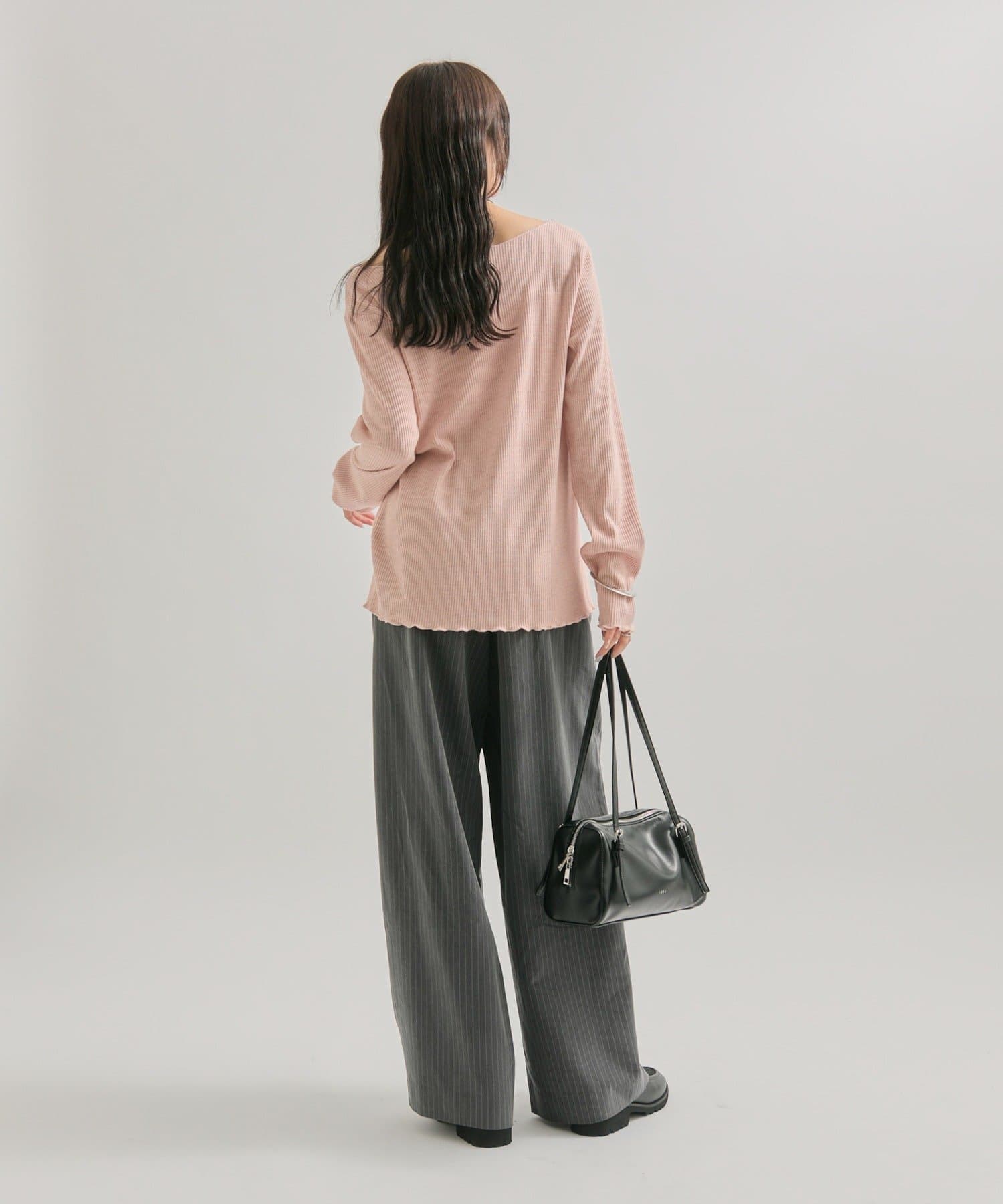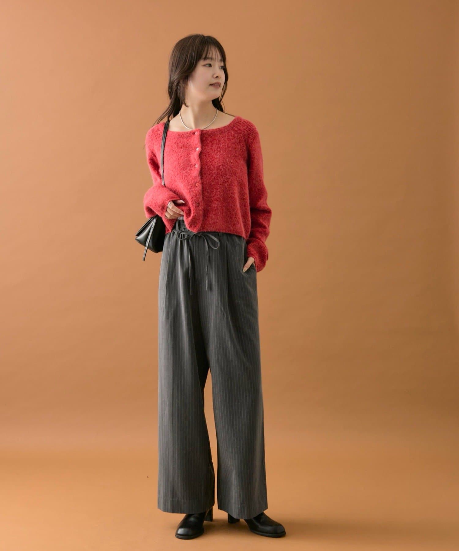 コンパクトなトップスをインして着るとすっきりスタイルアップで着られます。