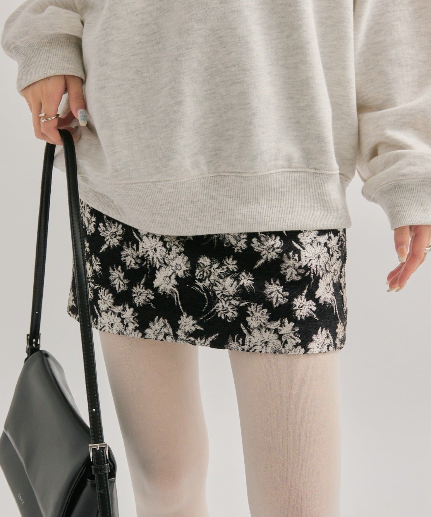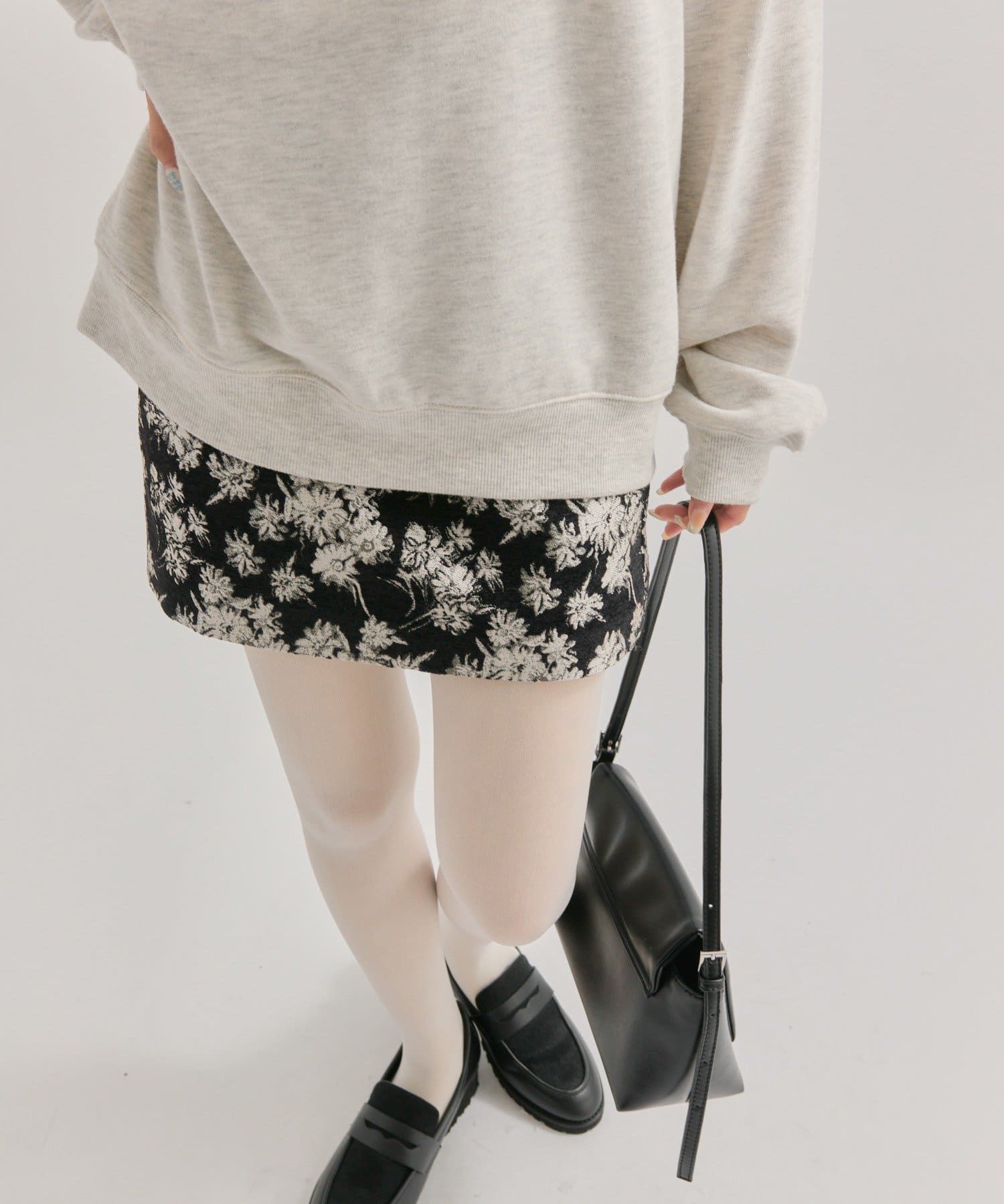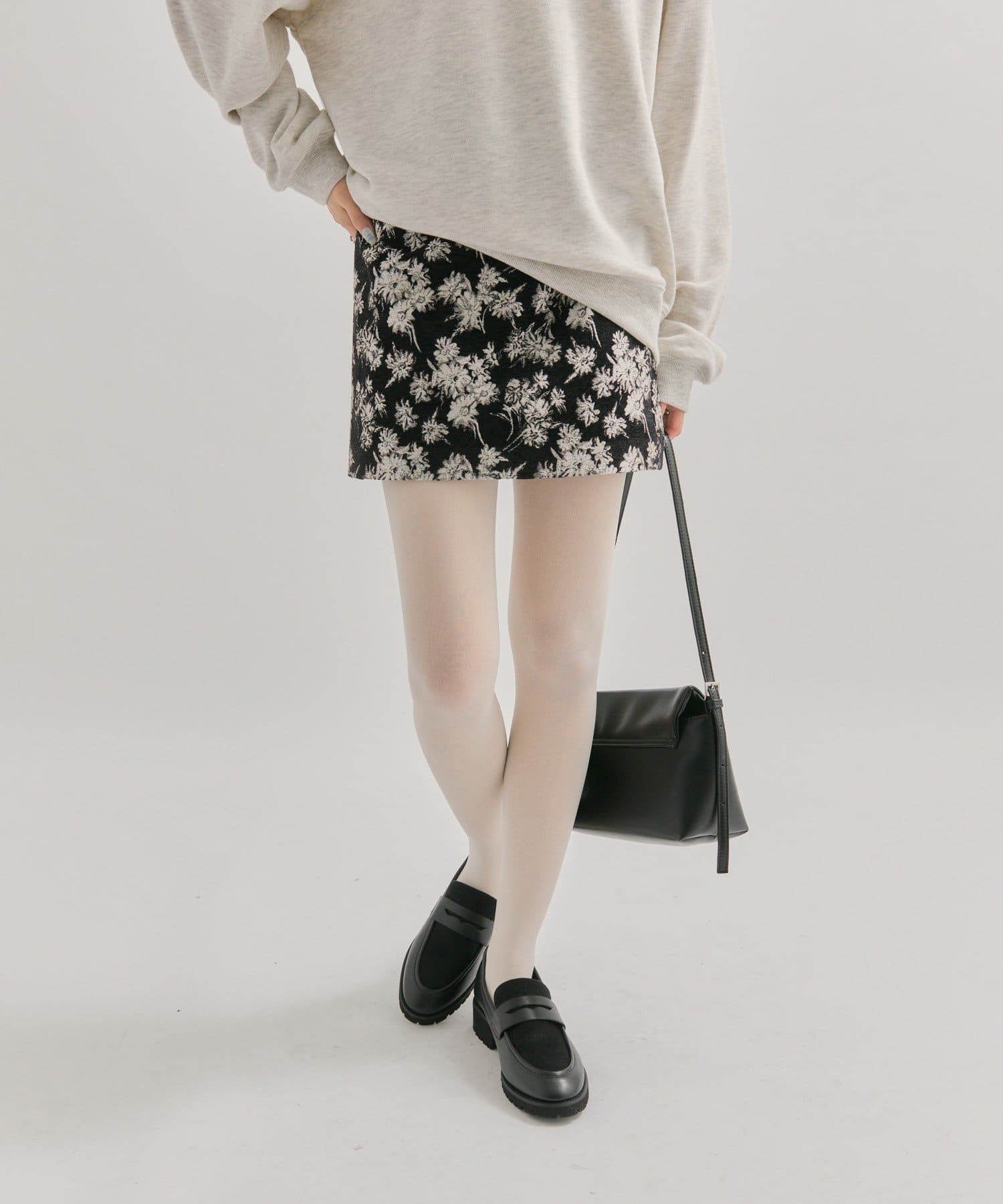 花柄でデザイン性があるスカートなので、トップスがシンプルでも華やかなスタイルになります!