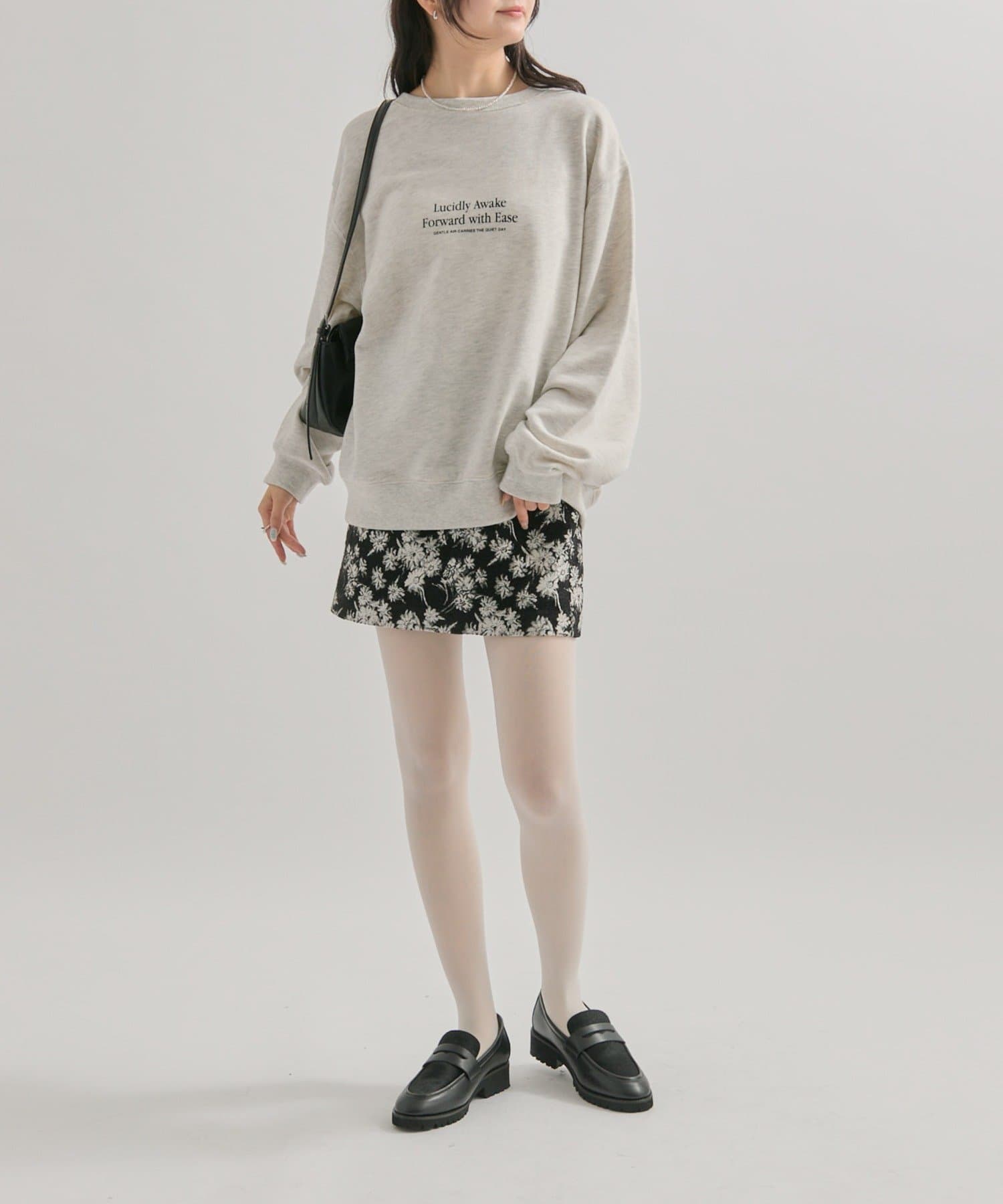 ・オーバーサイズのスウェットを合わせてカジュアルダウンできるのもおすすめです。