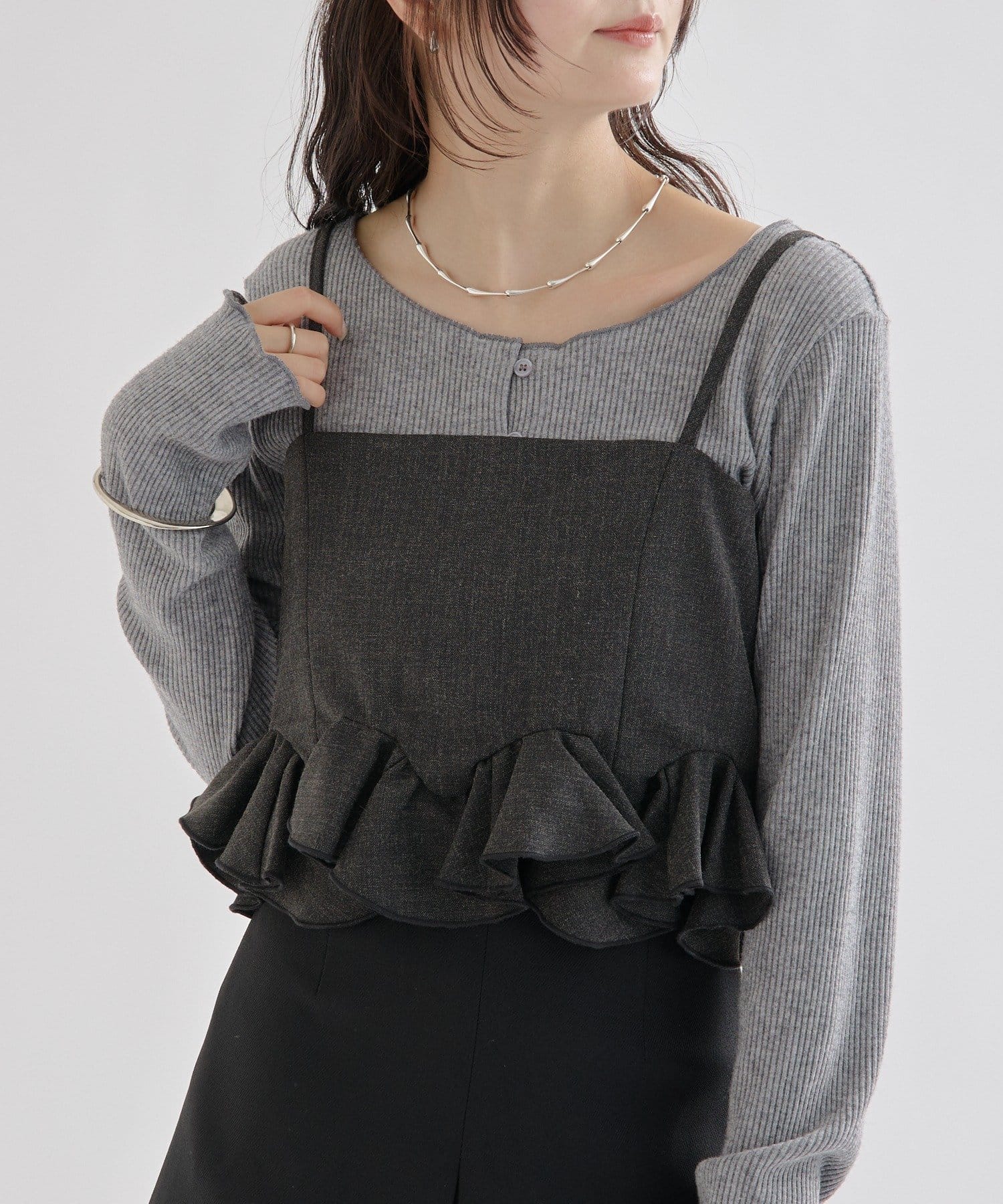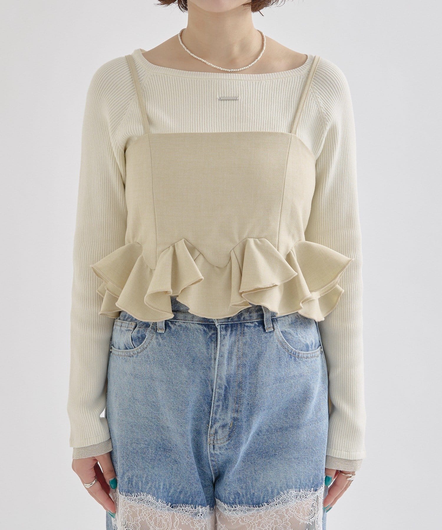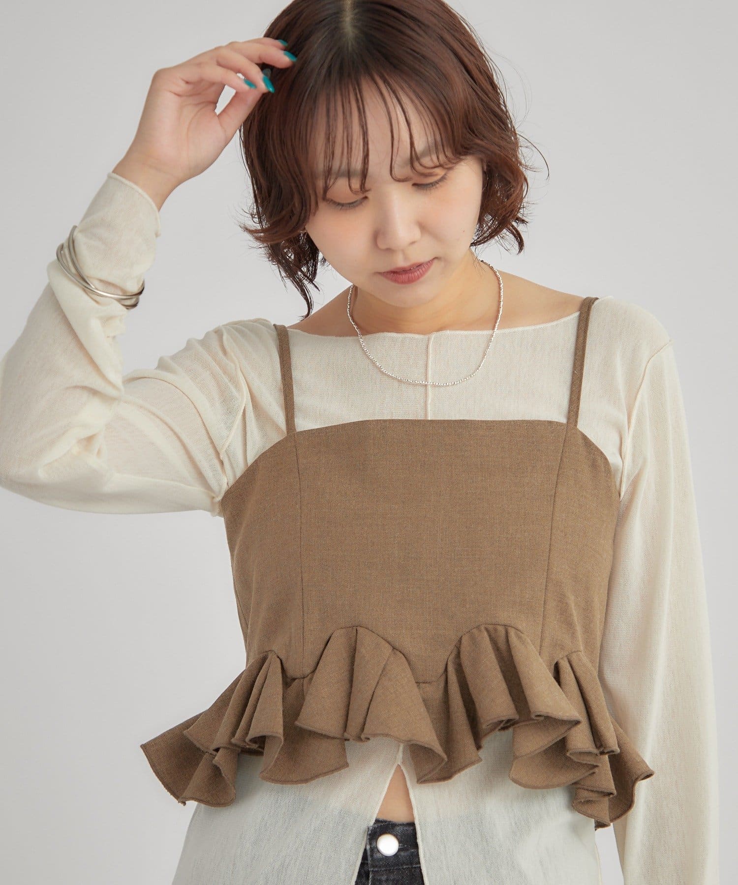 レイヤードするだけで女性らしさ高まるウェーブフリルビスチェ!