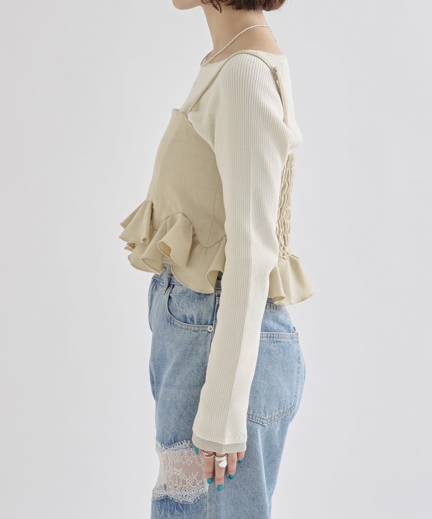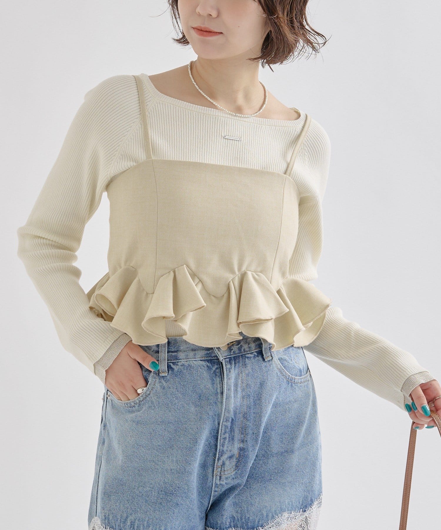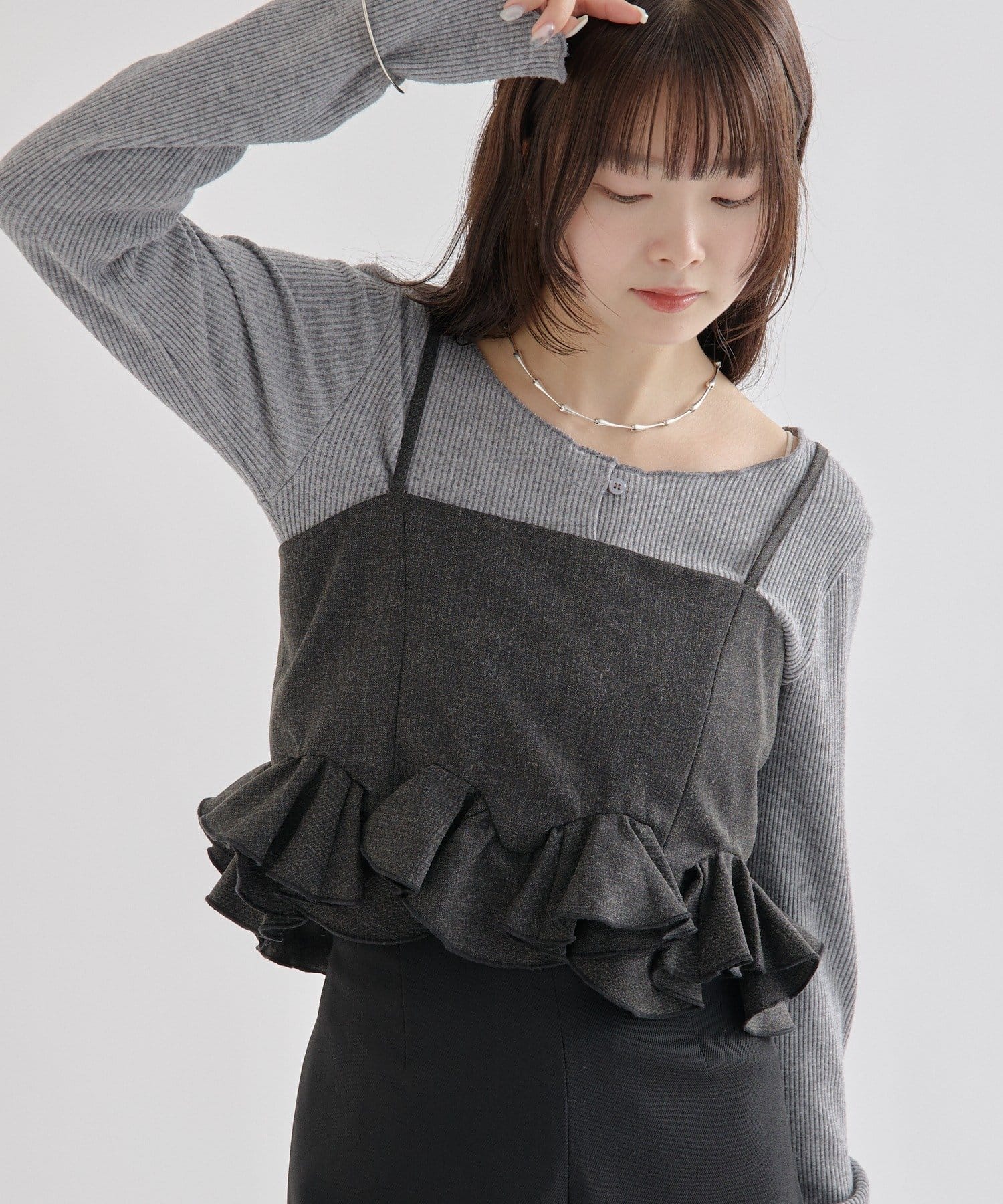 レイヤードするだけで女性らしさ高まるウェーブフリルビスチェ!