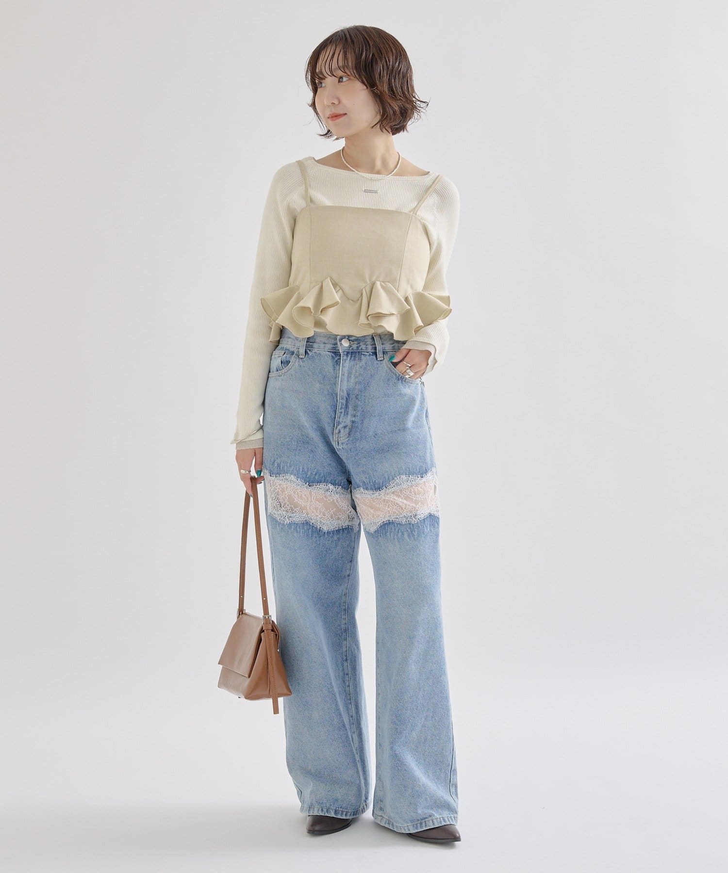 ・レース切替デニム
