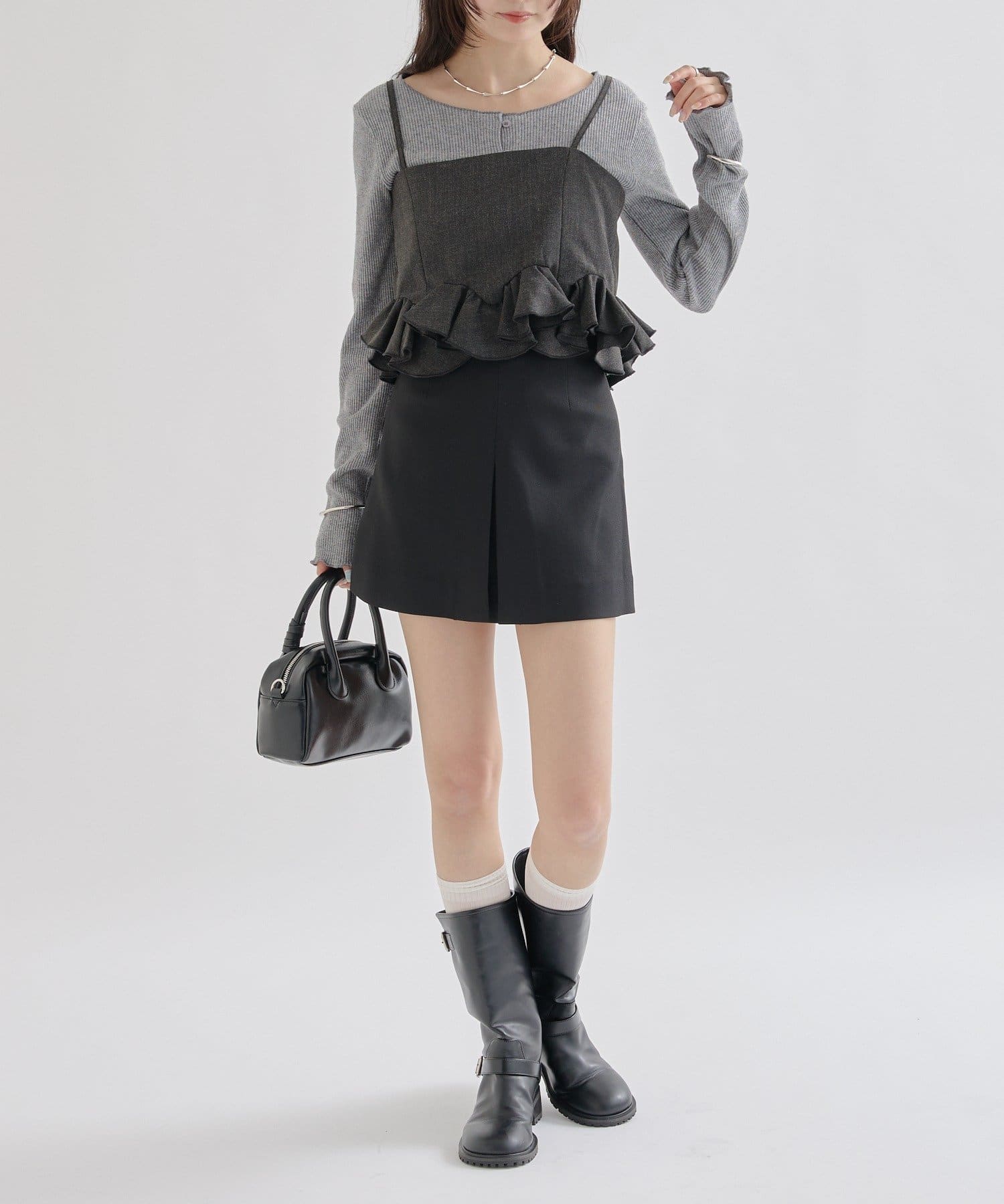 フリルでボリューム感のあるアイテムなので、ミニボトムですっきり着たいです!