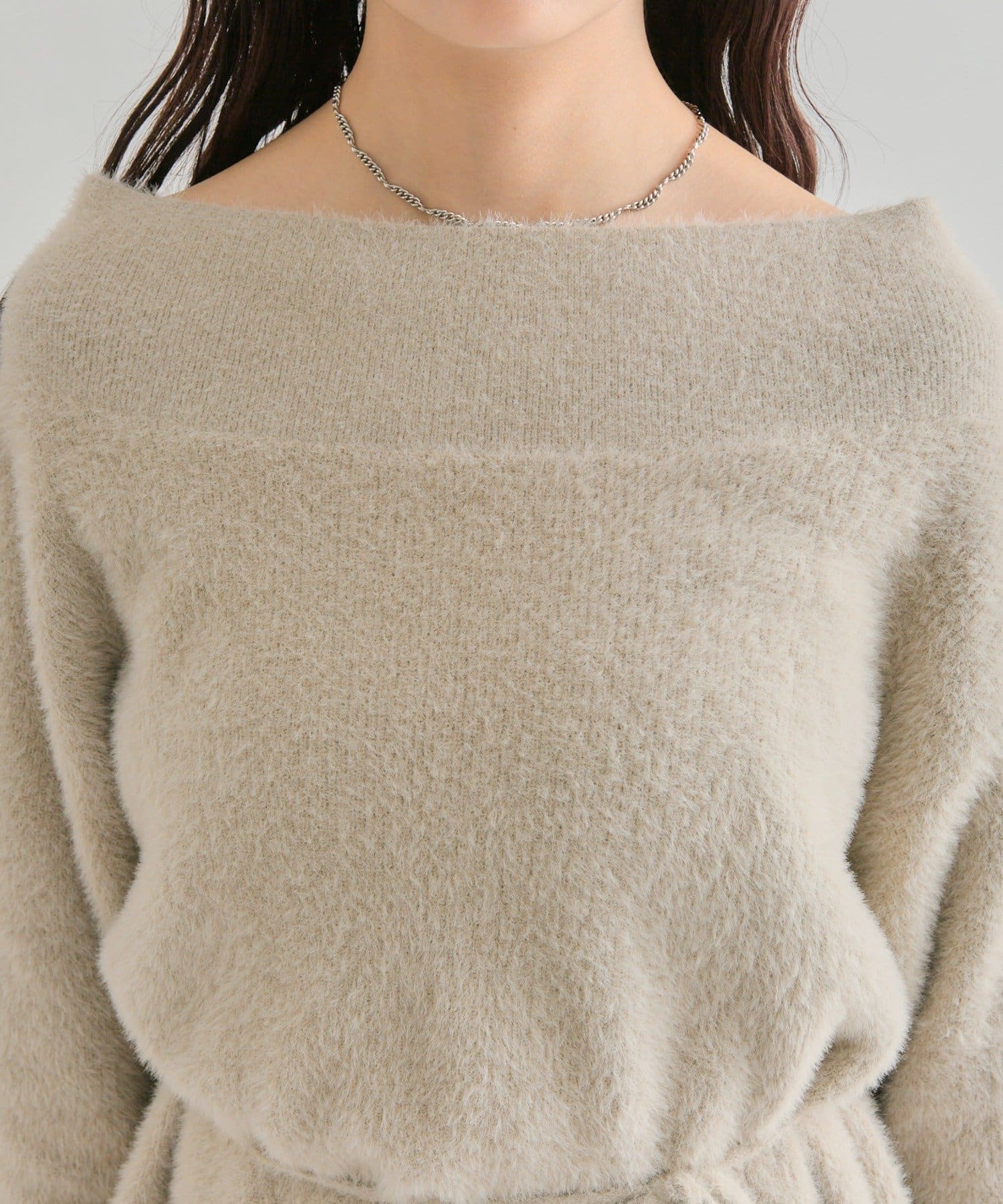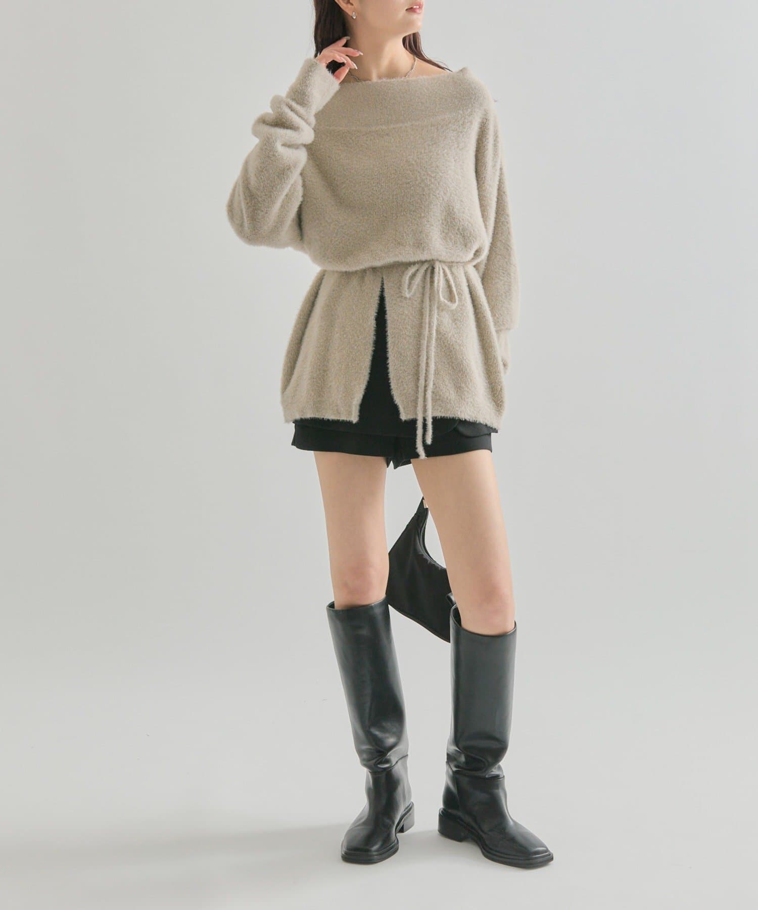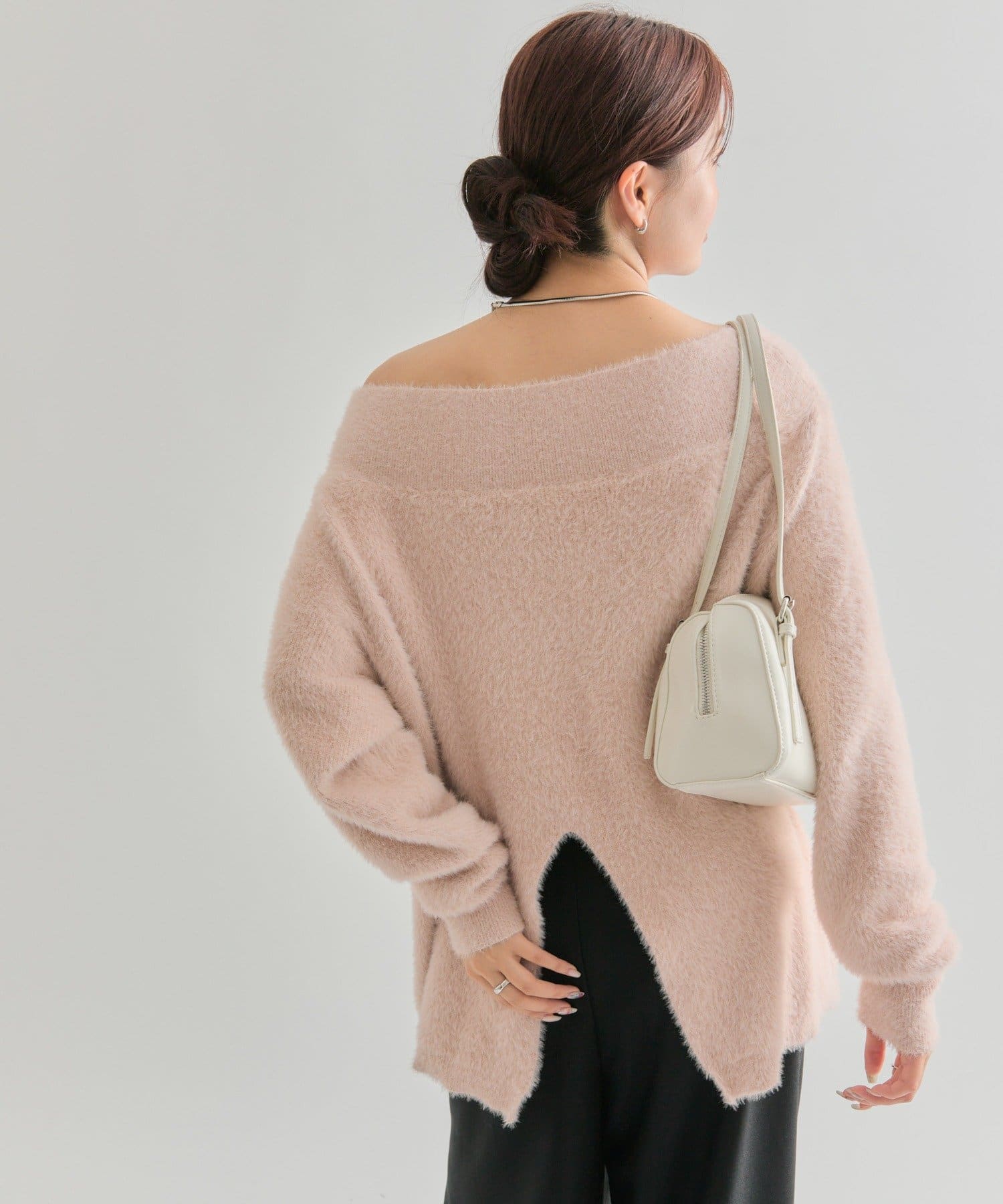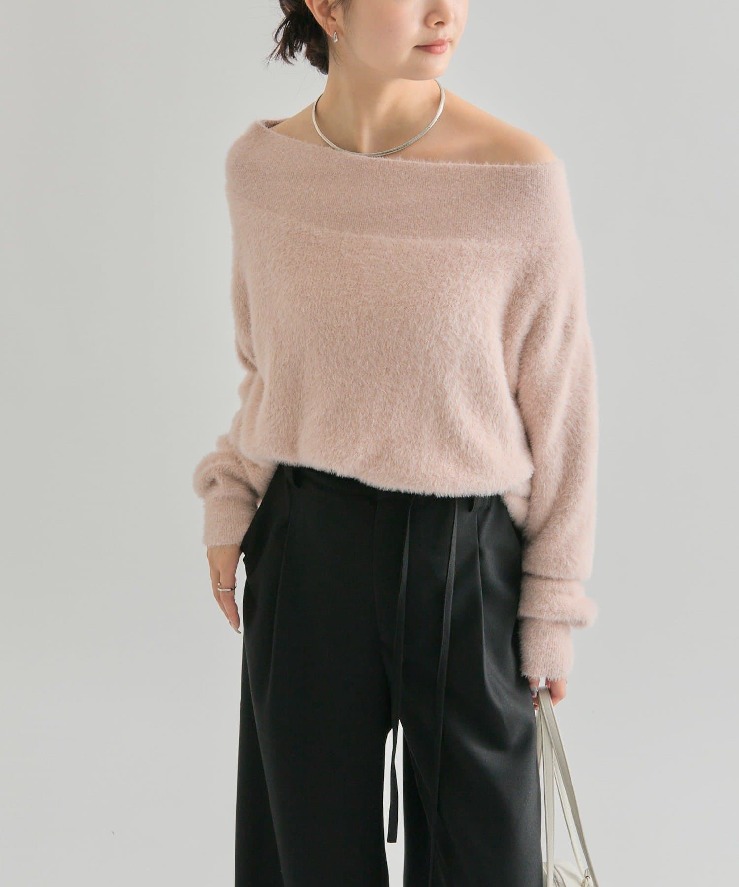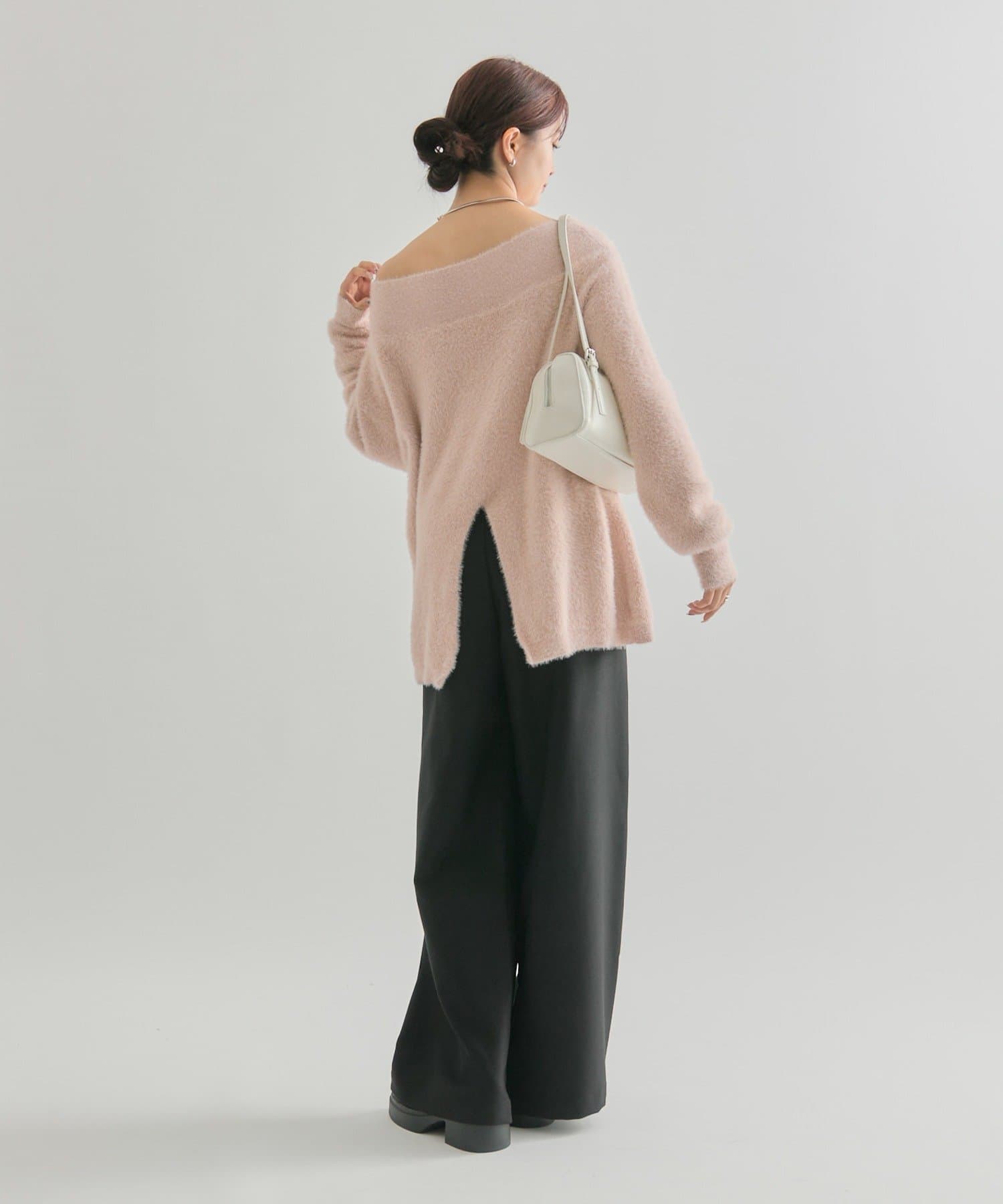 【PNK/BEI WEB限定カラー】ミンクライクワイドネックニット