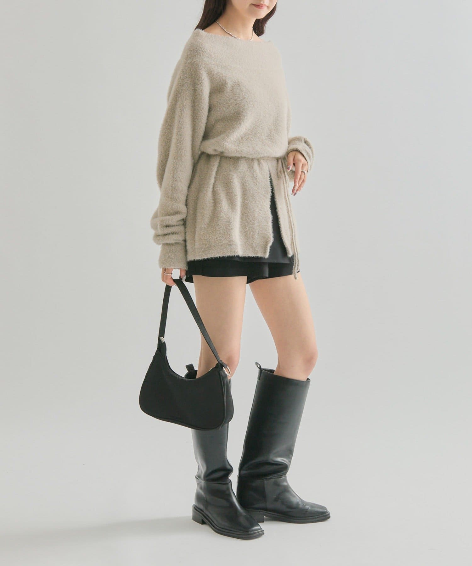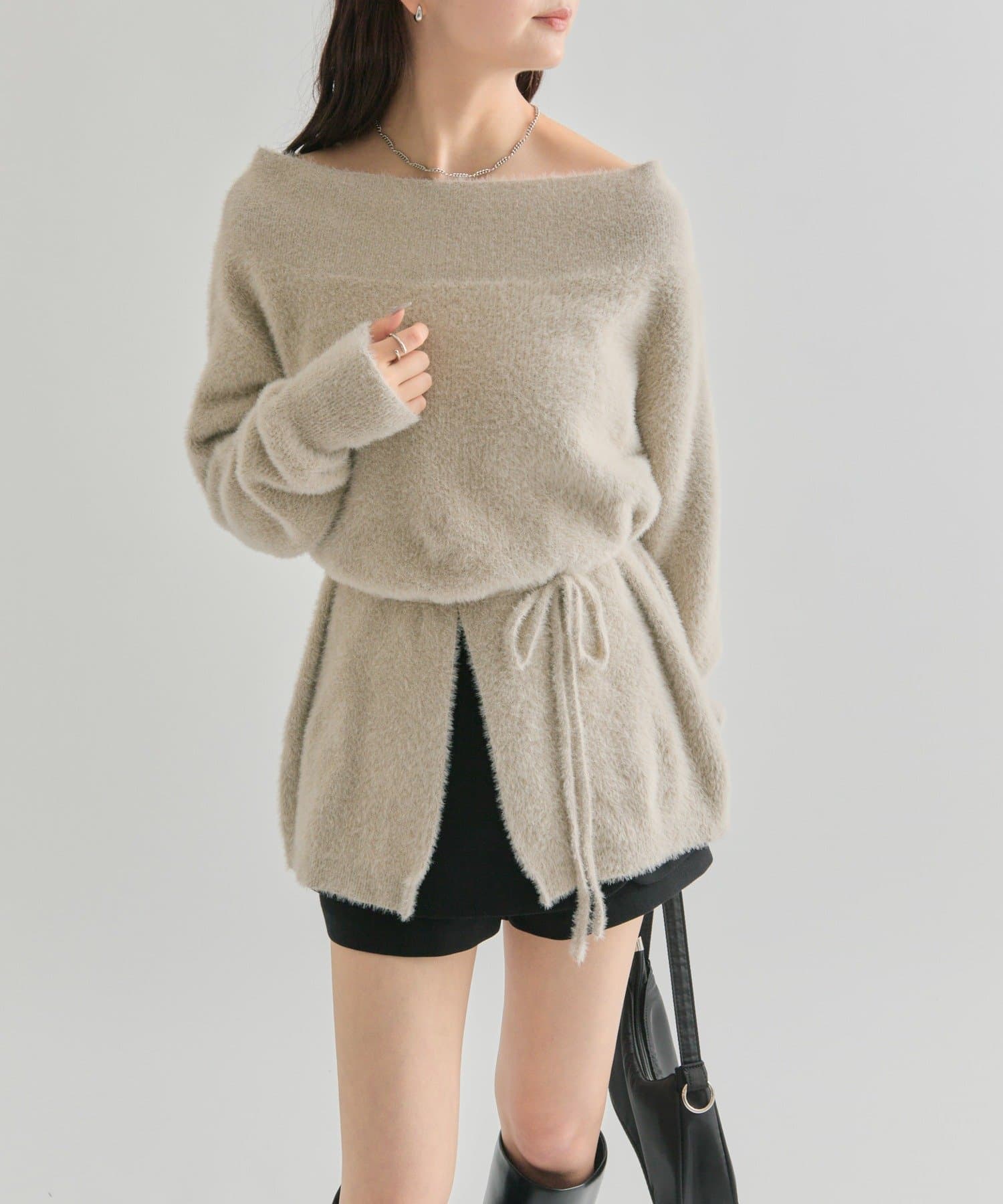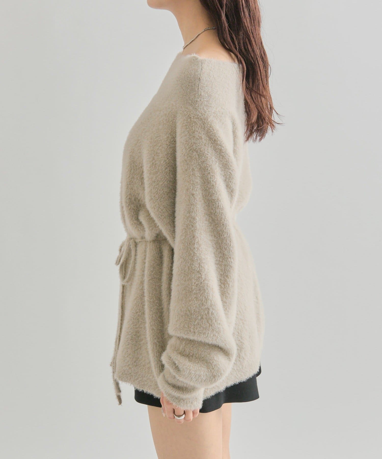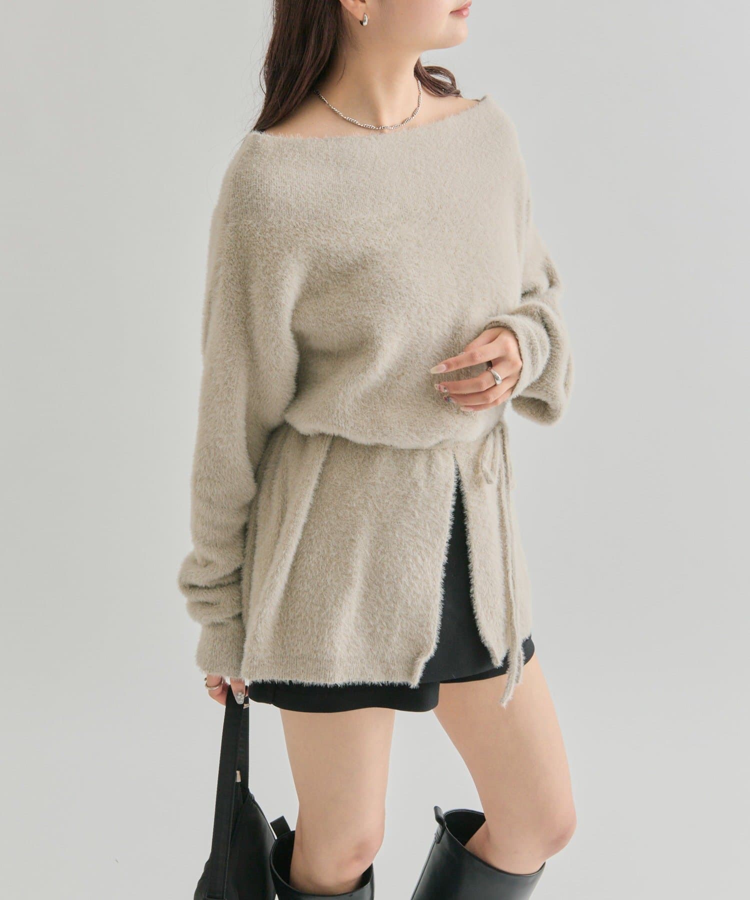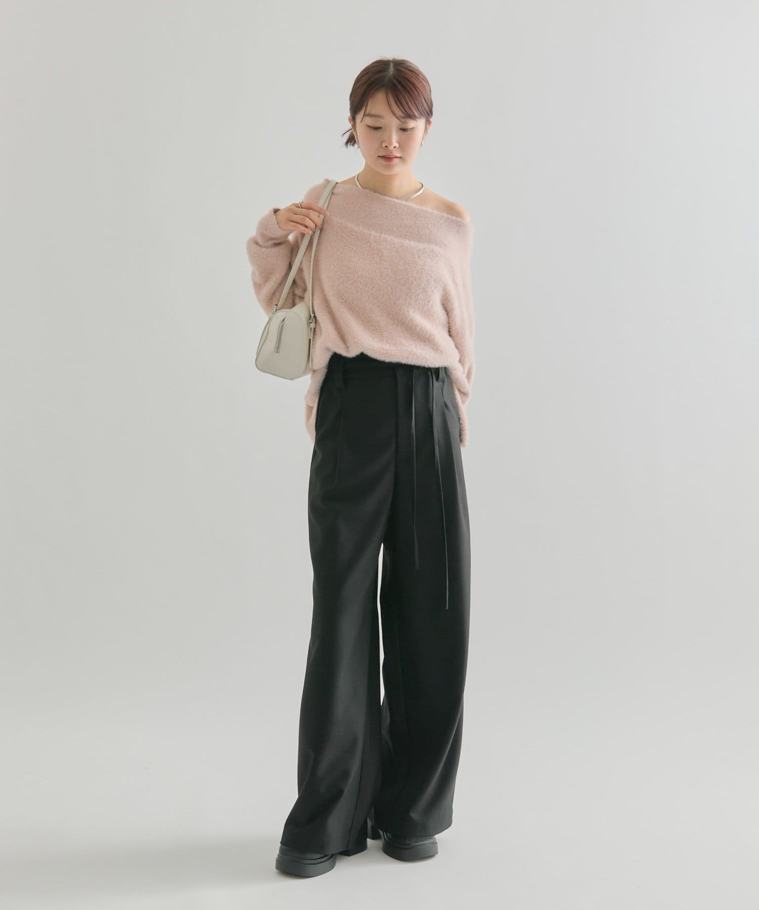 【PNK/BEI WEB限定カラー】ミンクライクワイドネックニット