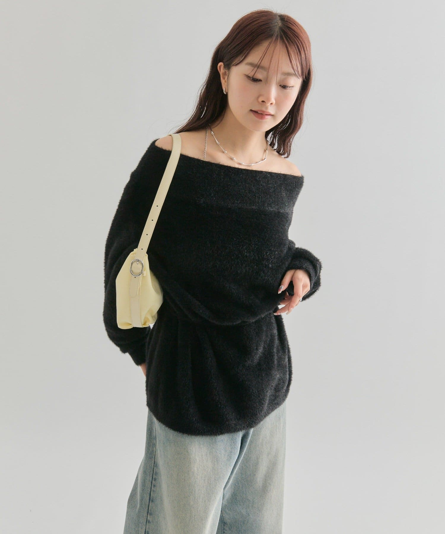 ・オフショルダーとしてもワンショルとしても着用でき、着こなしの幅が広がります◎前後どちらでも着用できる2WAY仕様になっています!
