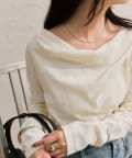 ・オフショルデザインでデコルテがキレイに見えるので、アクセサリーなどをプラスするのも◎