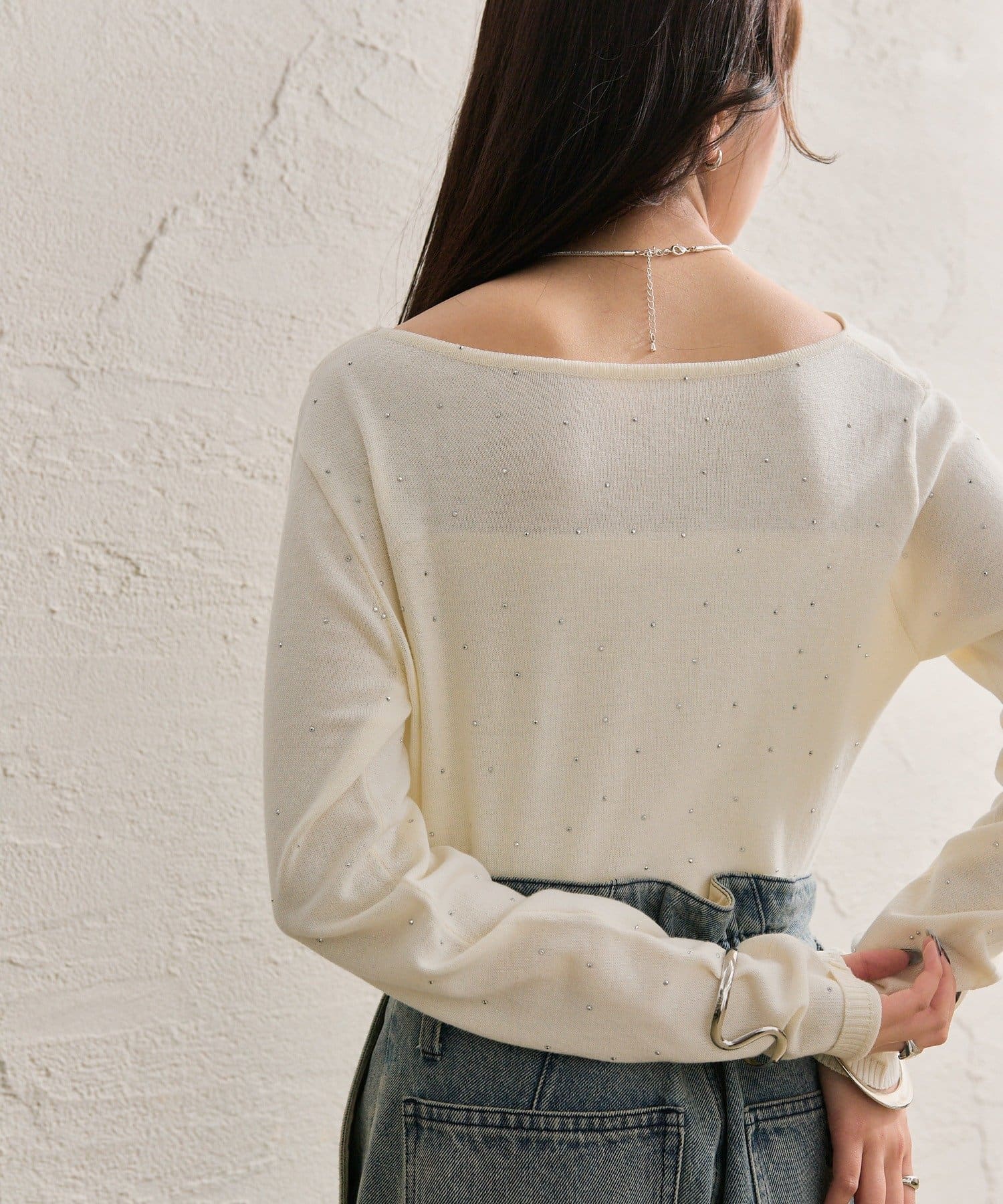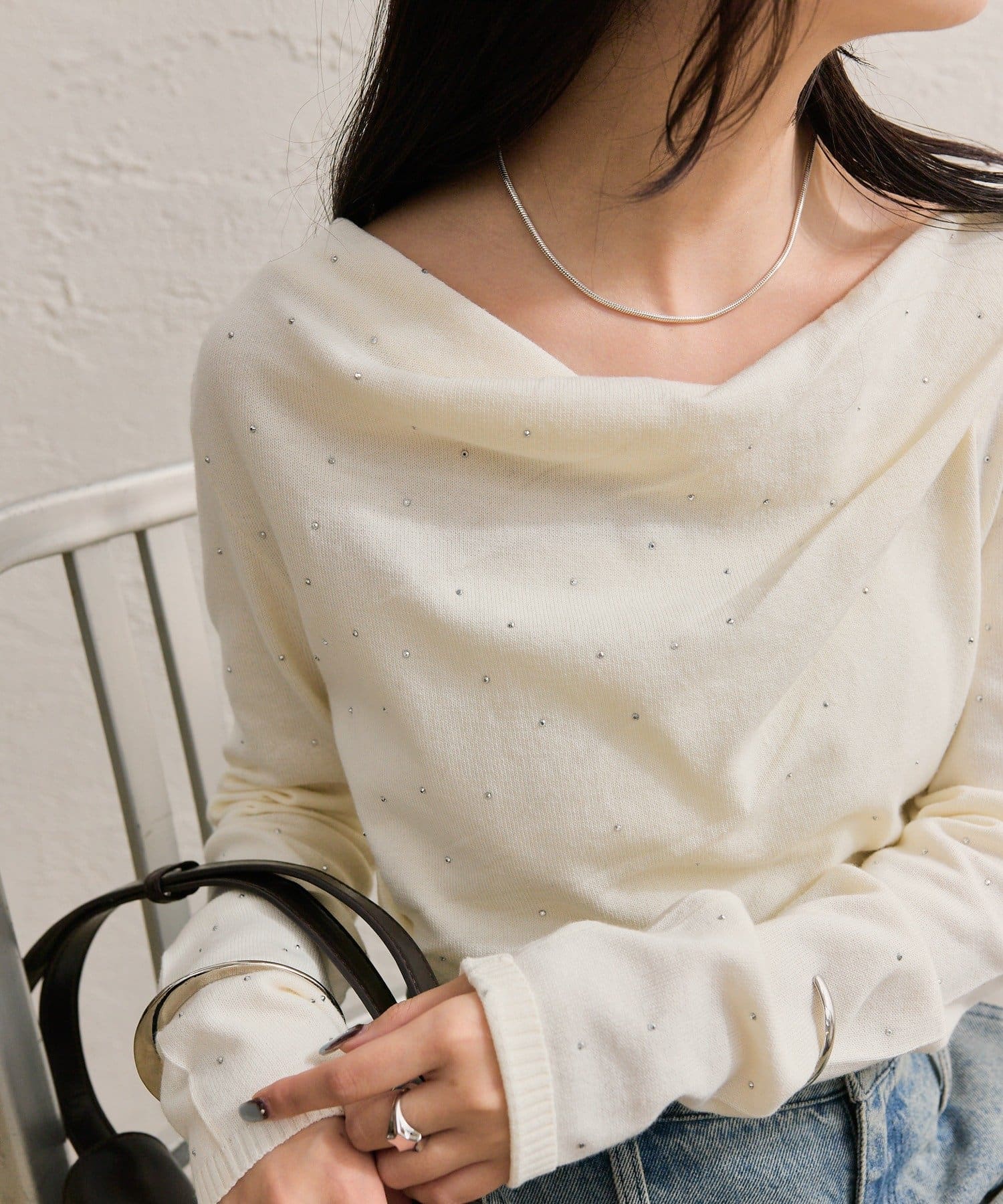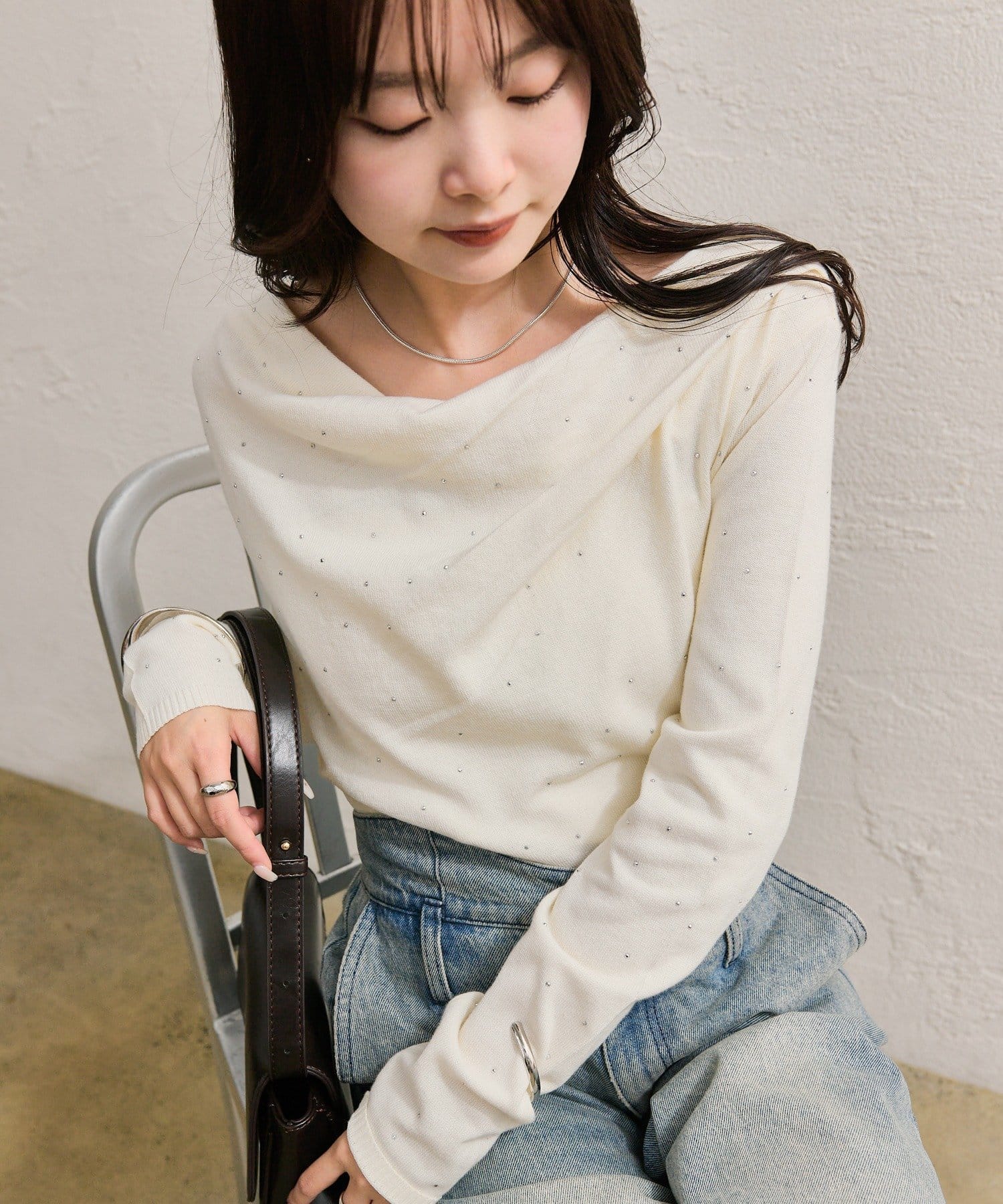 10/31 18:00~ストーン入り新色START!【年間総売上1万枚以上!ロングセラー人気アイテム!】オフショルリブニット