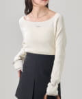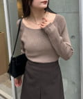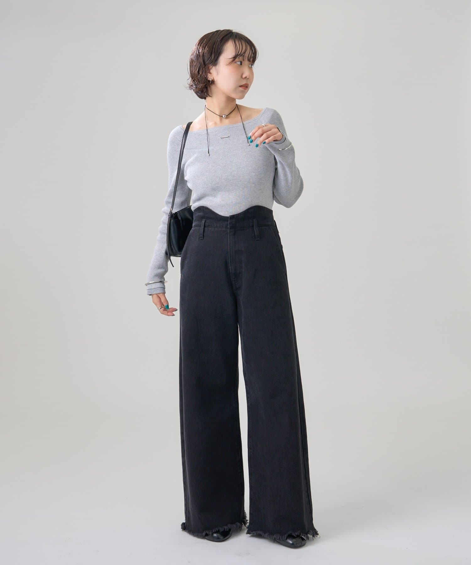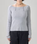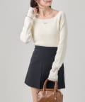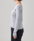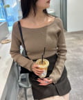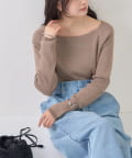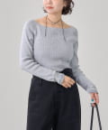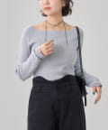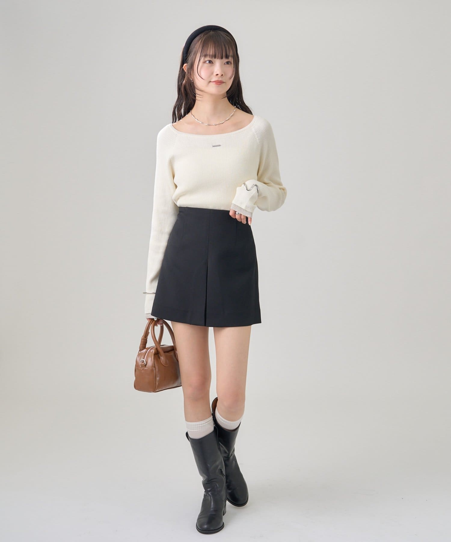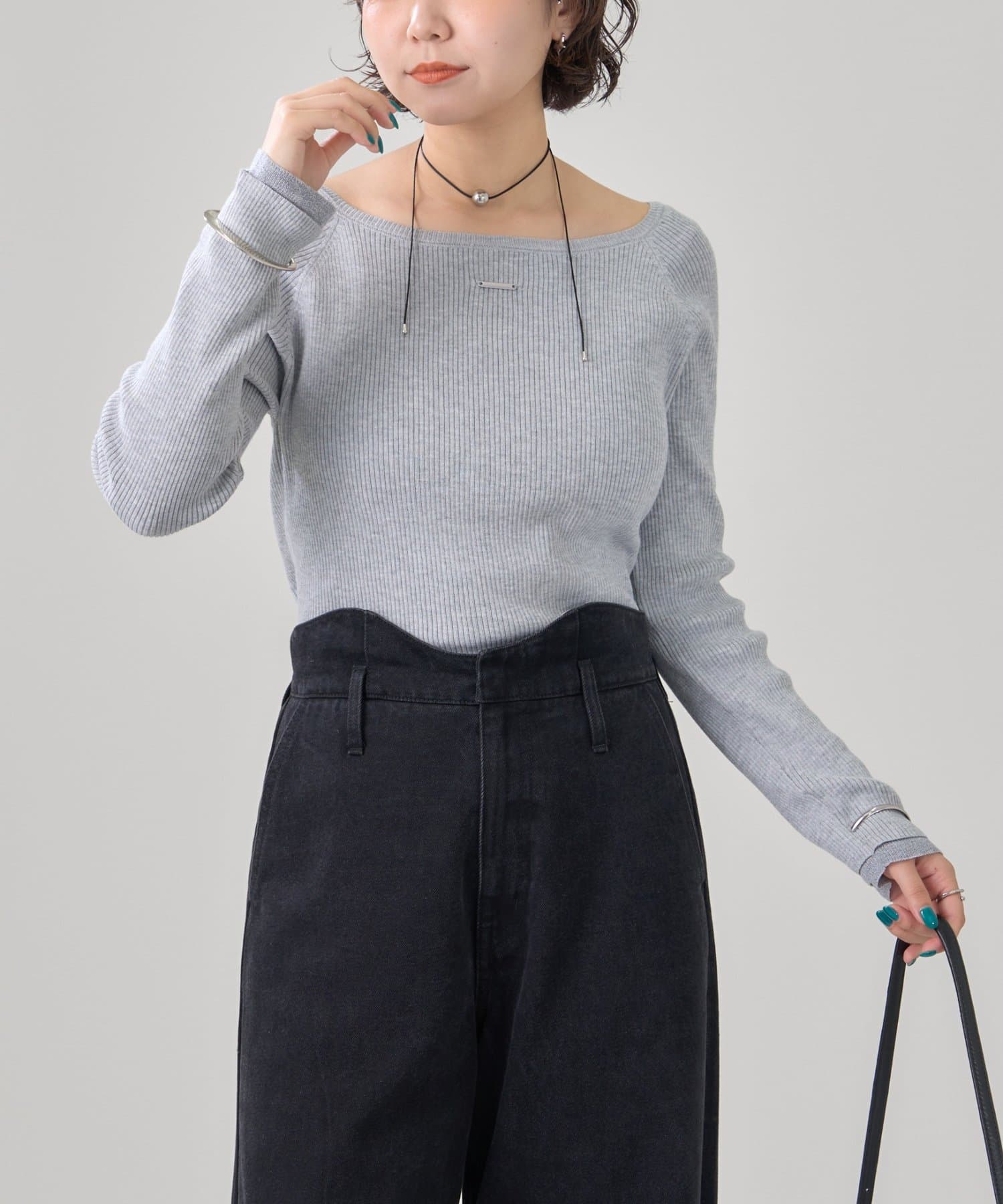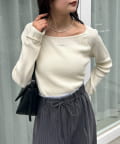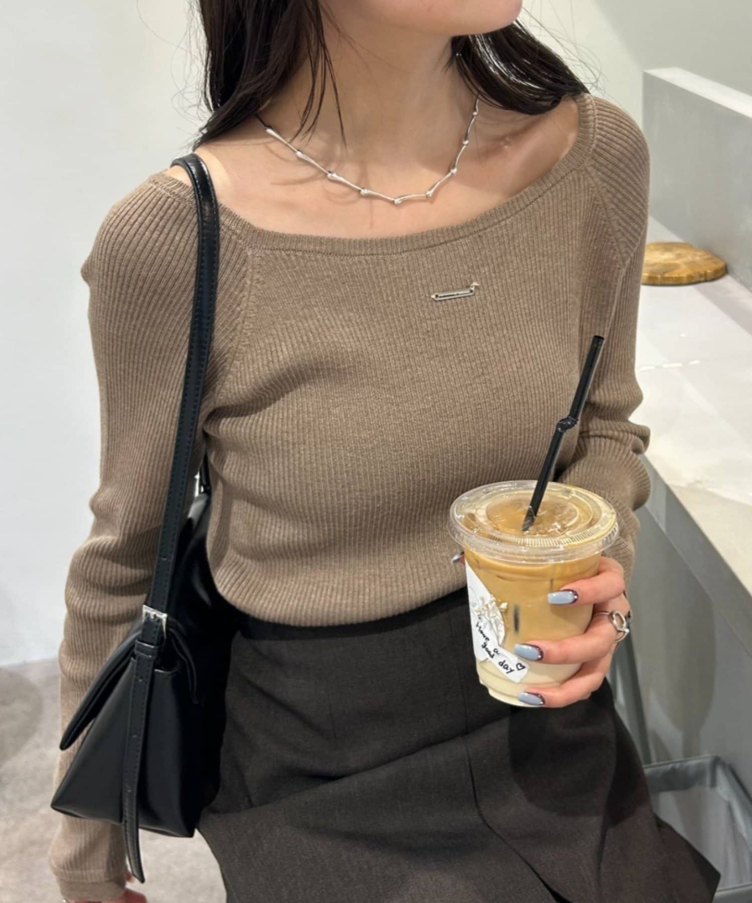 ボートネックで女性らしく華奢見えするクルーリブニット!