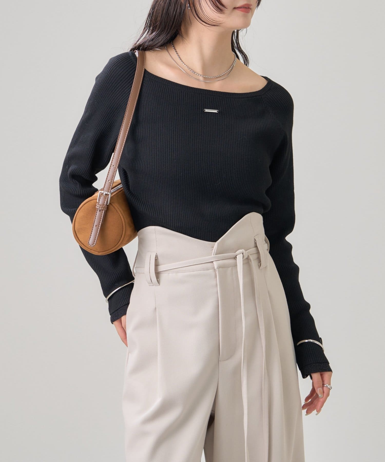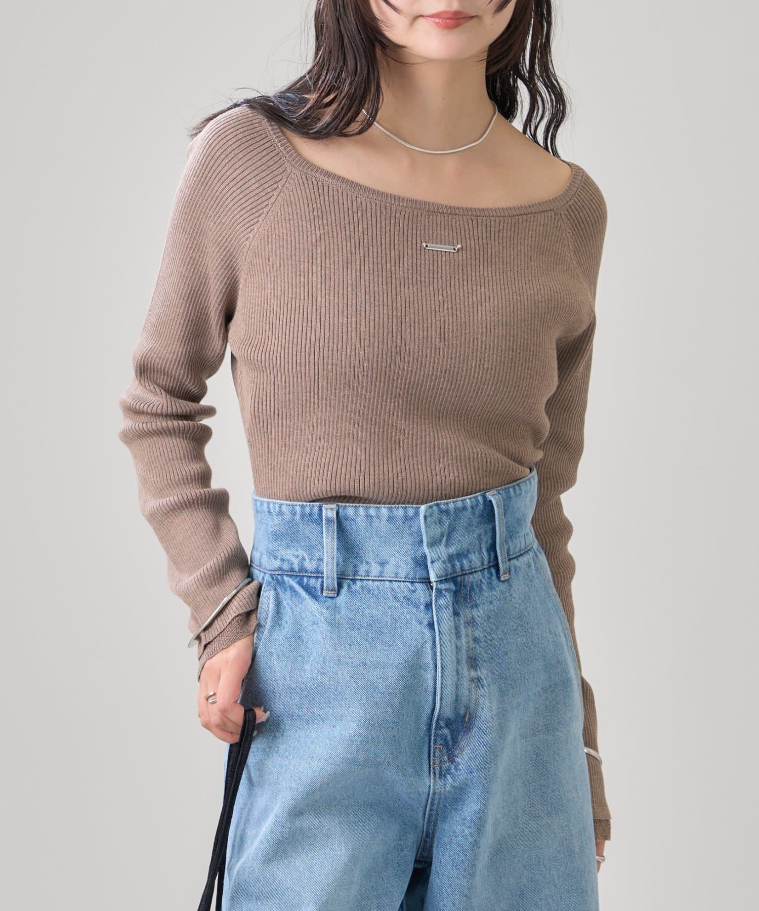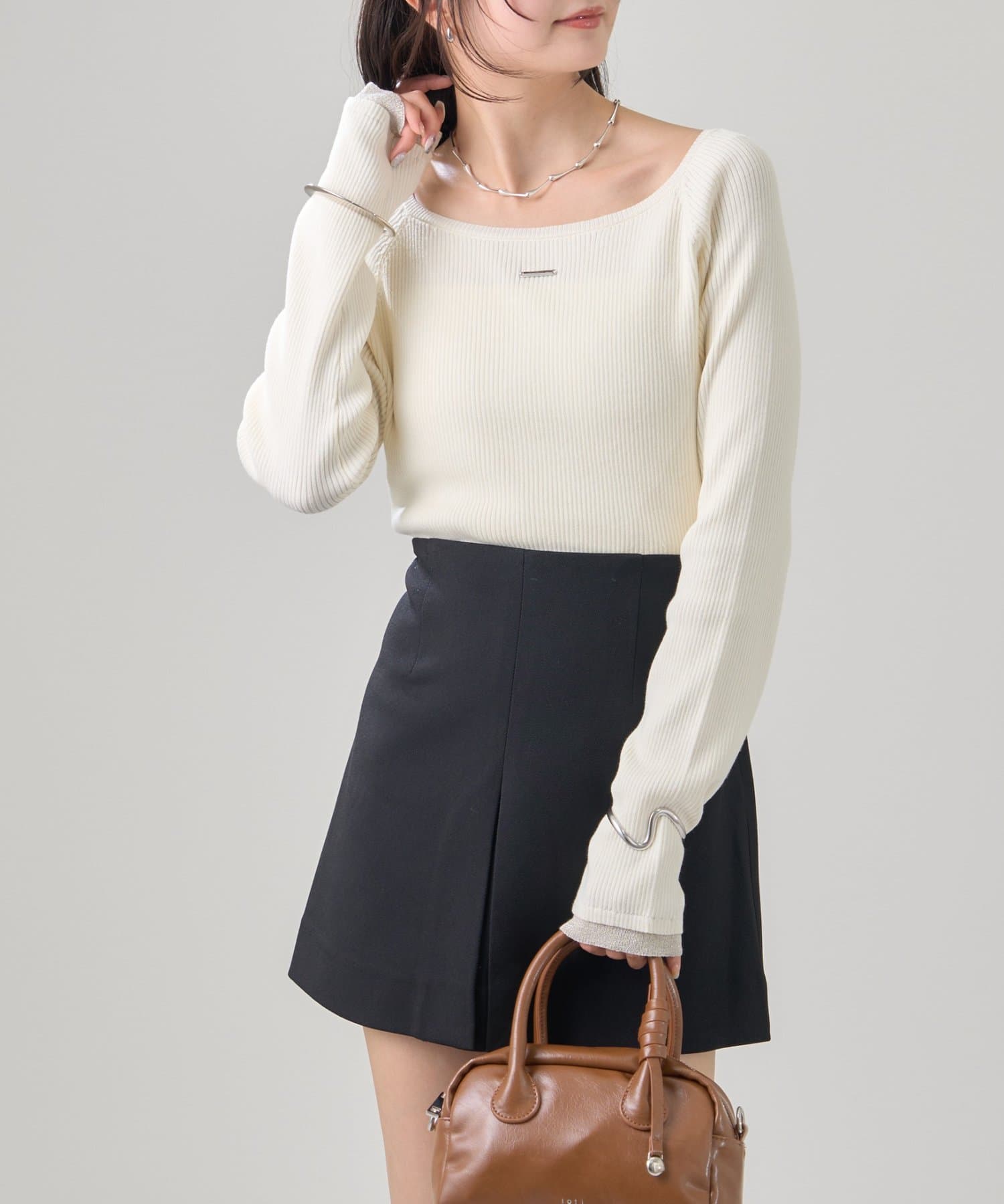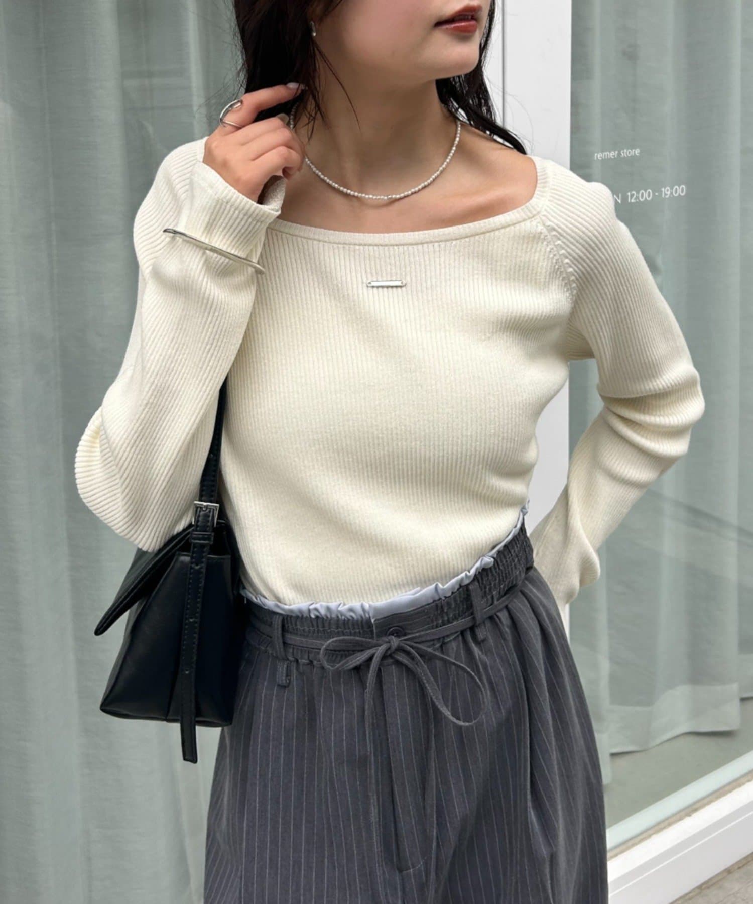 【インナー使いに最適!4色展開◎】プレート付きクルーリブニット