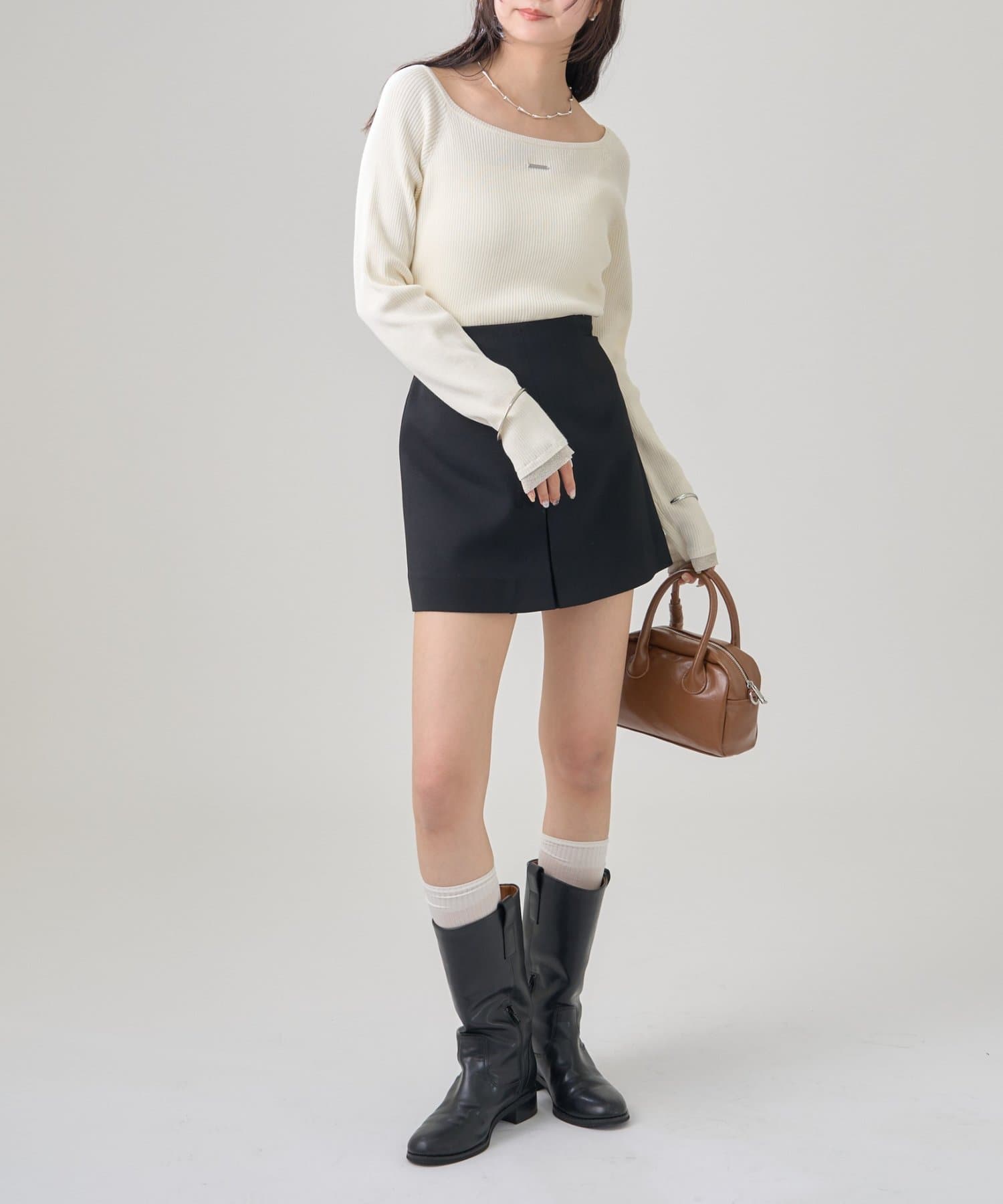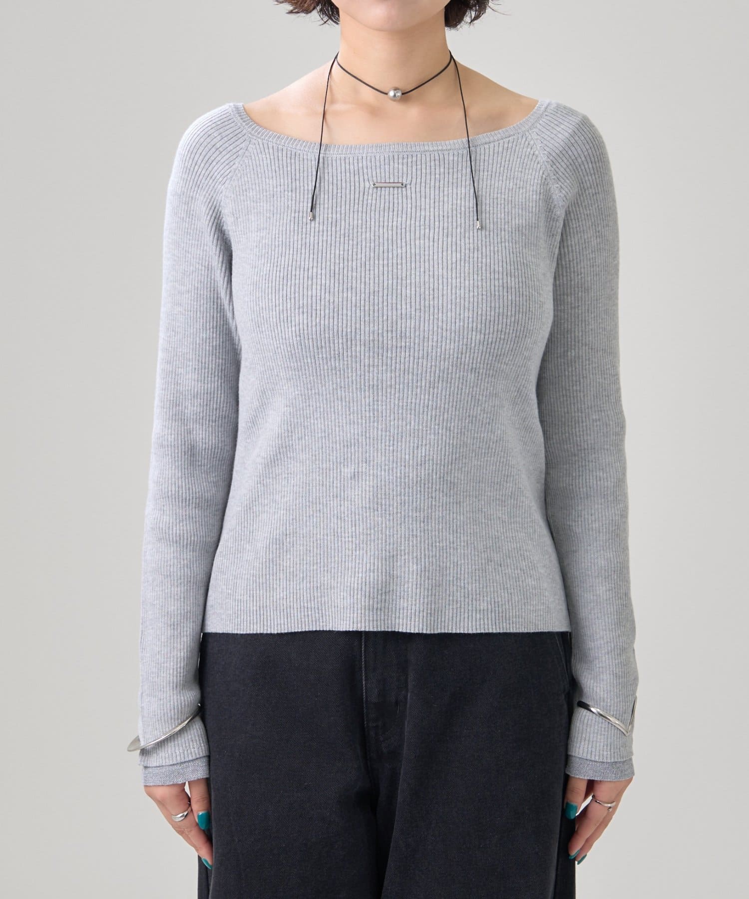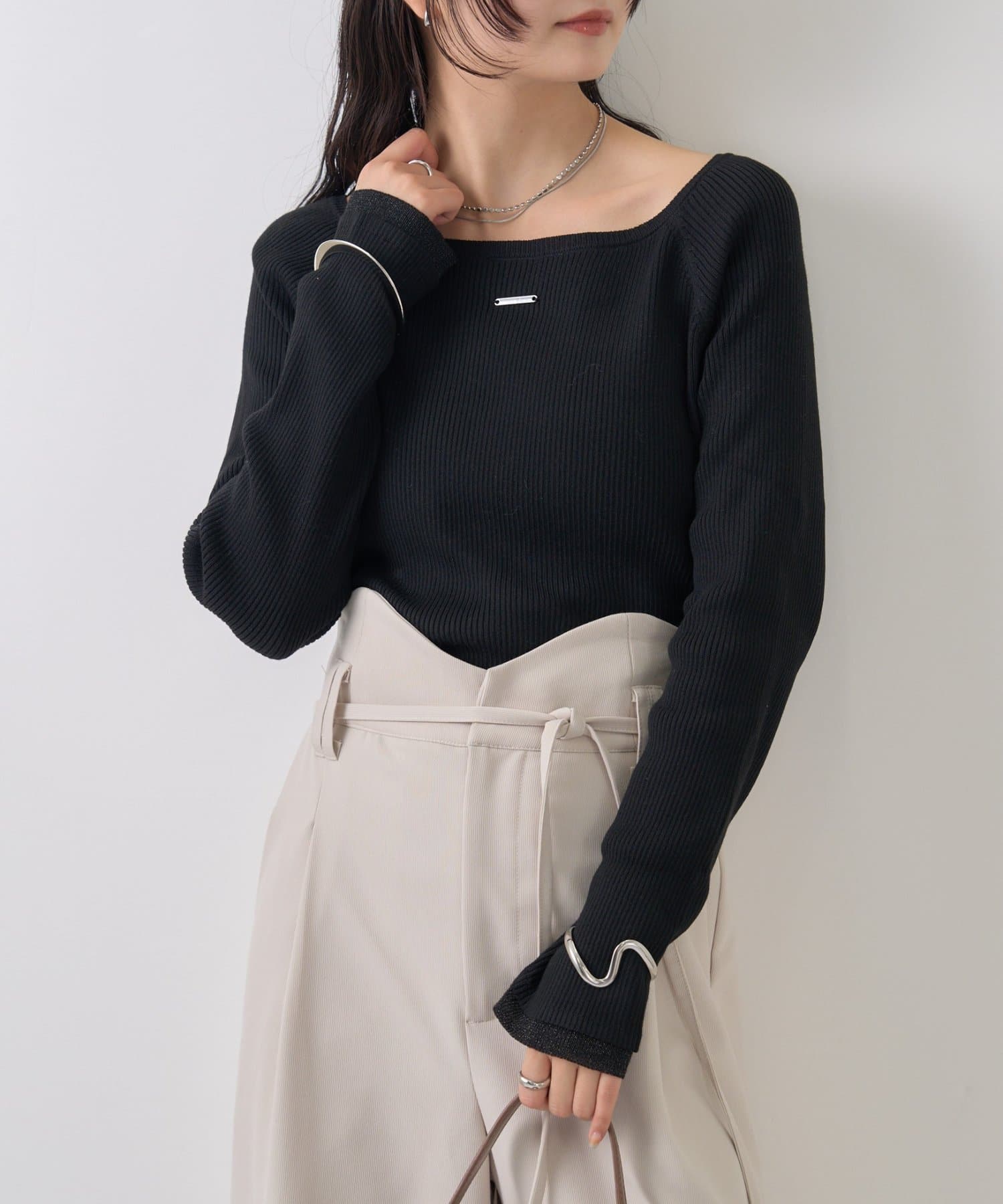【インナー使いに最適!4色展開◎】プレート付きクルーリブニット