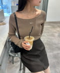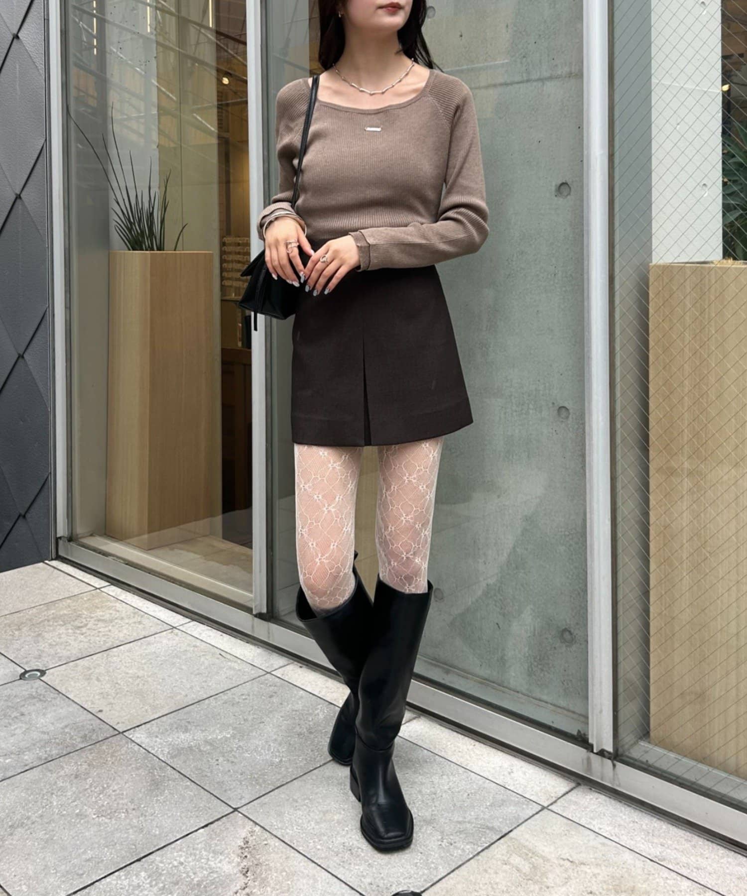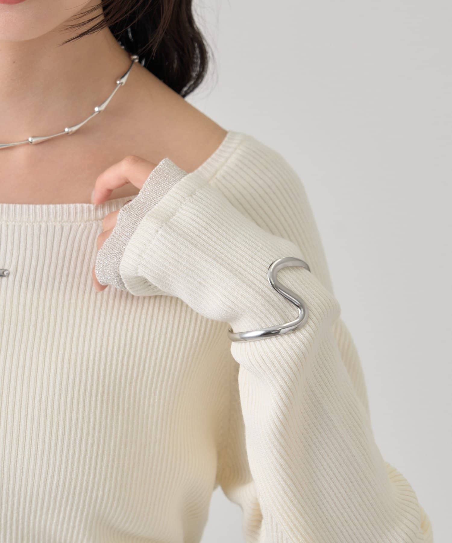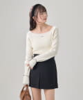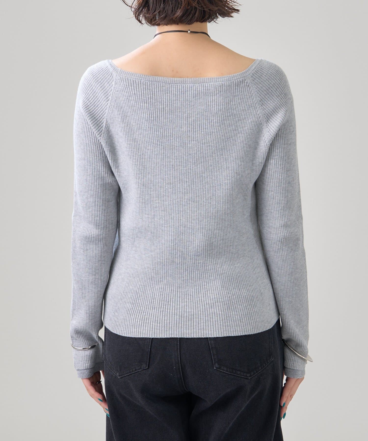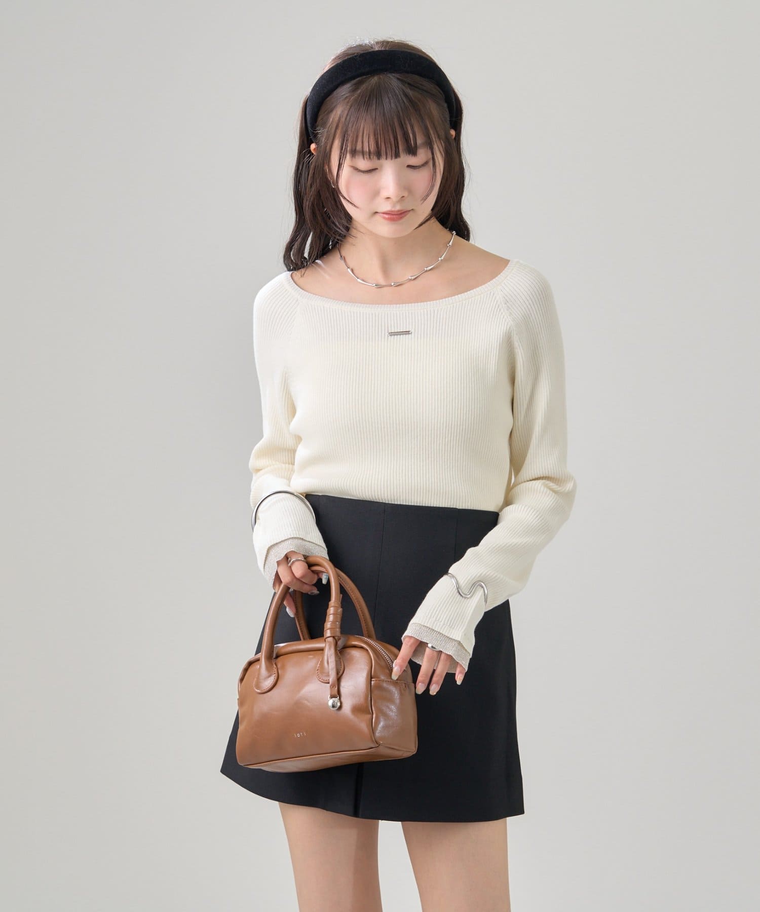 【インナー使いに最適!4色展開◎】プレート付きクルーリブニット
