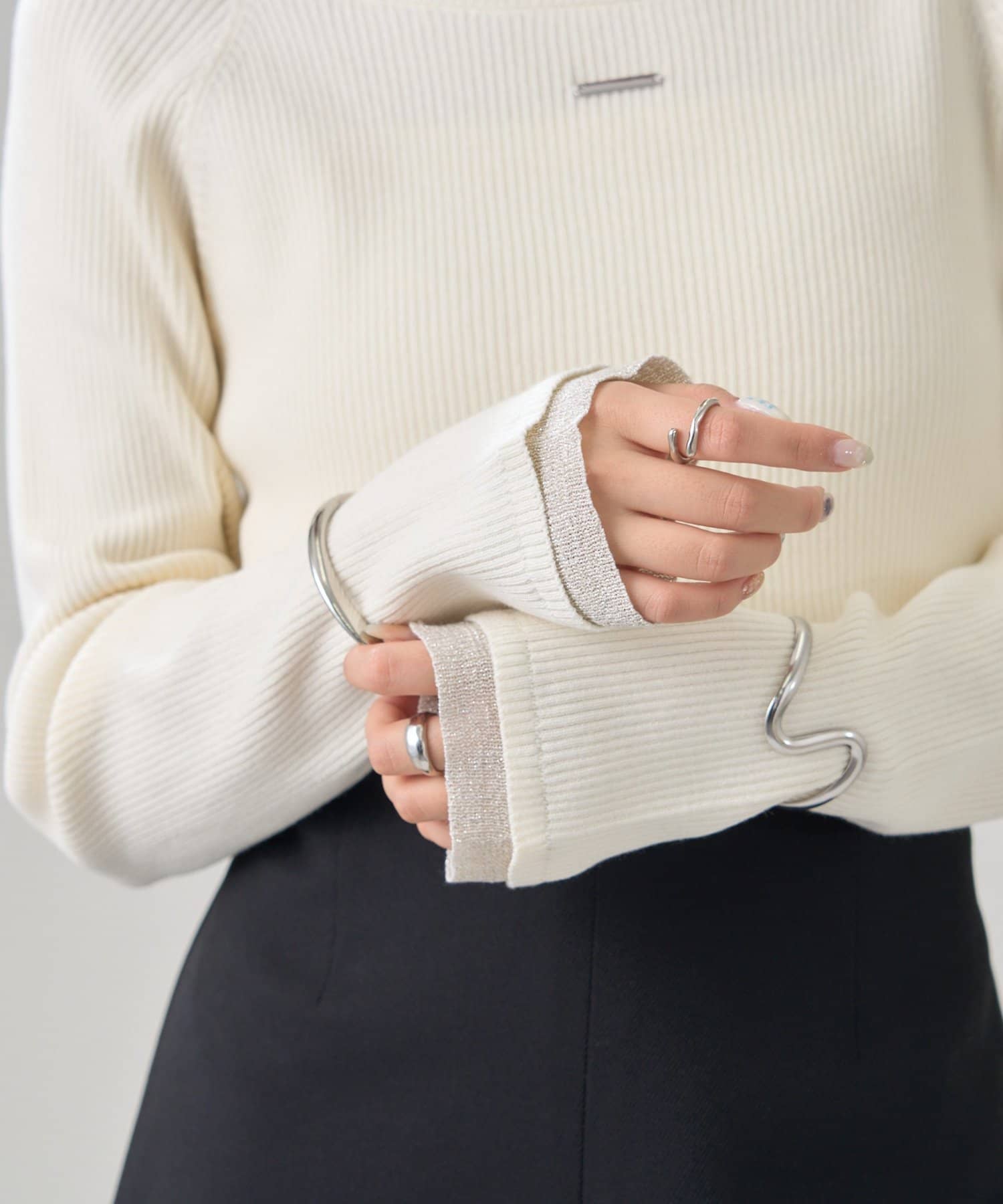 細リブに長めの袖が華奢に見せてくれるトップスです!