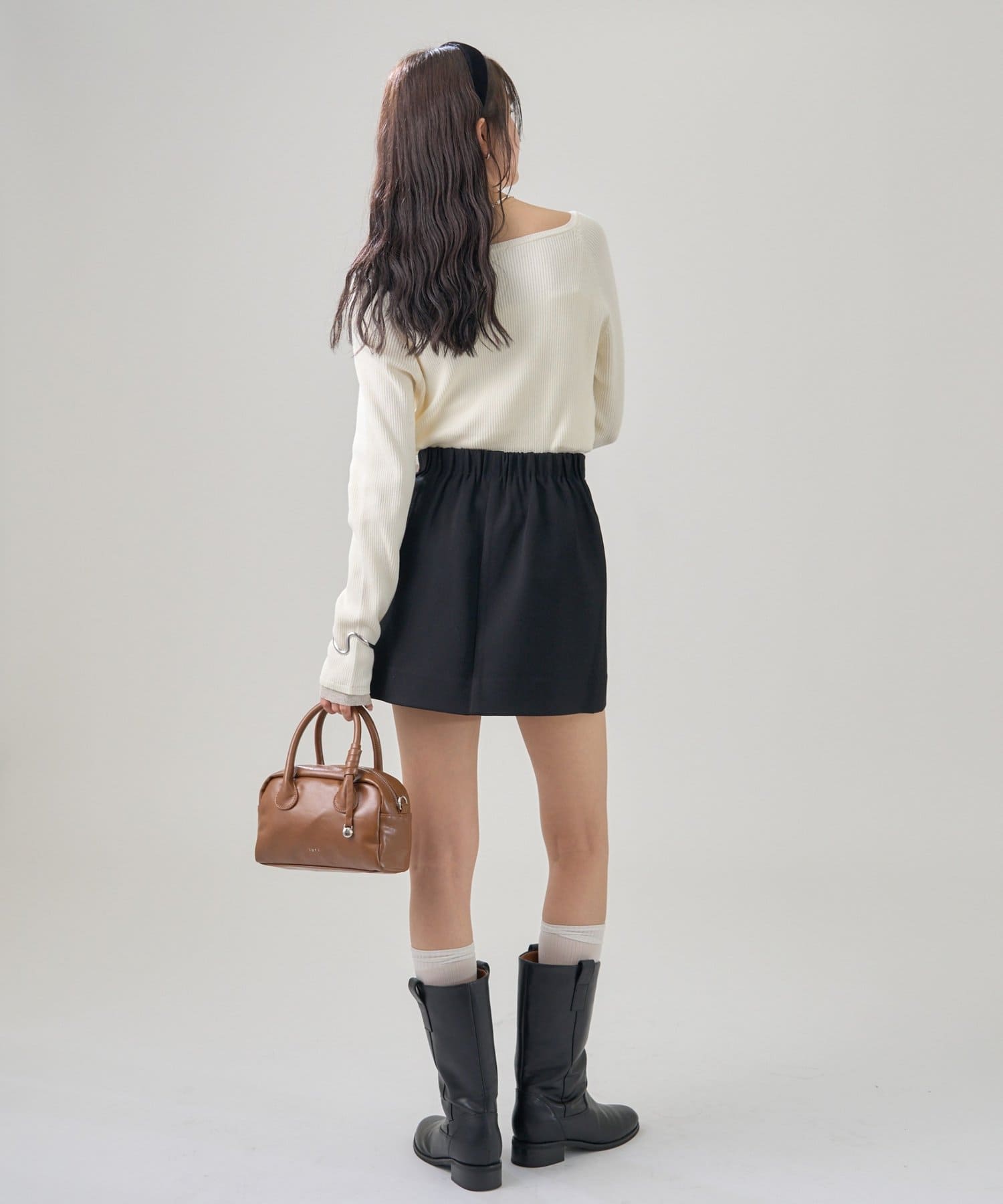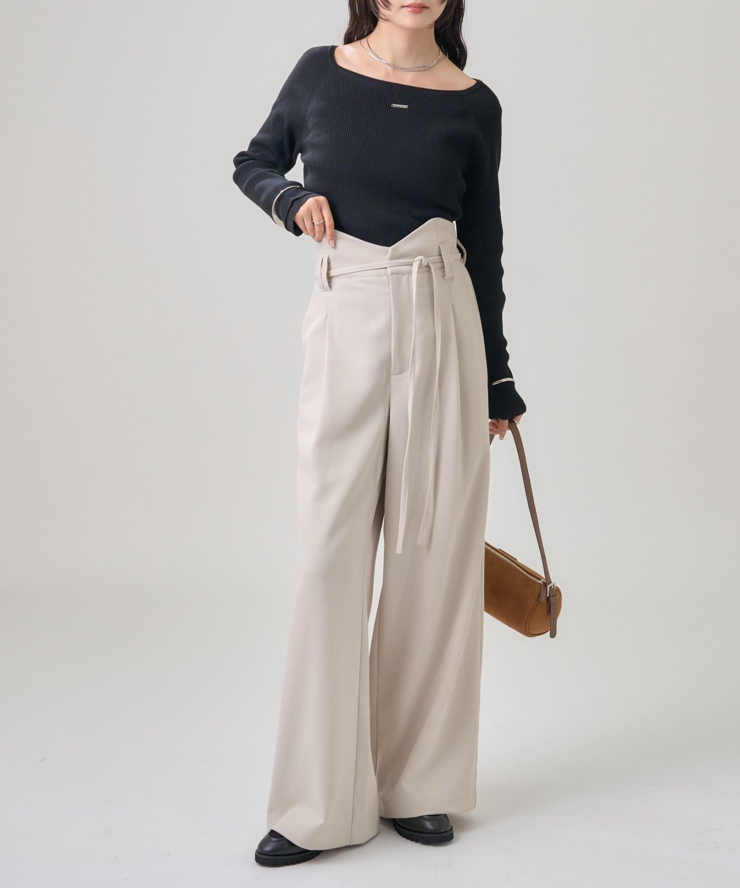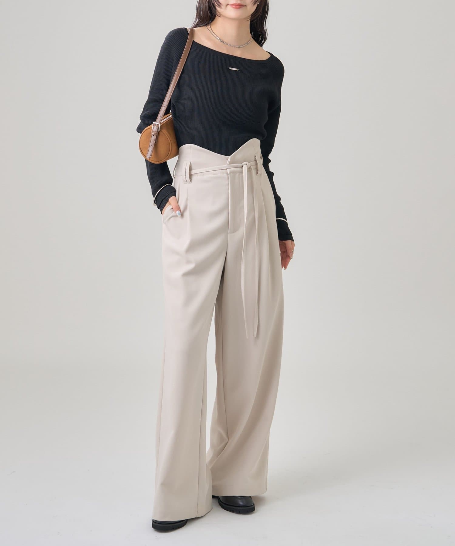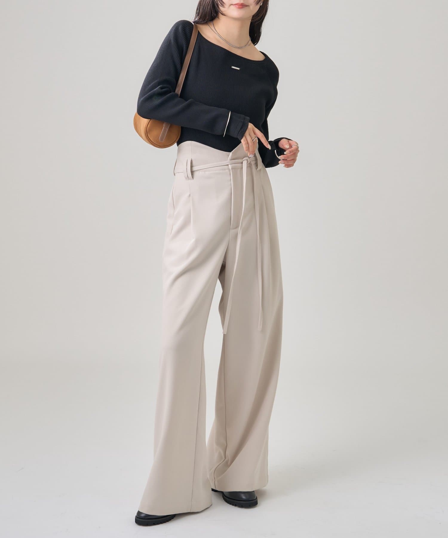 ハイウエストのボトムスと合わせると腰位置が高く見えてスタイル良く着られます。