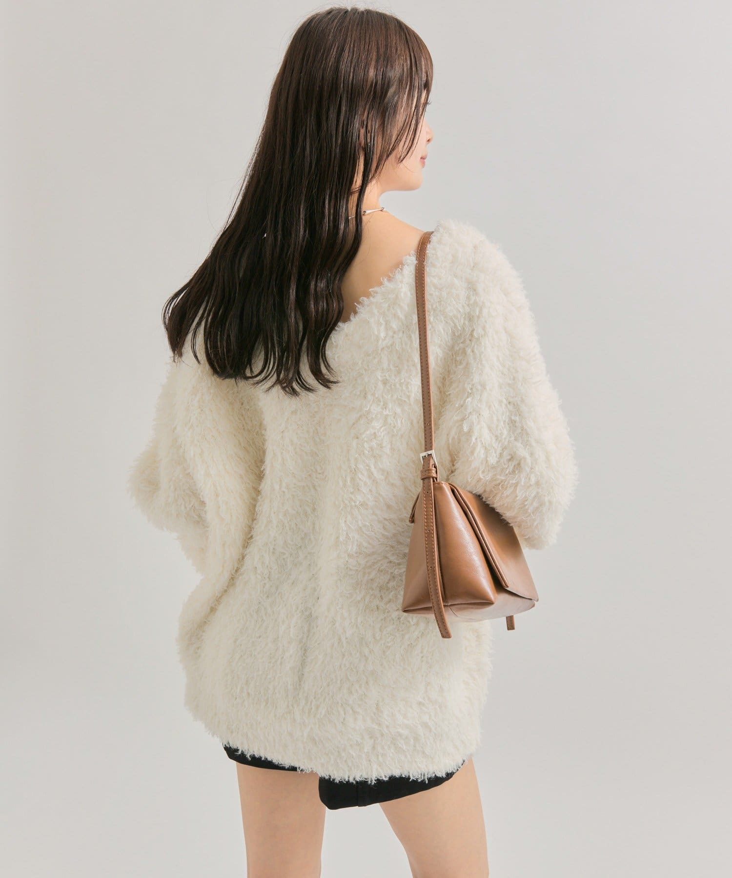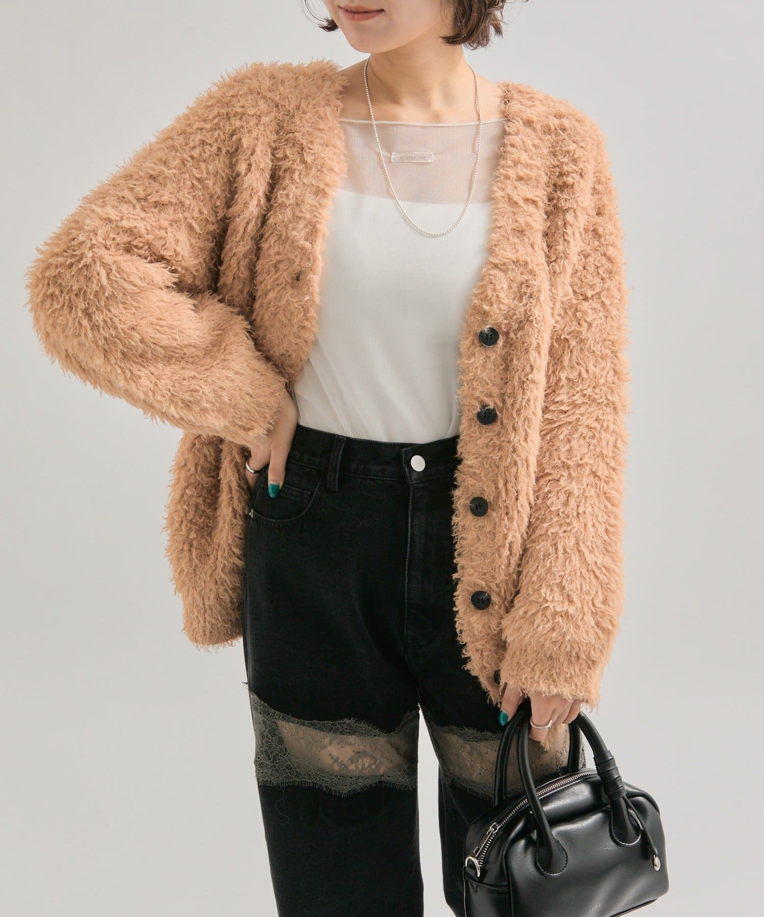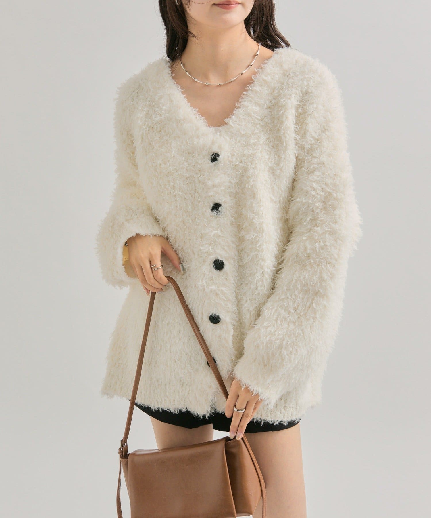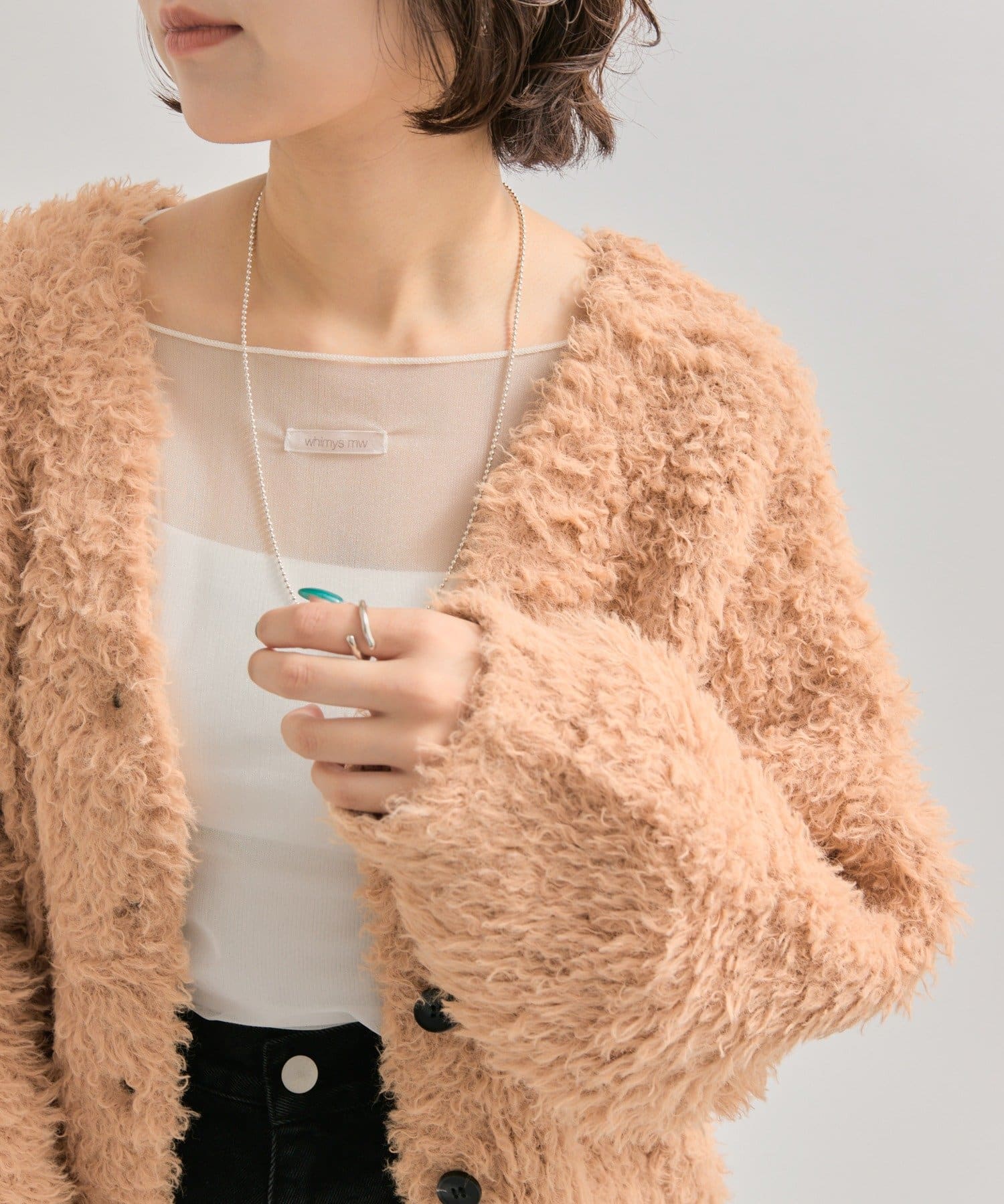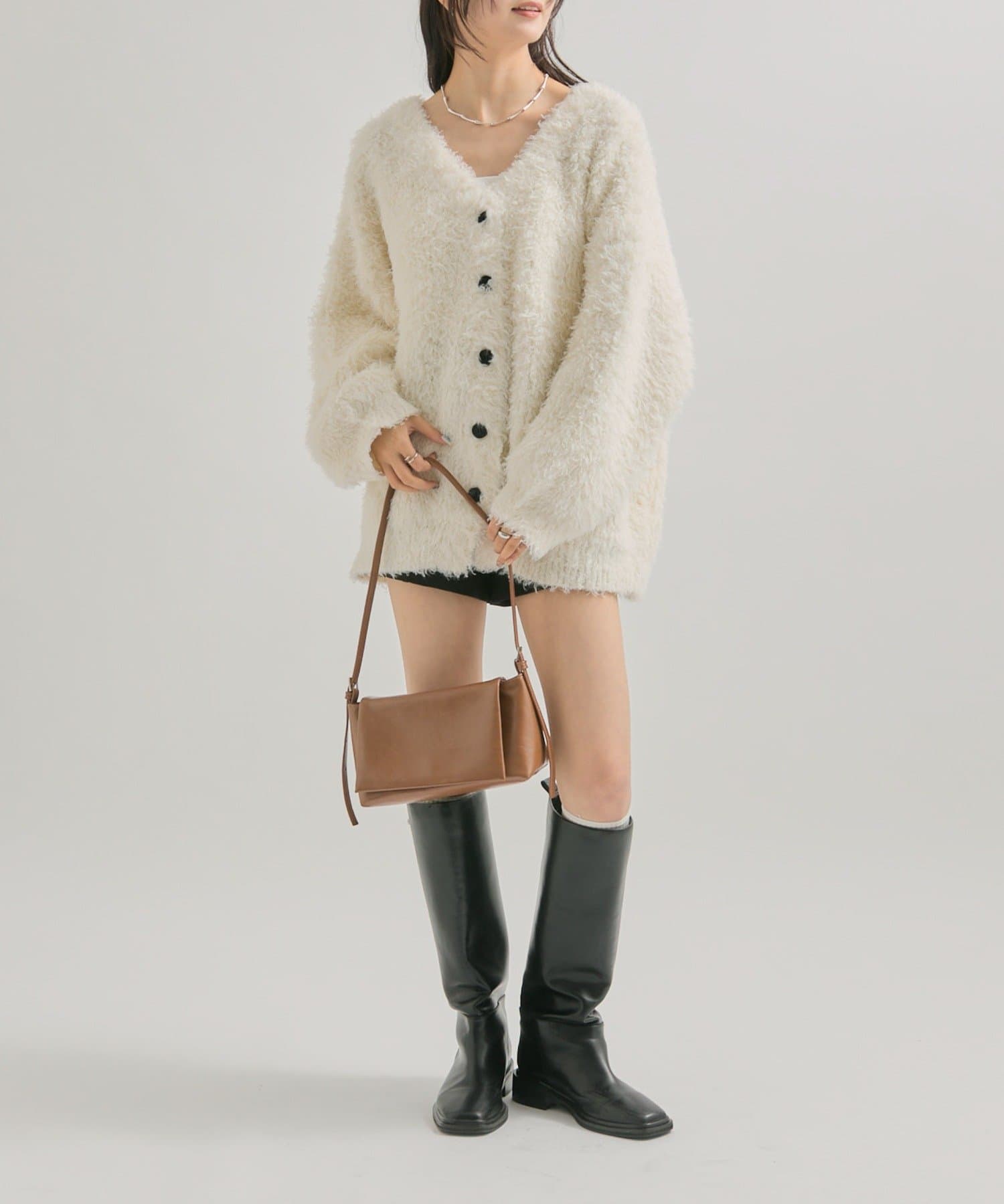 ・広めのV ネックデザインなのでキャミソールに羽織ったりハイネックのトップスと合わせるのもおすすめです◎