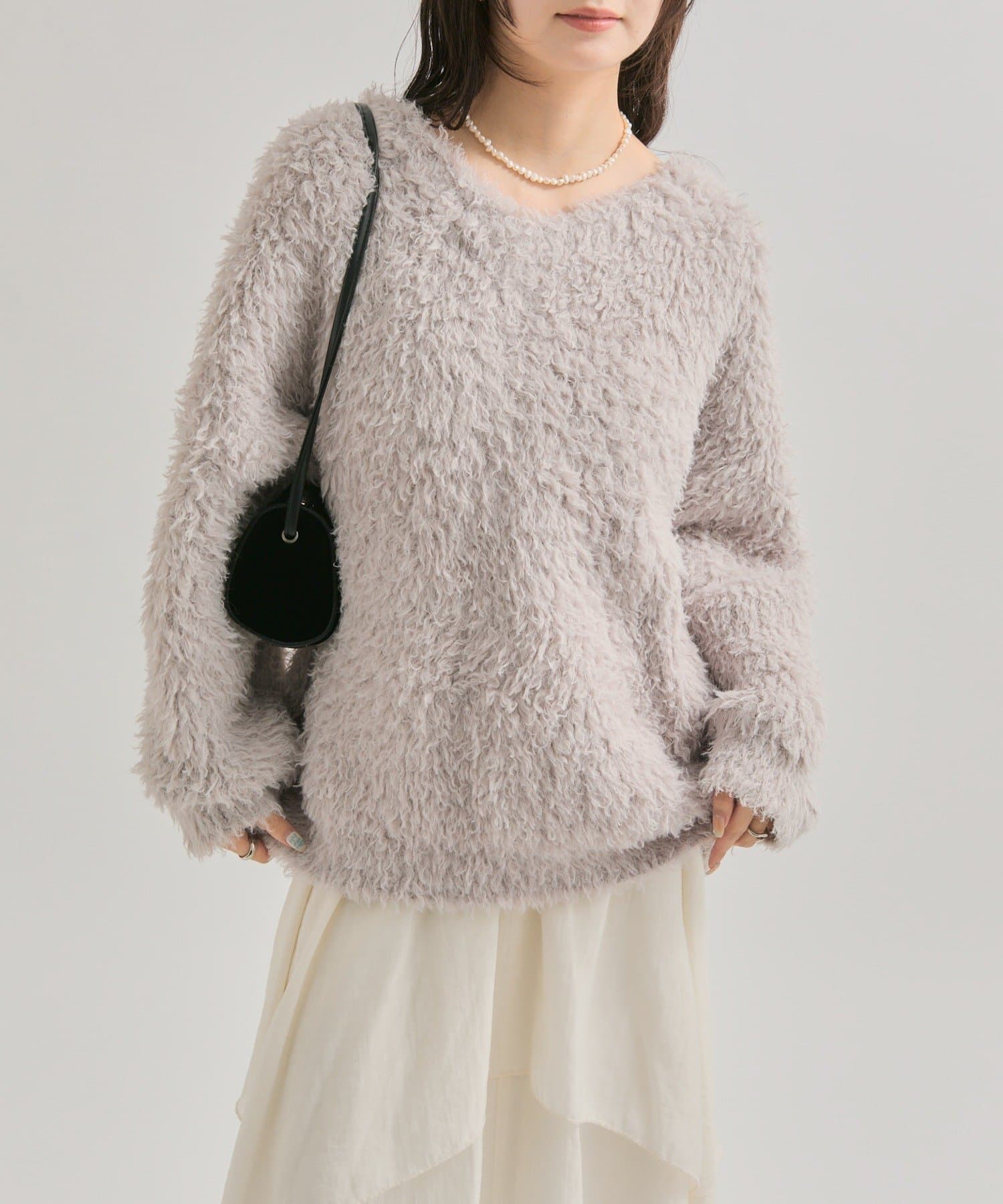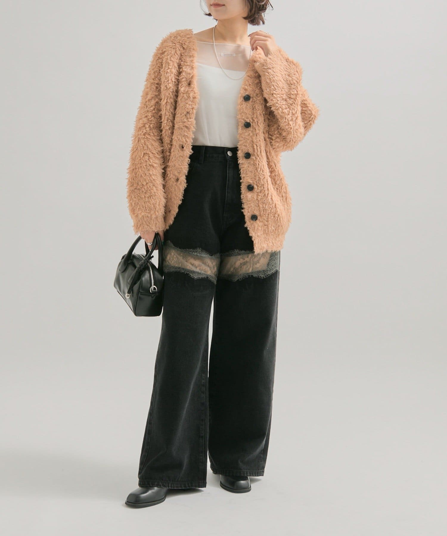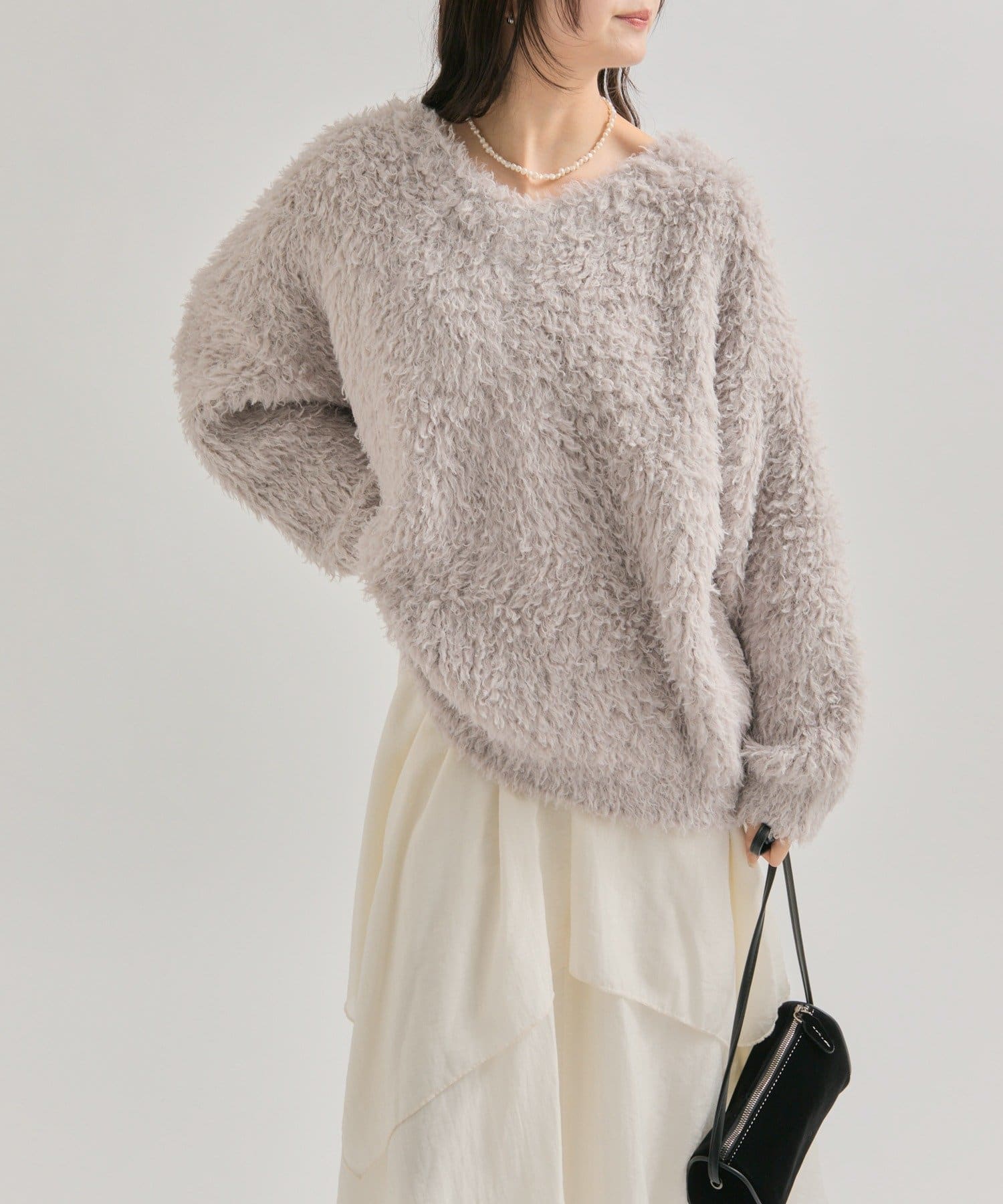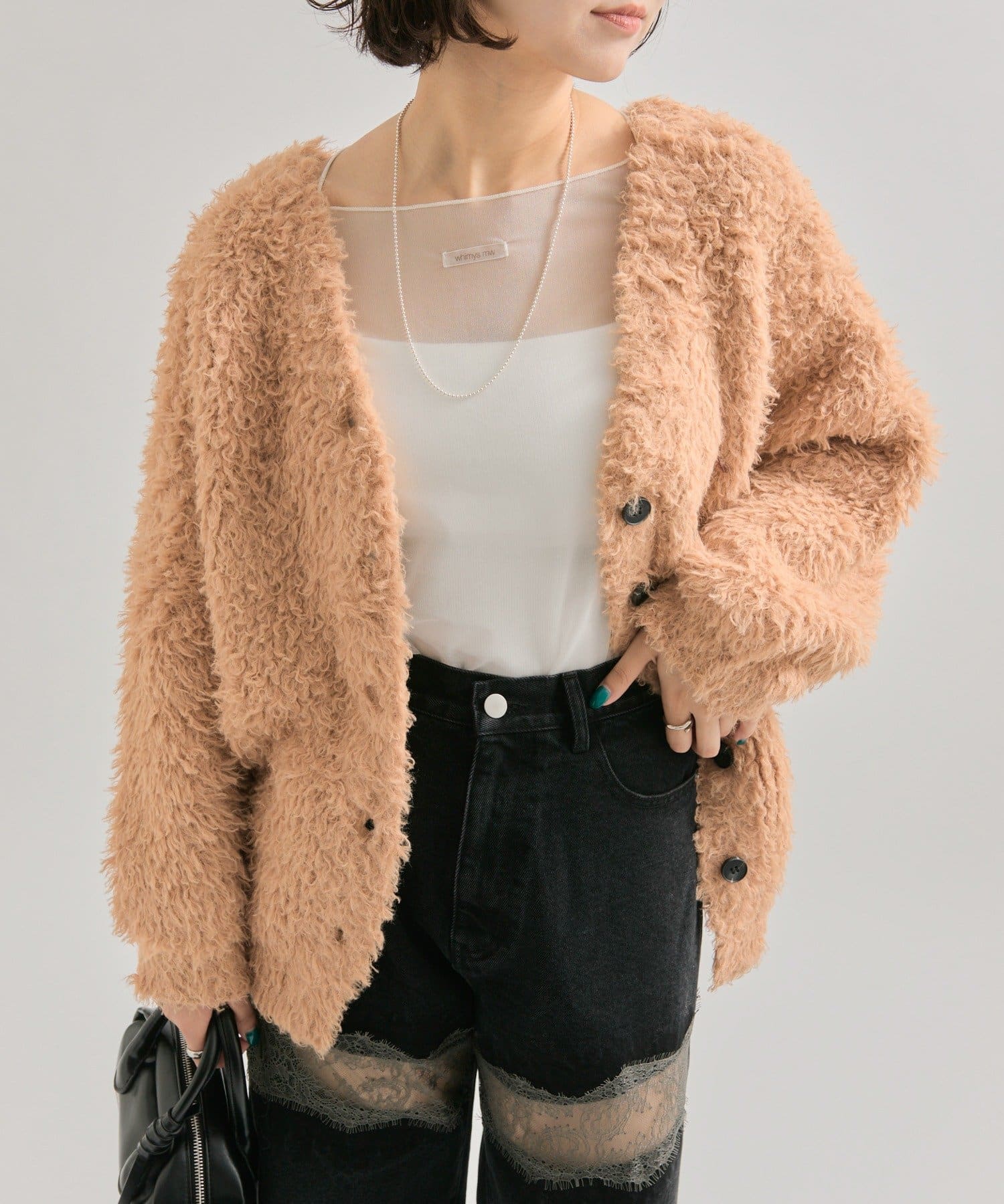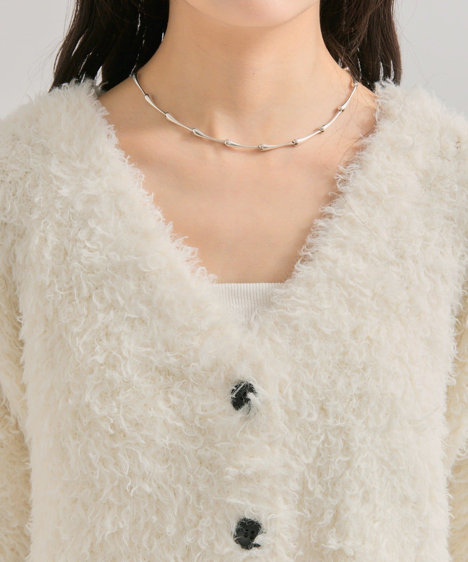 ・広めのV ネックデザインなのでキャミソールに羽織ったりハイネックのトップスと合わせるのもおすすめです◎