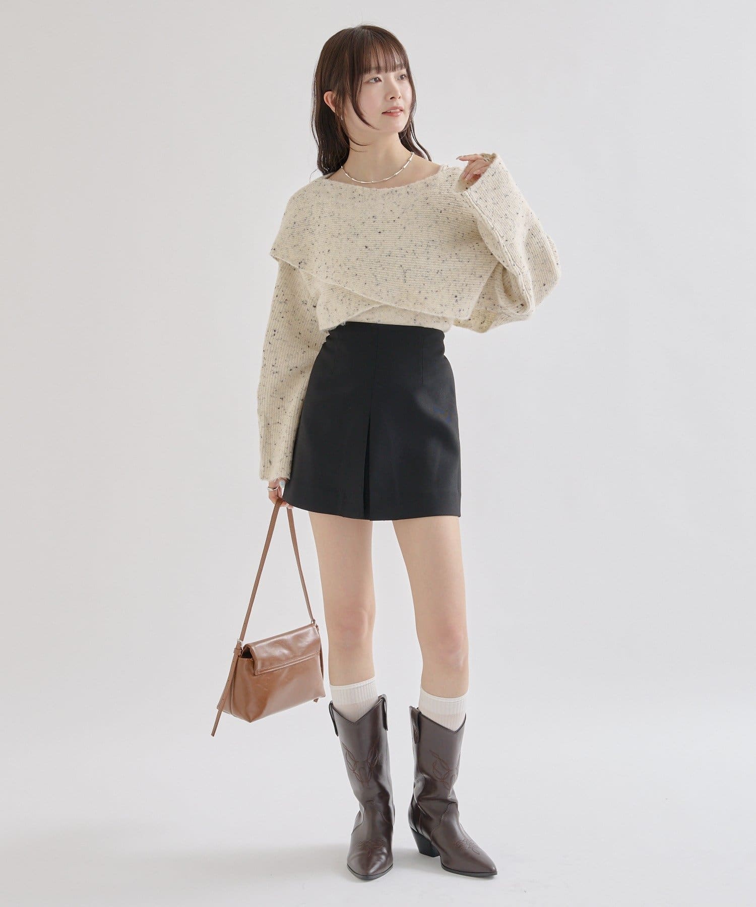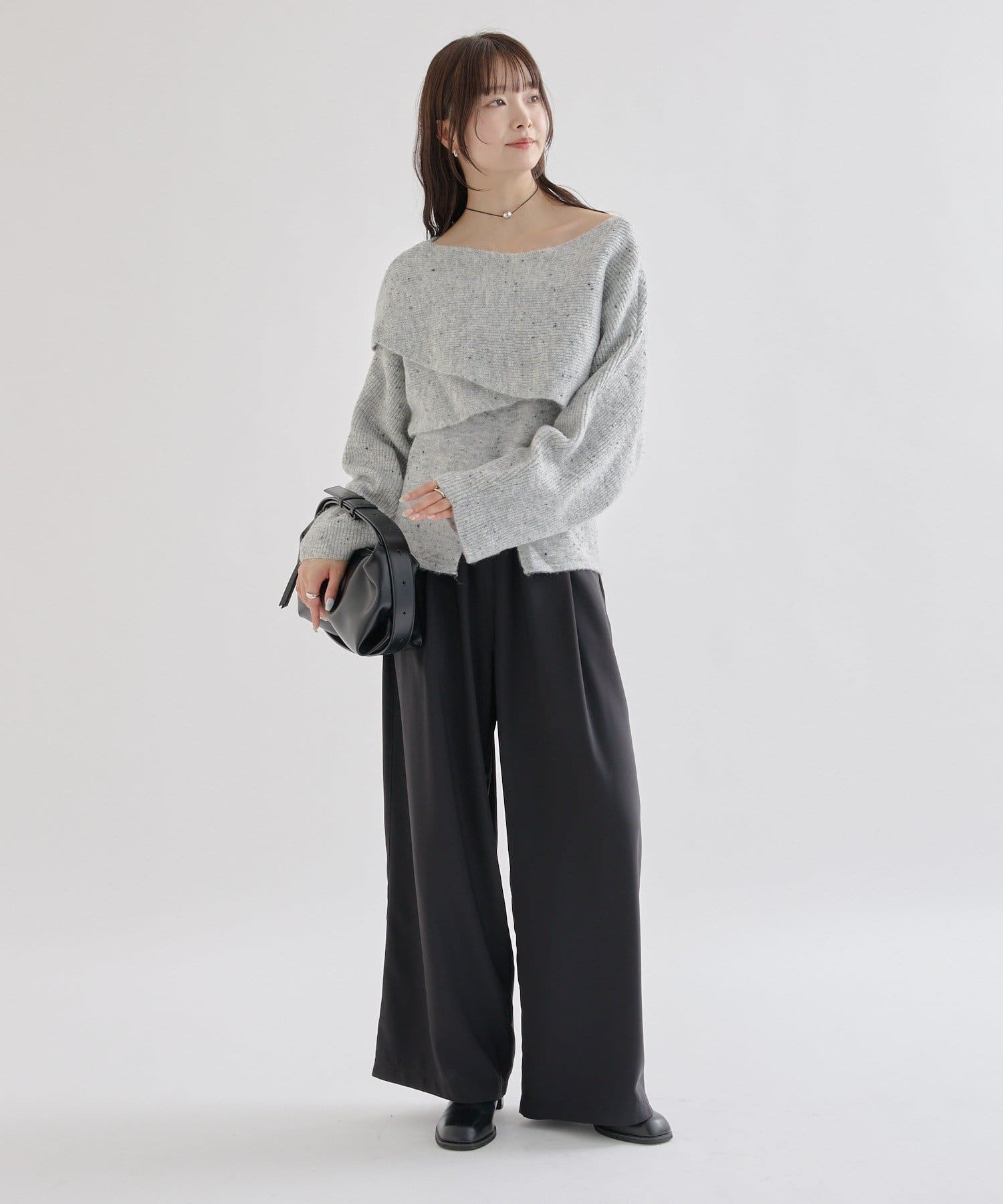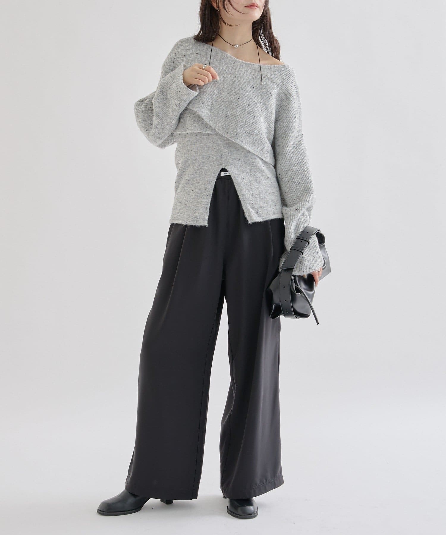 クロスデザインはスタイルアップ効果もあるので、ワイドパンツやスカートとの相性も抜群です!