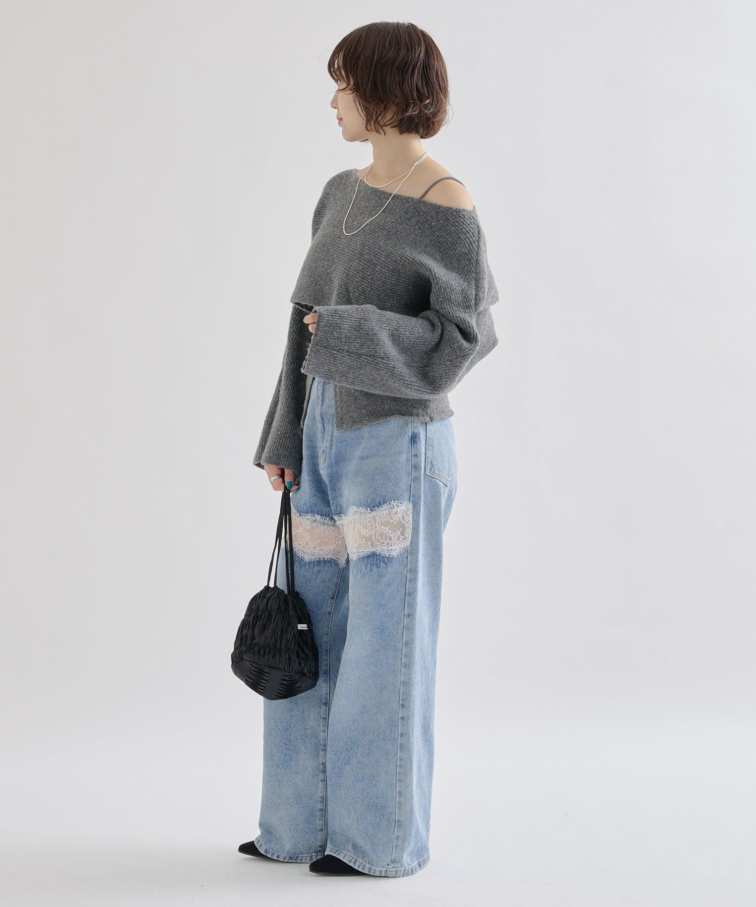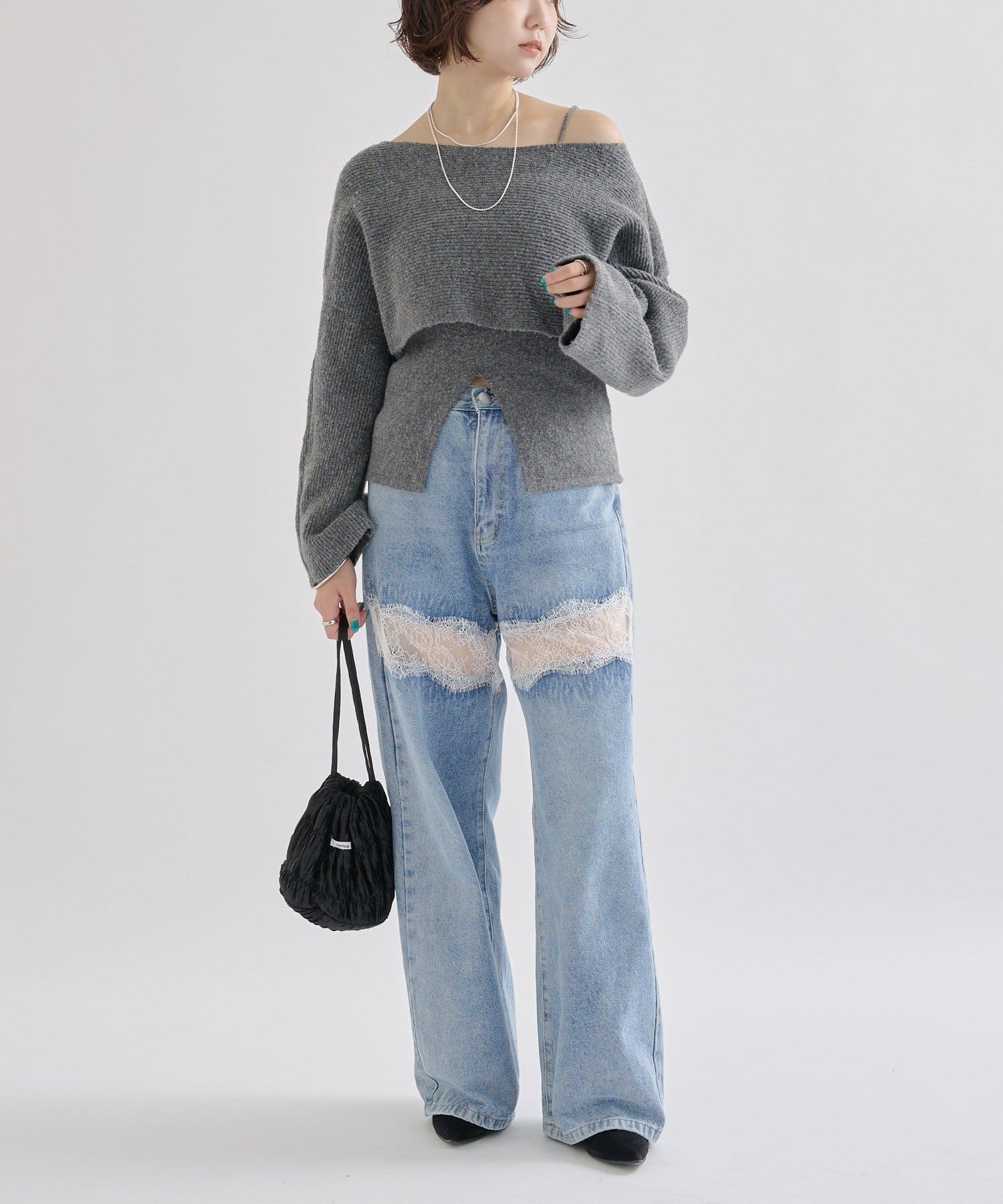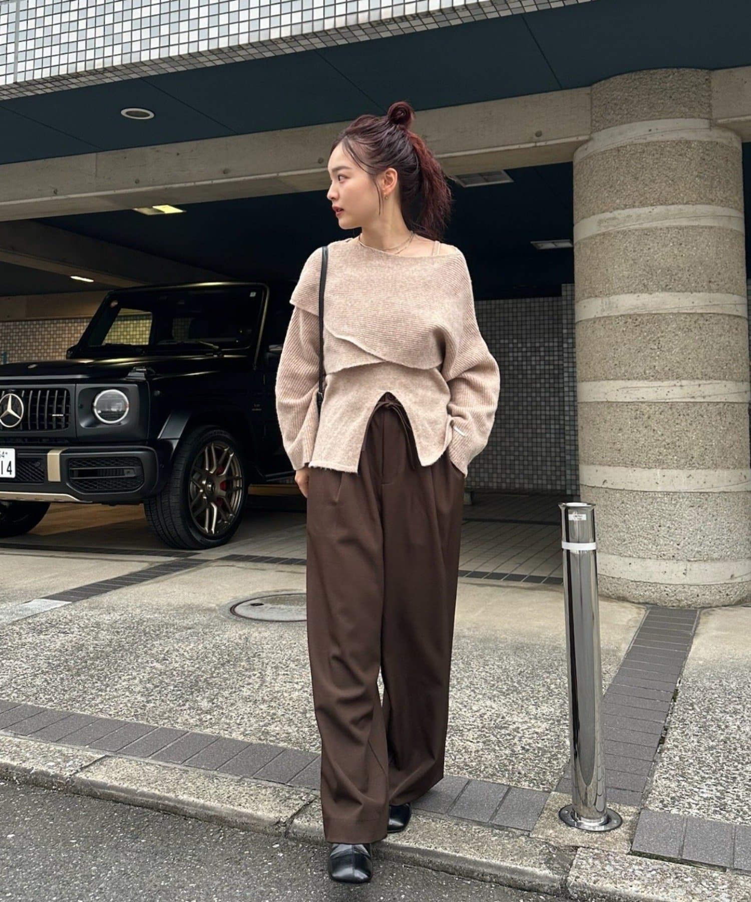 クロスデザインはスタイルアップ効果もあるので、ワイドパンツやスカートとの相性も抜群です!