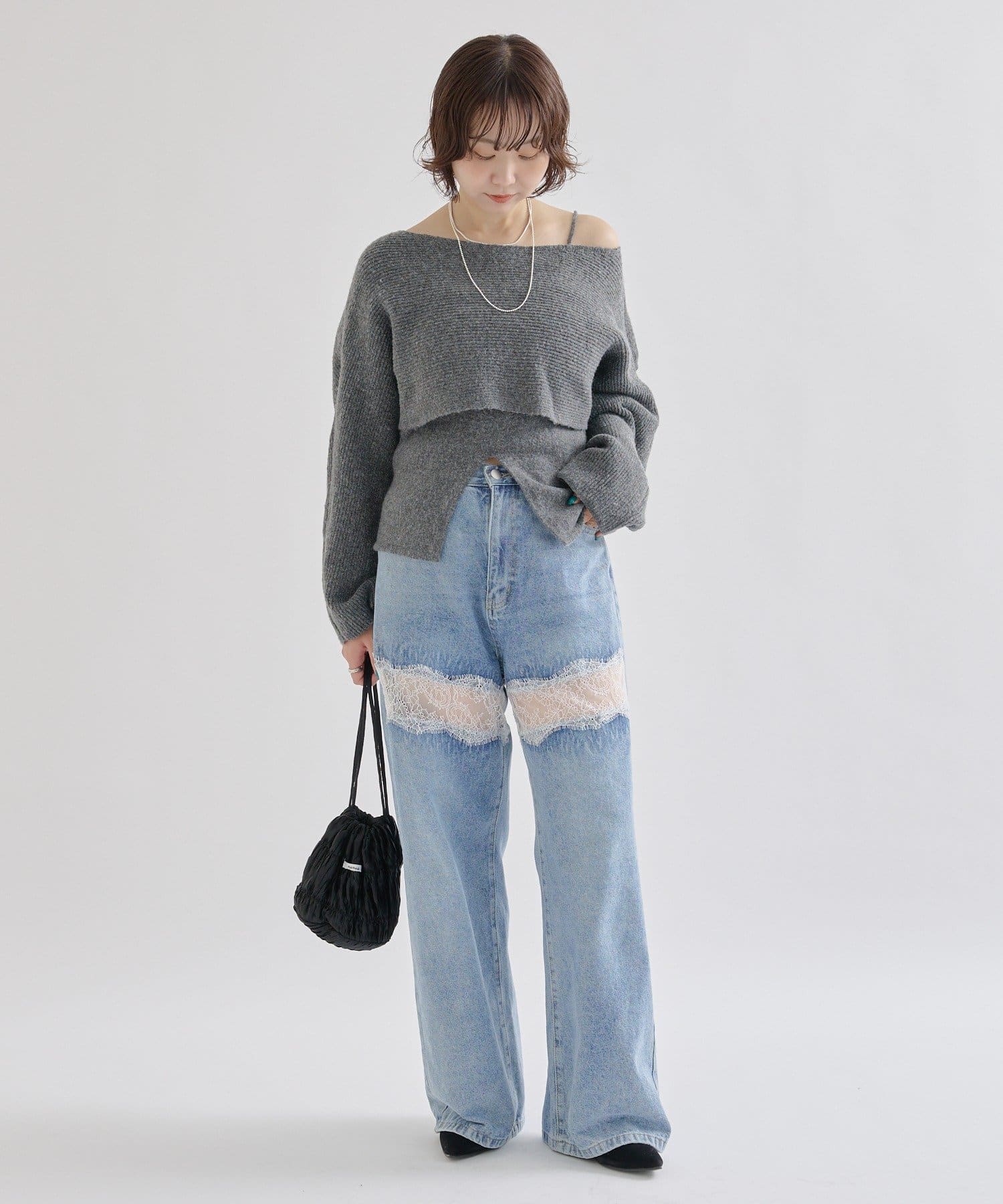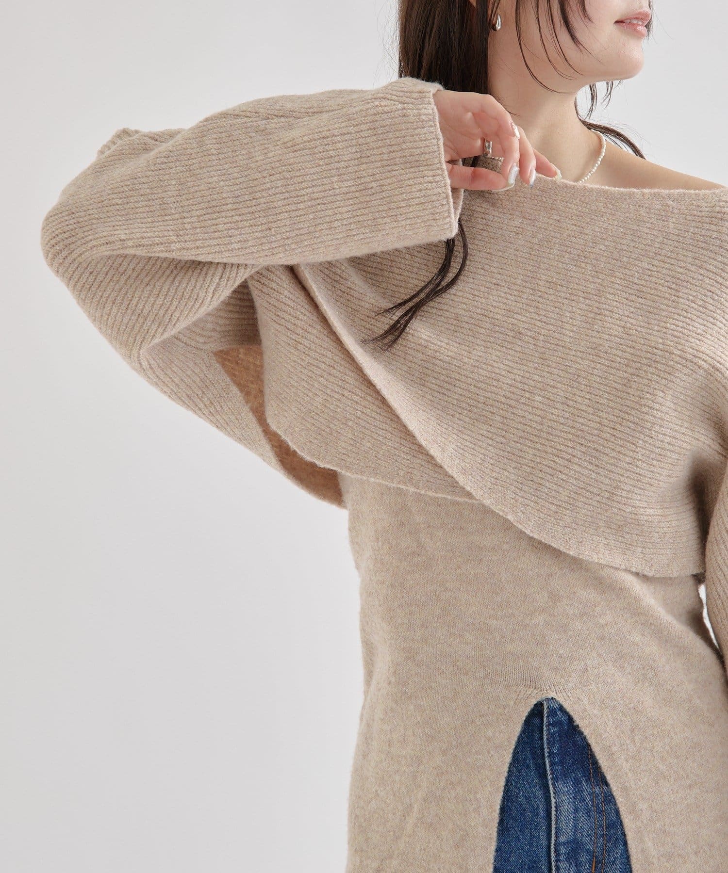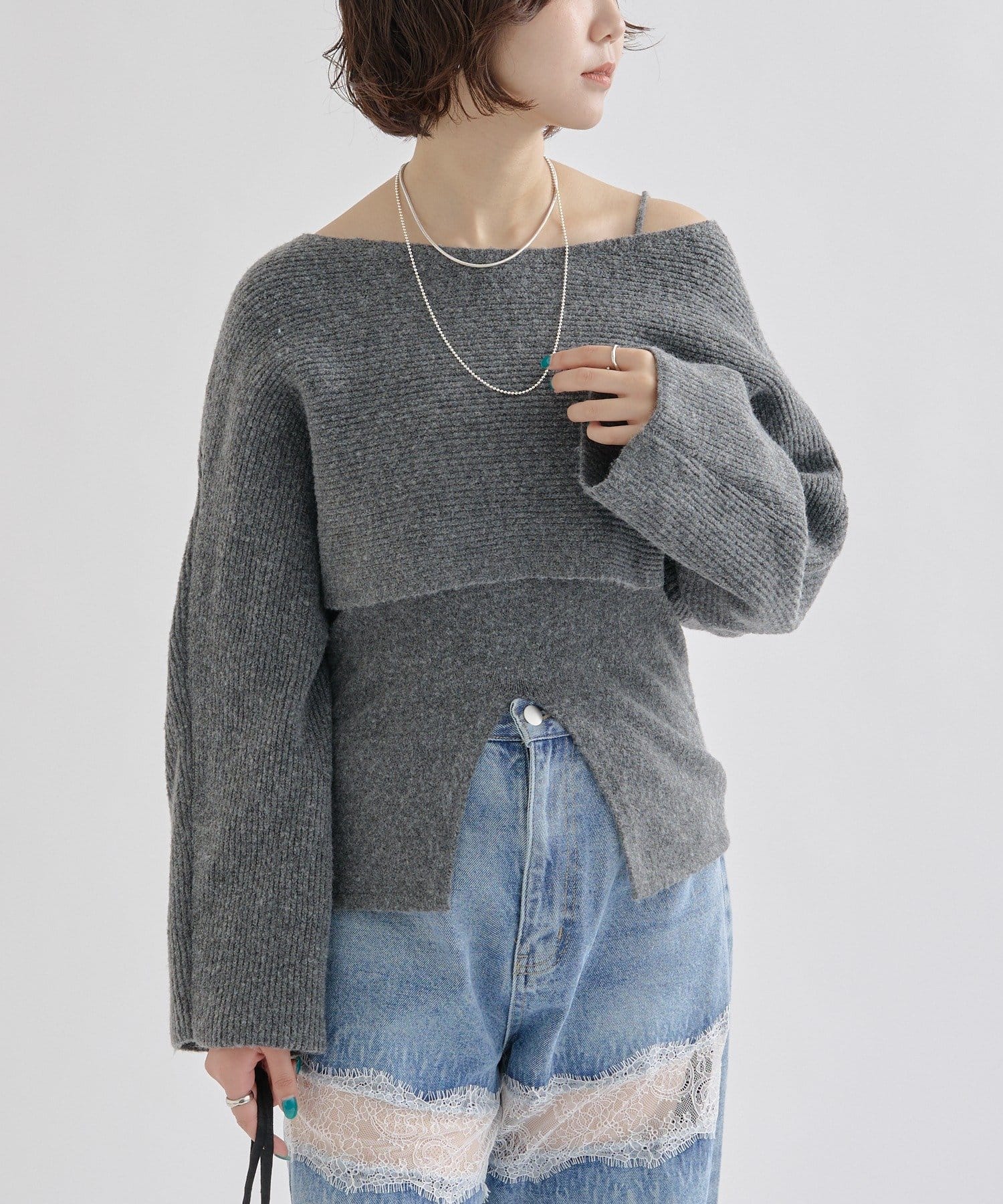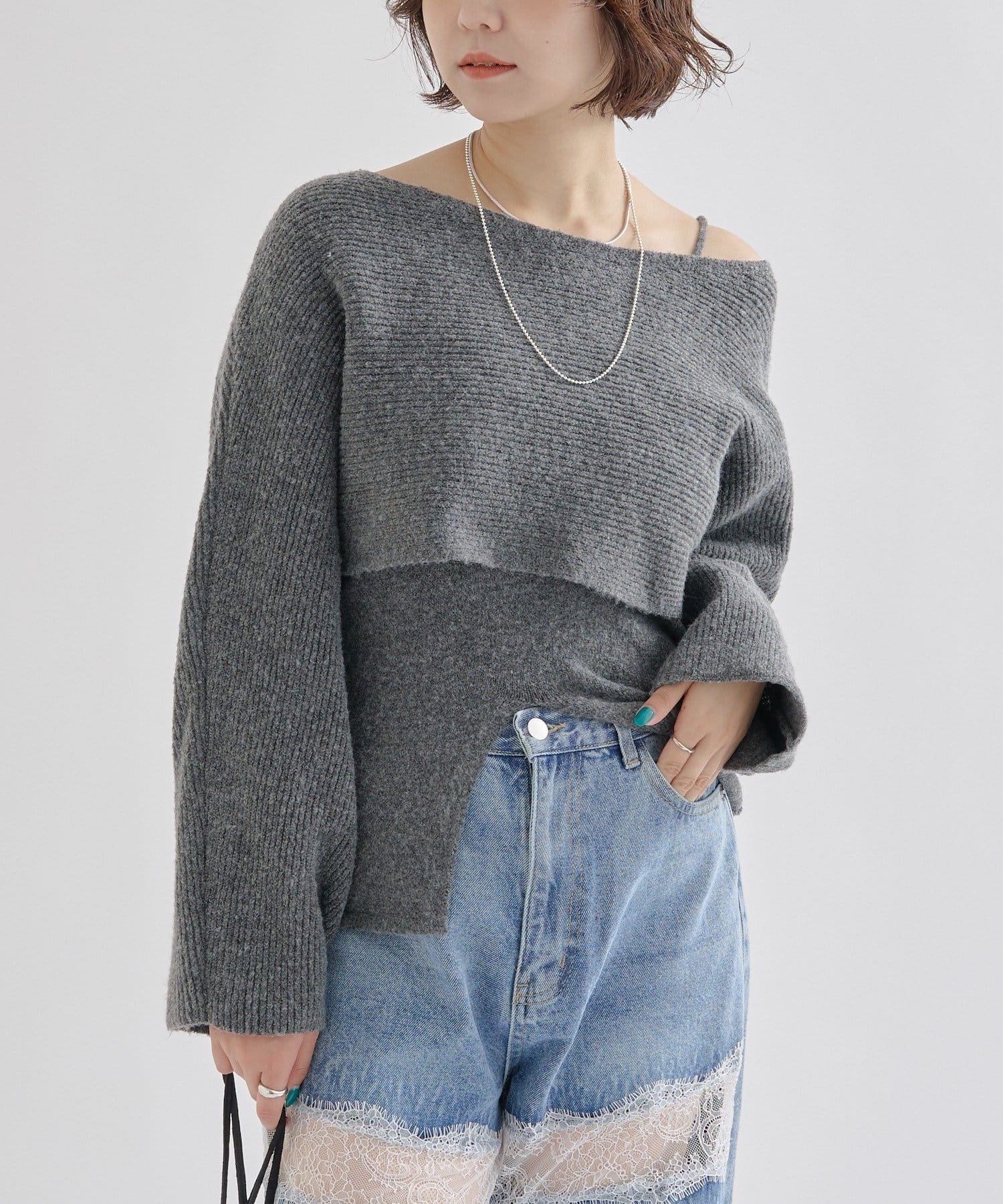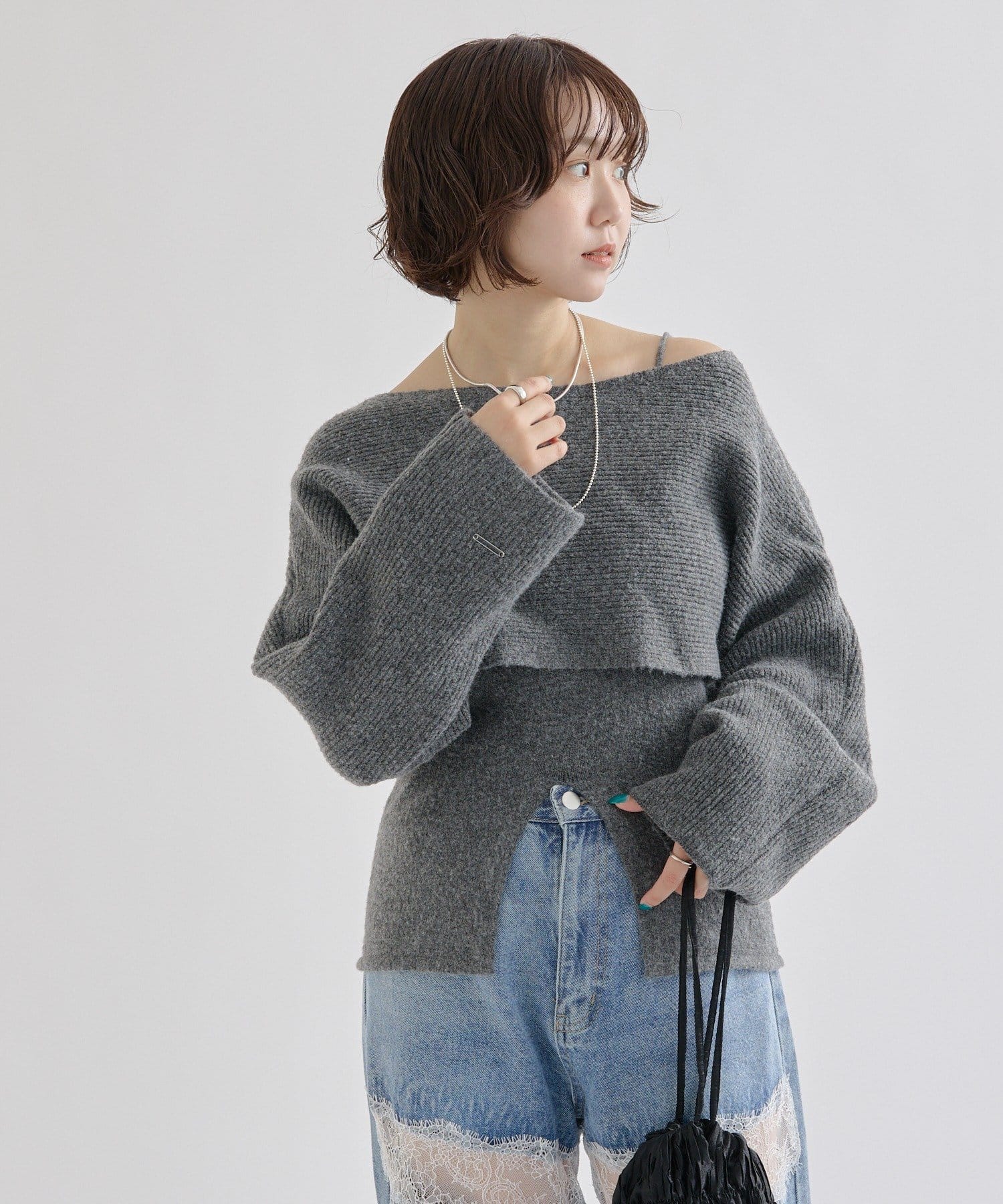 ・キャミソールとニットがセットになったこなれ感あるトップス。