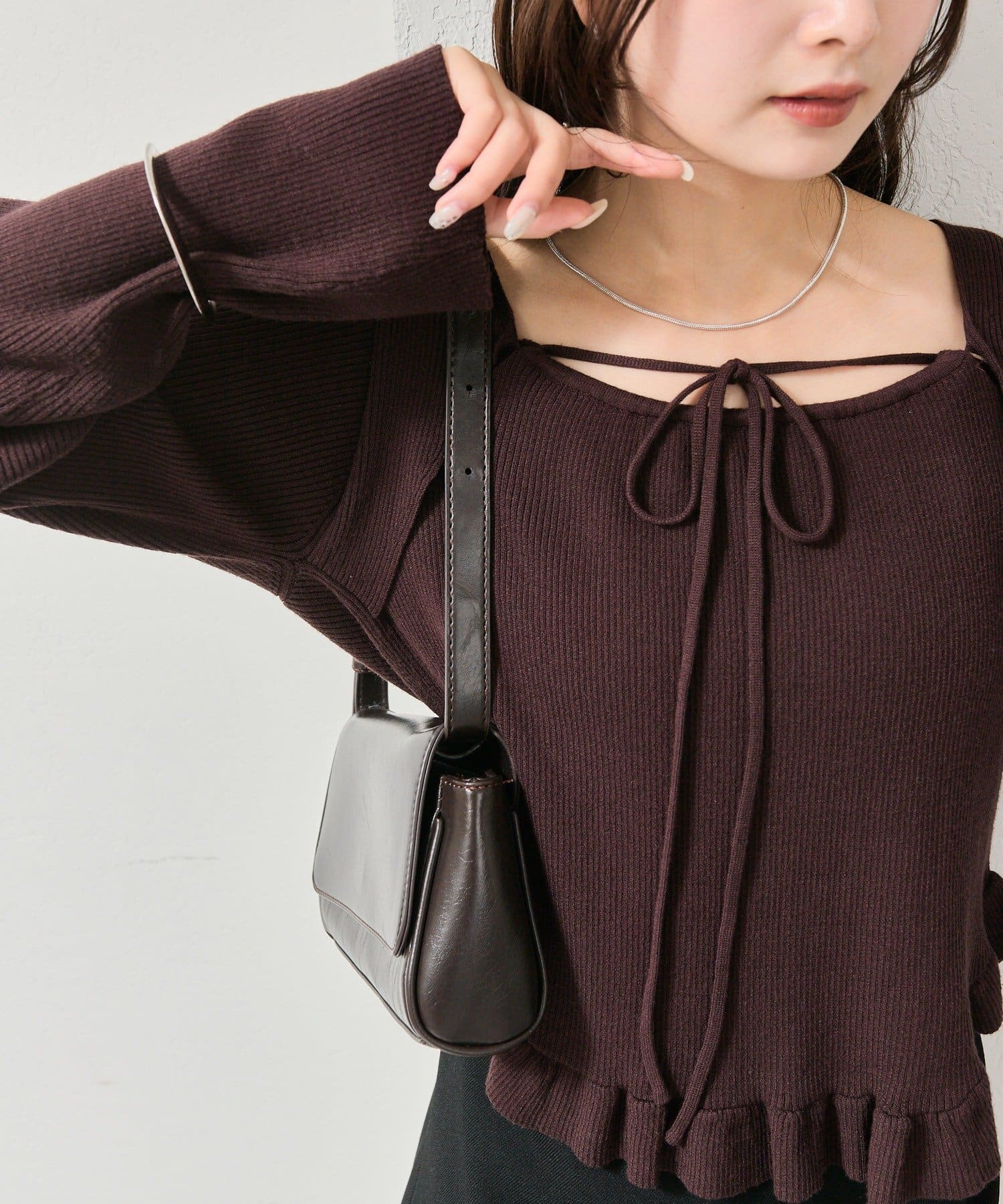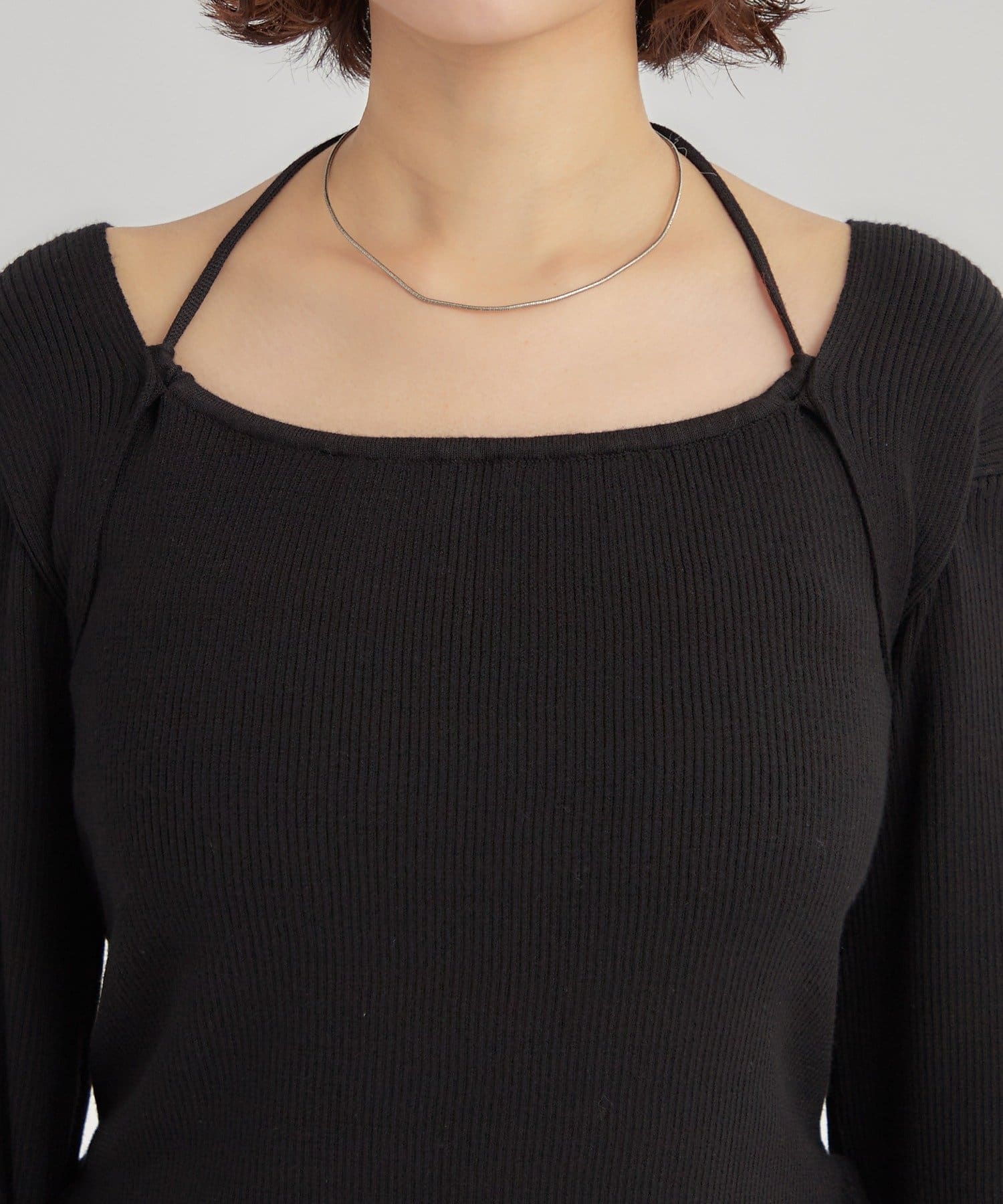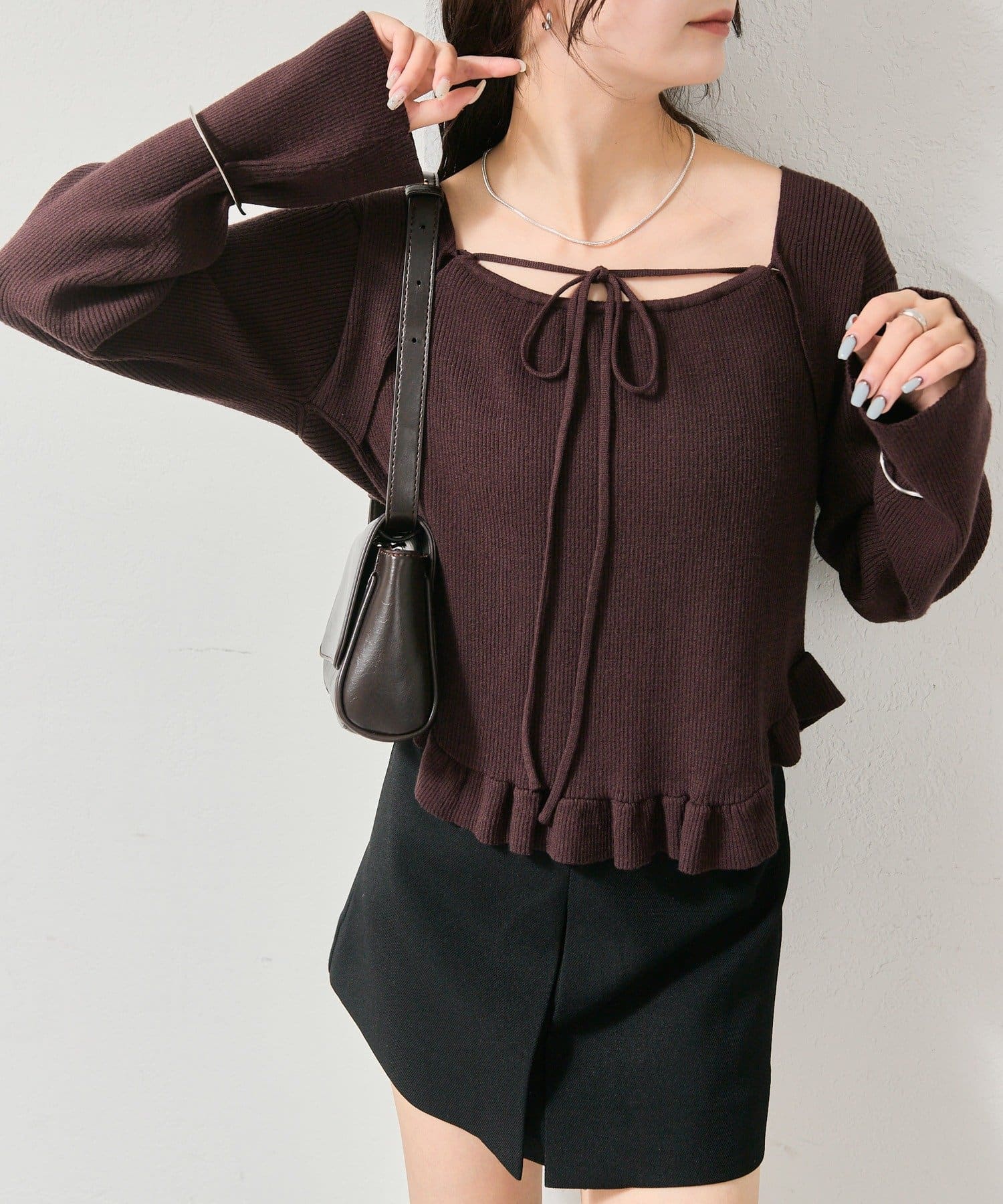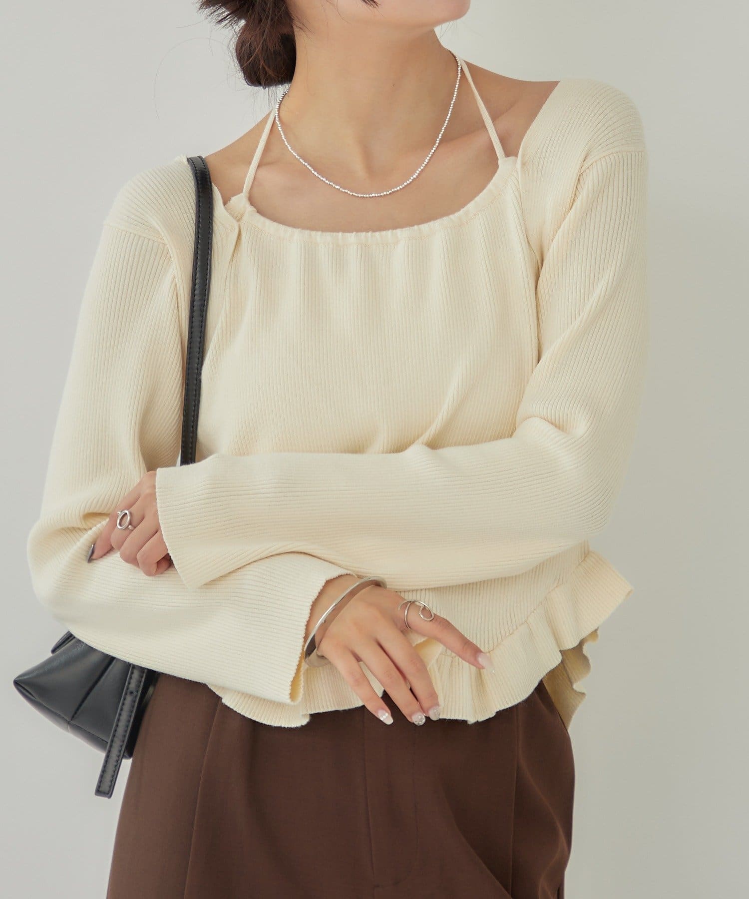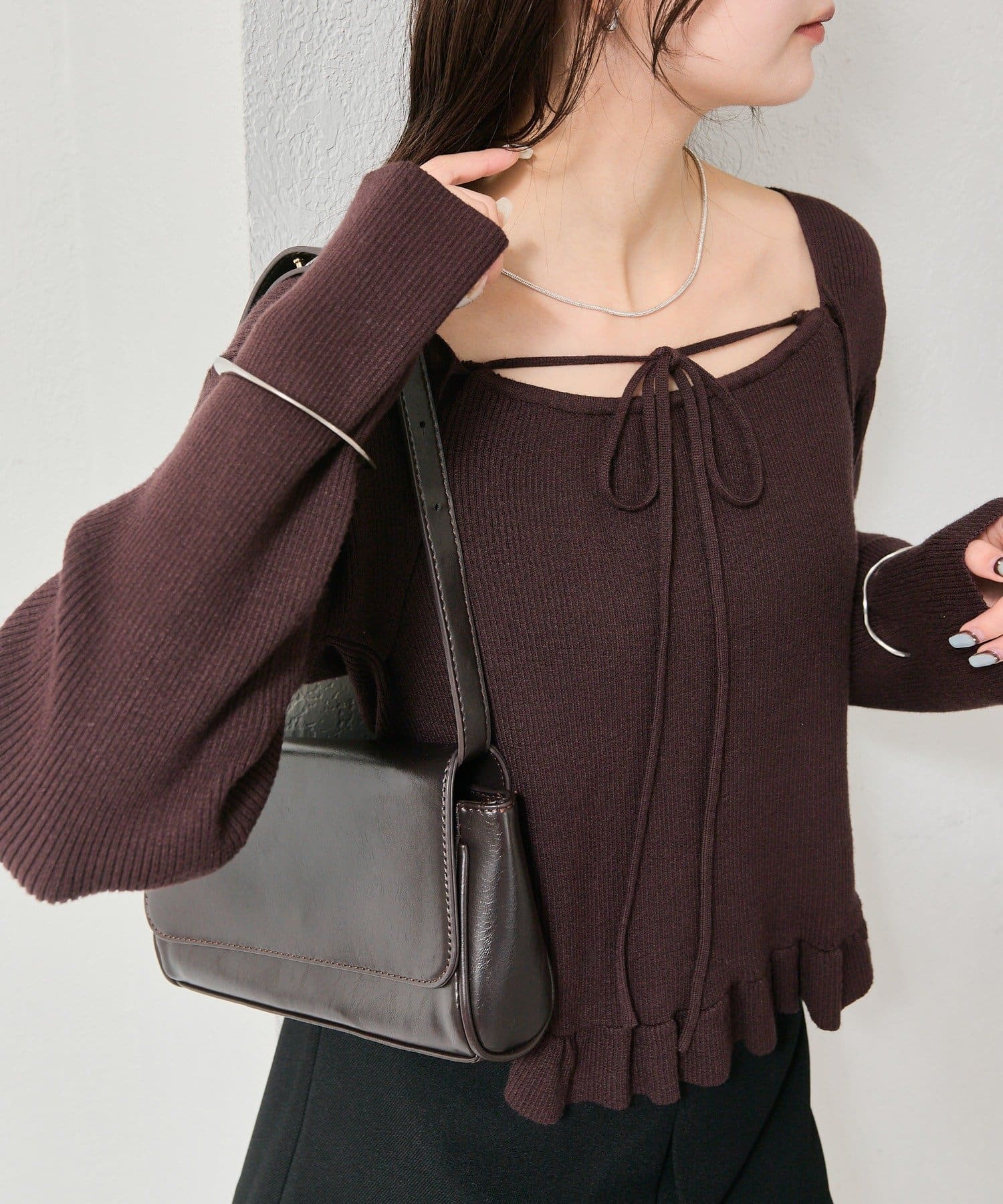 ・一枚でレイヤード風の着こなしが楽しめるデザインニット。