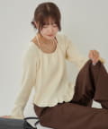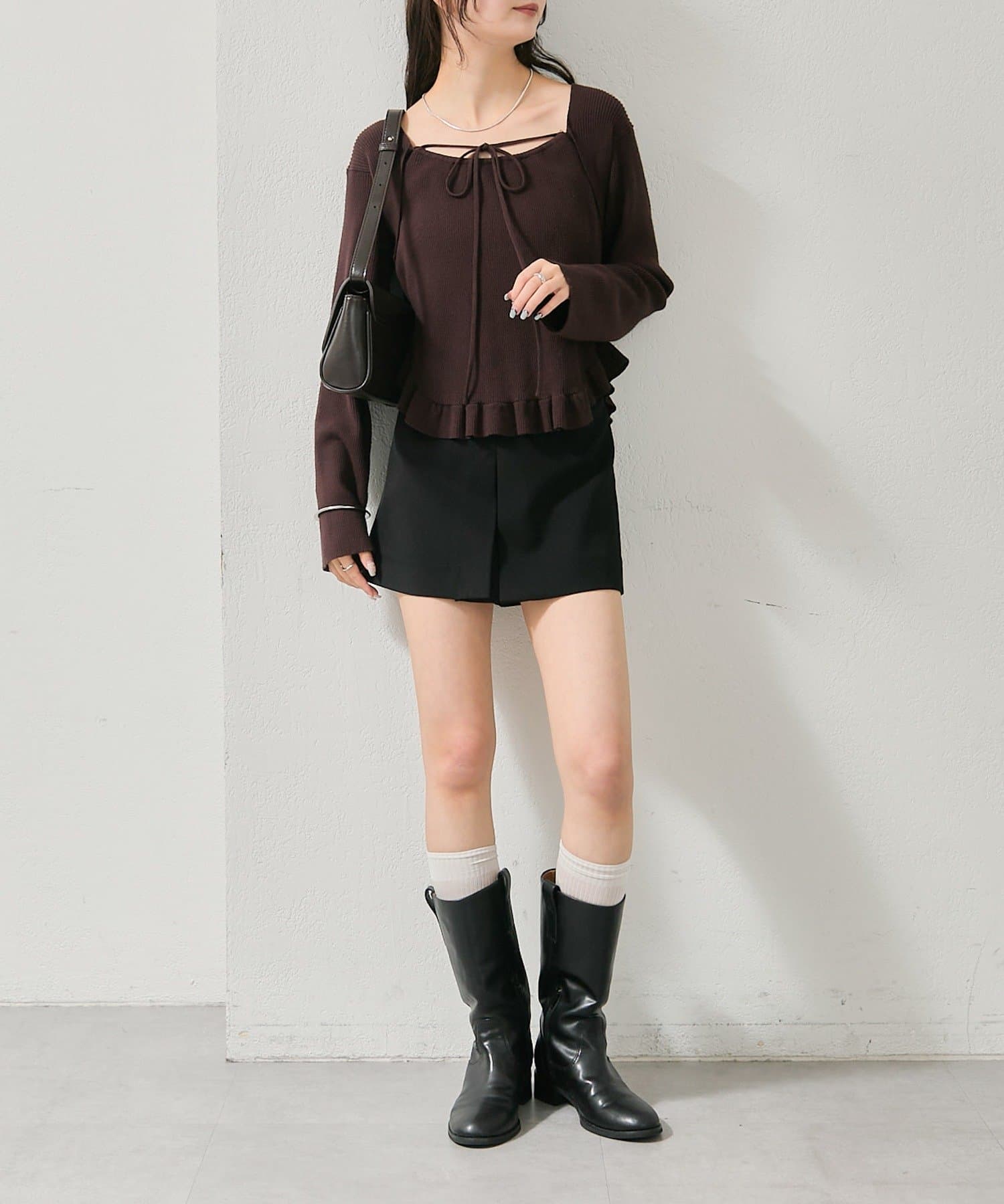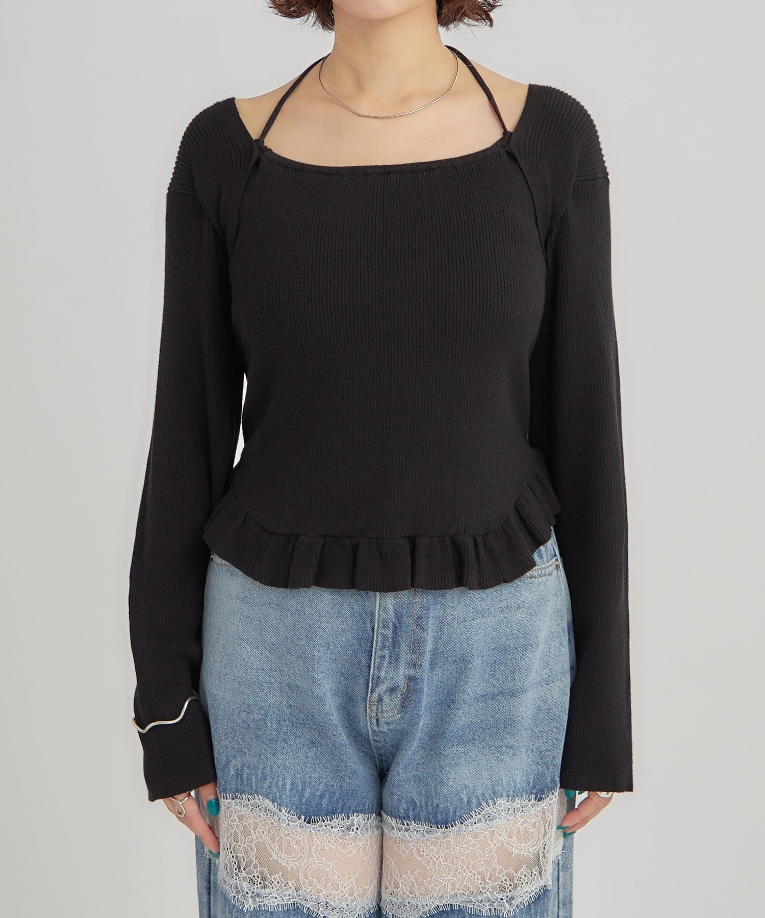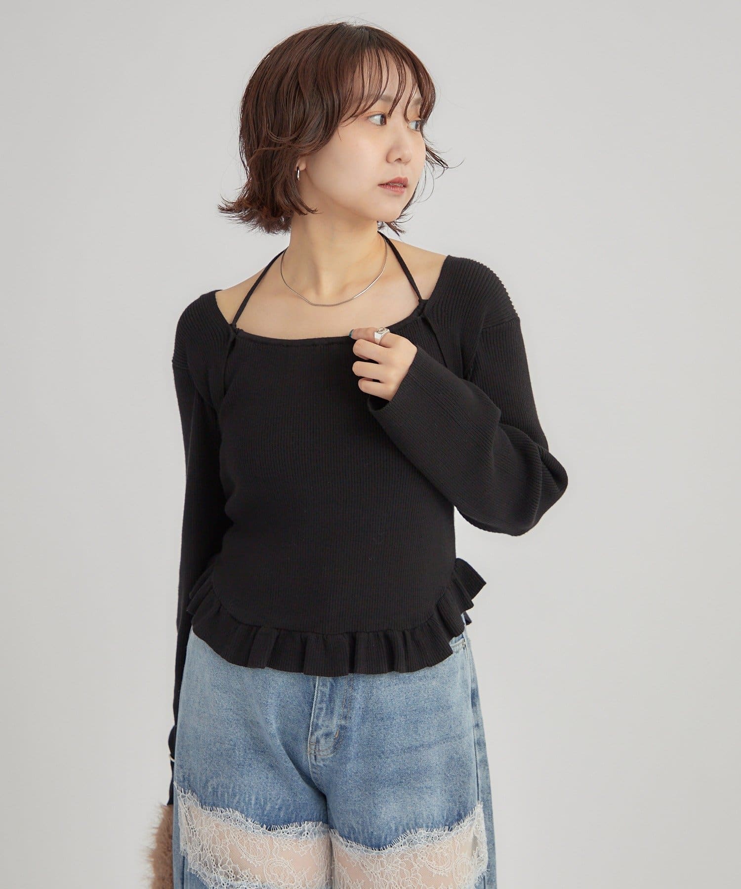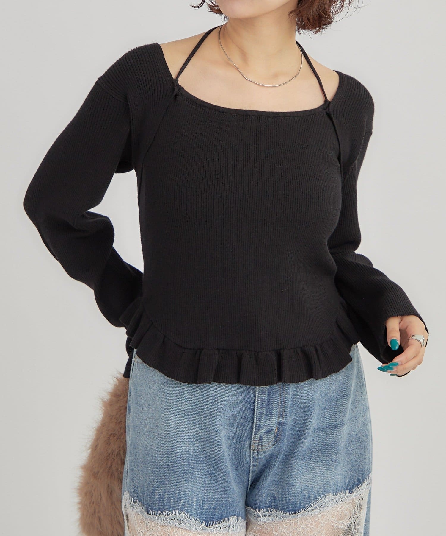 ・一枚でレイヤード風の着こなしが楽しめるデザインニット。