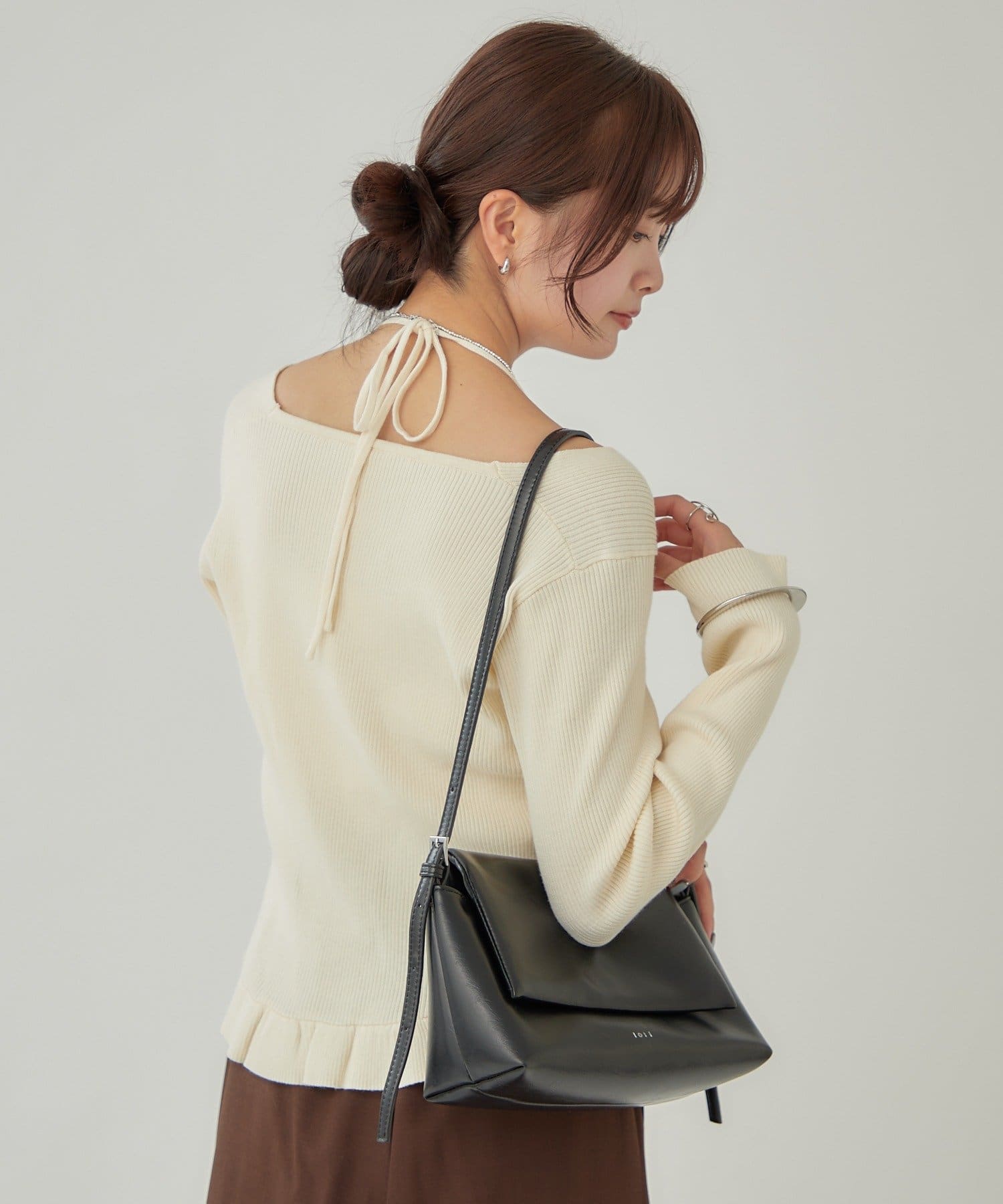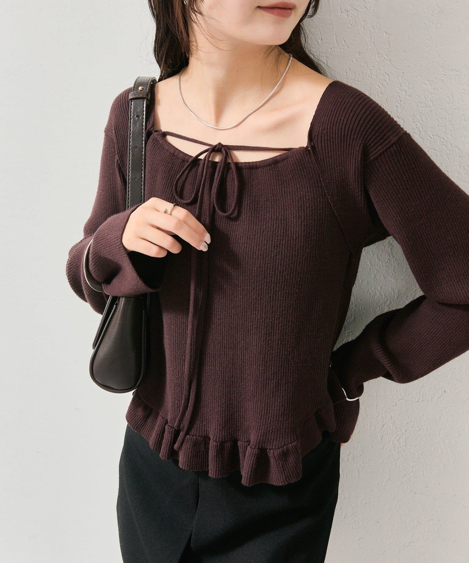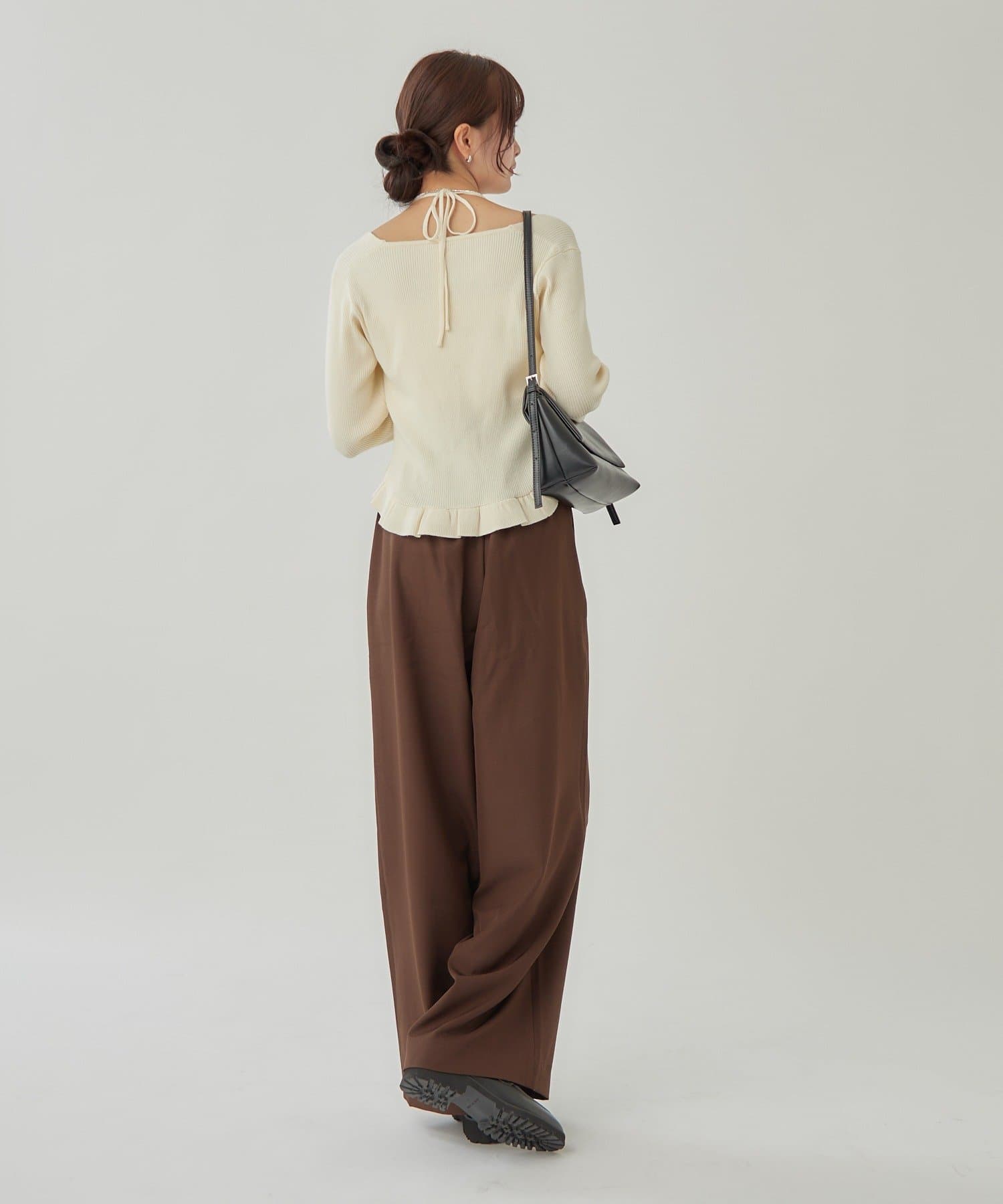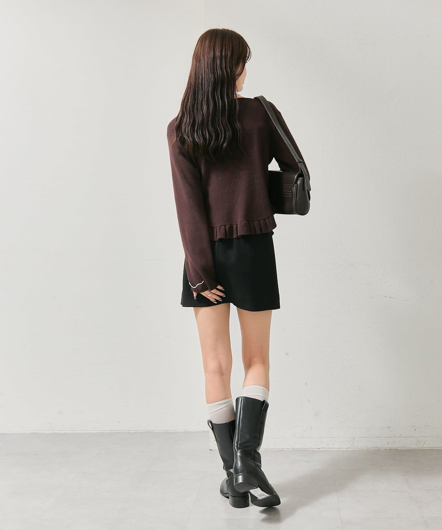 ペプラムシルエットがコーディネートに甘さをプラスするデザインニット!