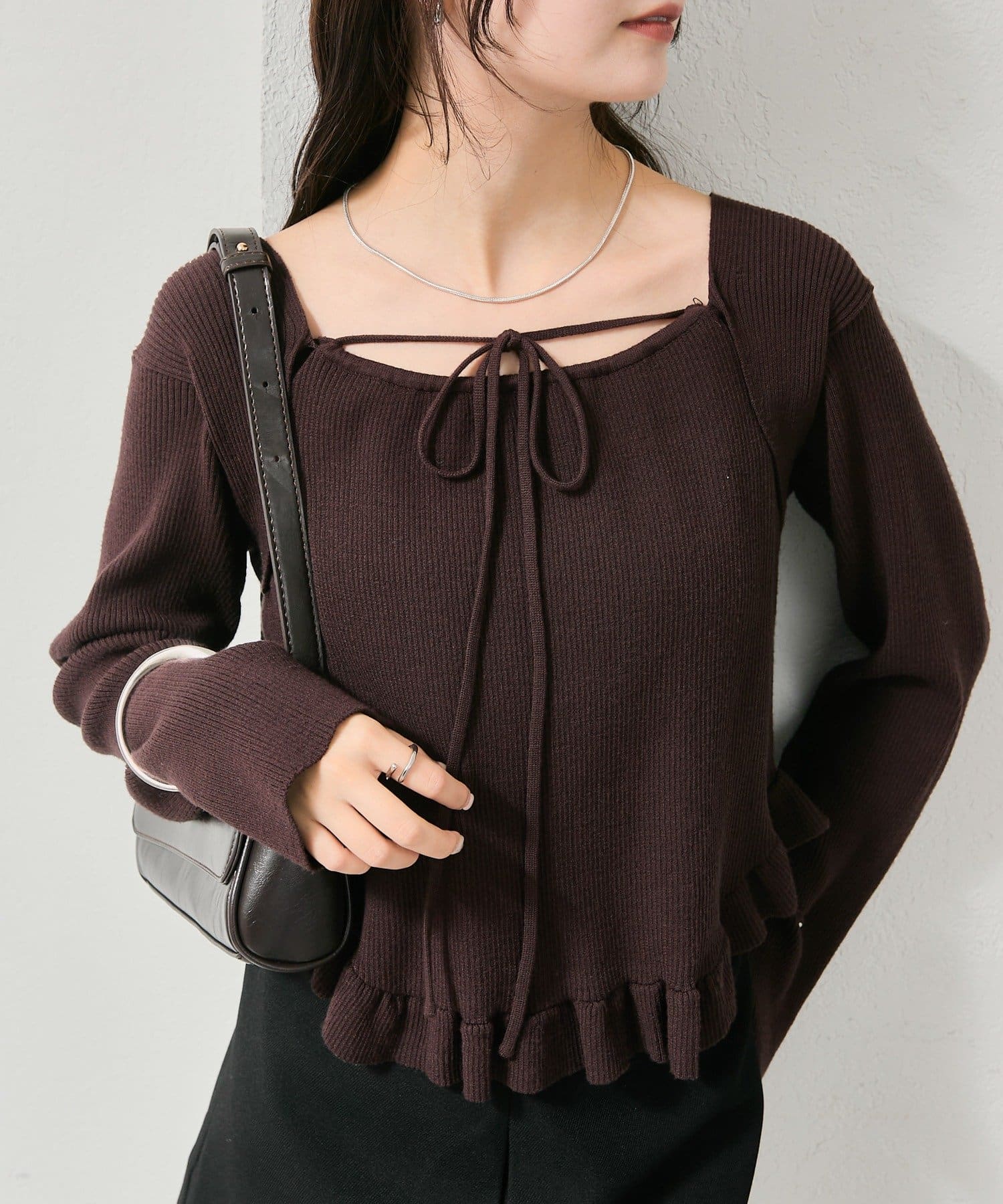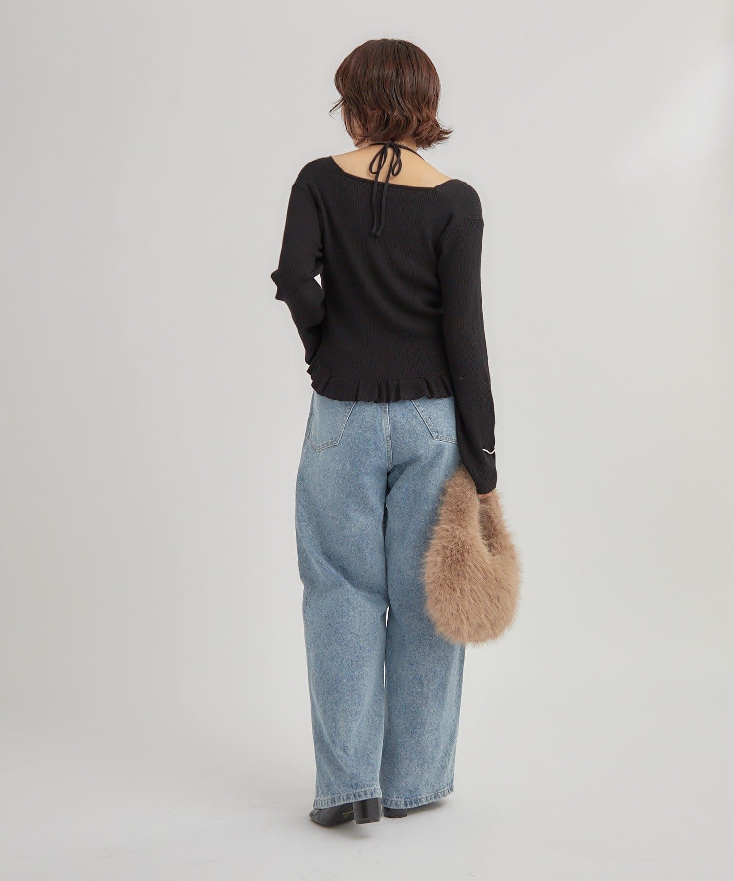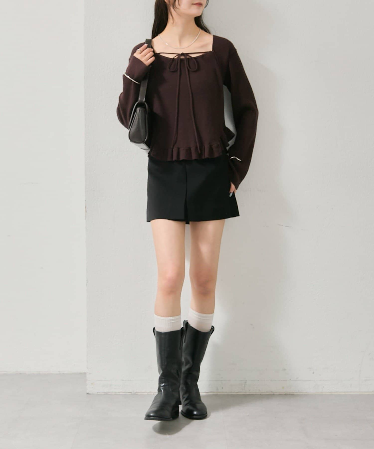 ペプラムシルエットがコーディネートに甘さをプラスするデザインニット!