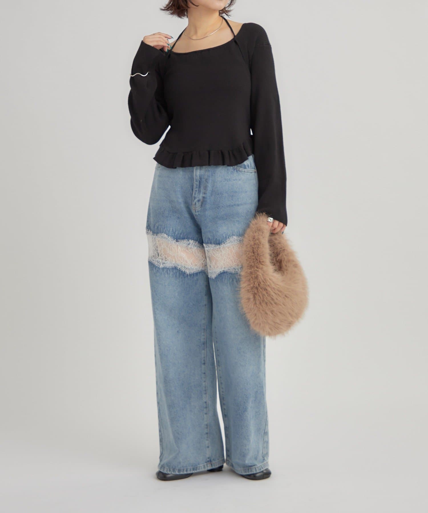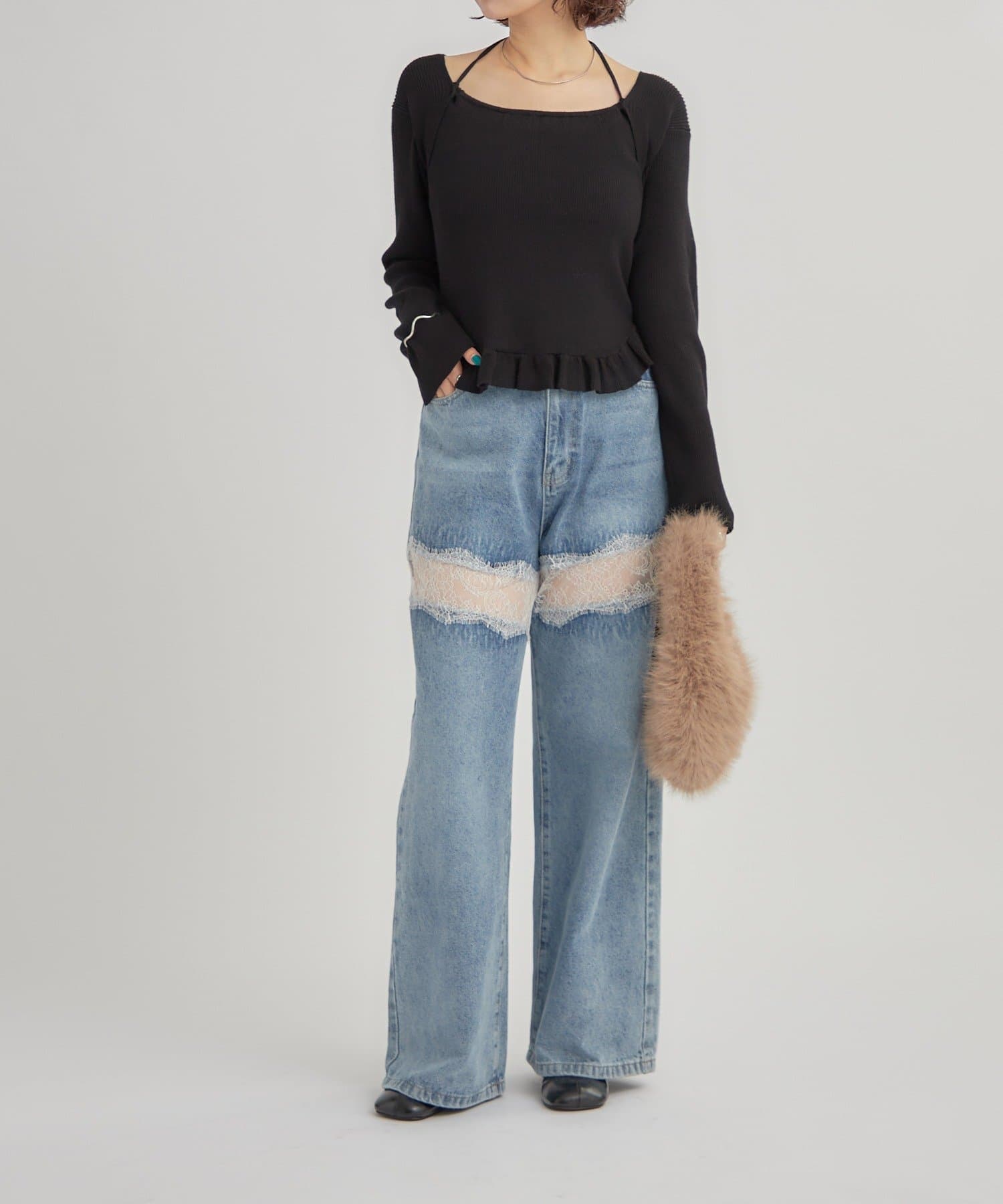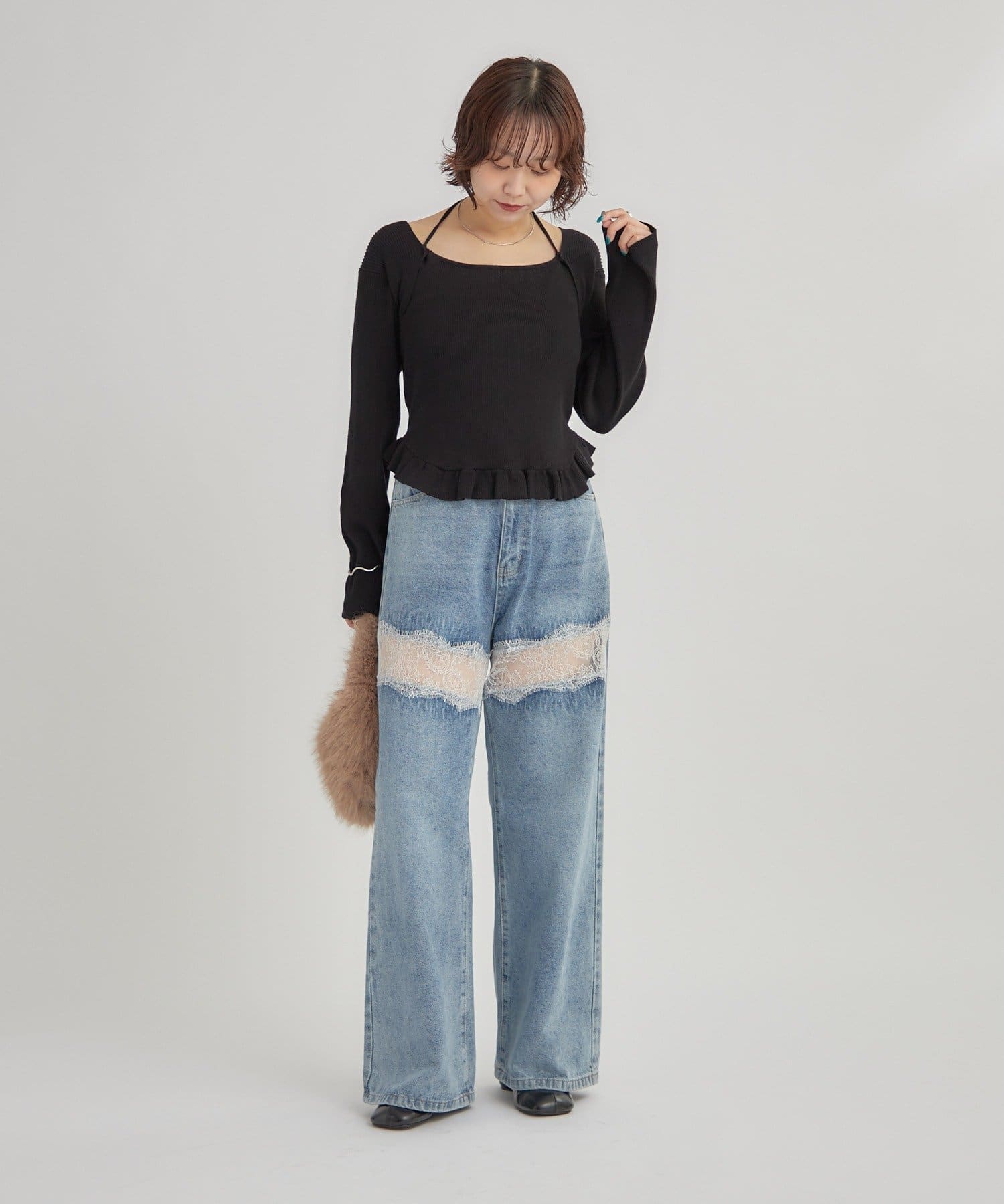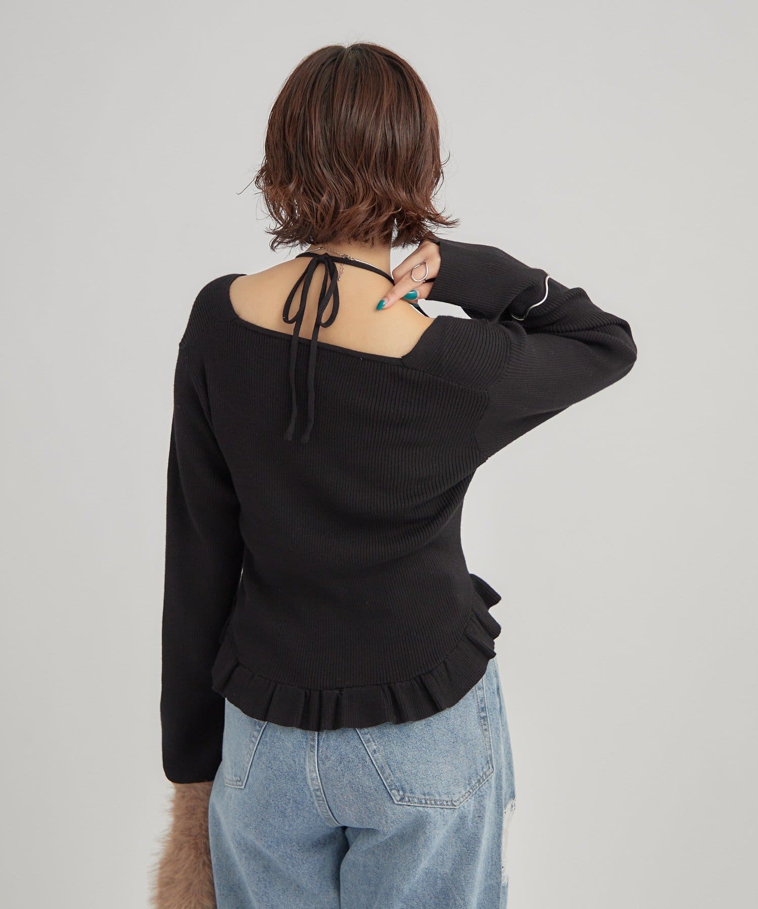 ペプラムシルエットがコーディネートに甘さをプラスするデザインニット!