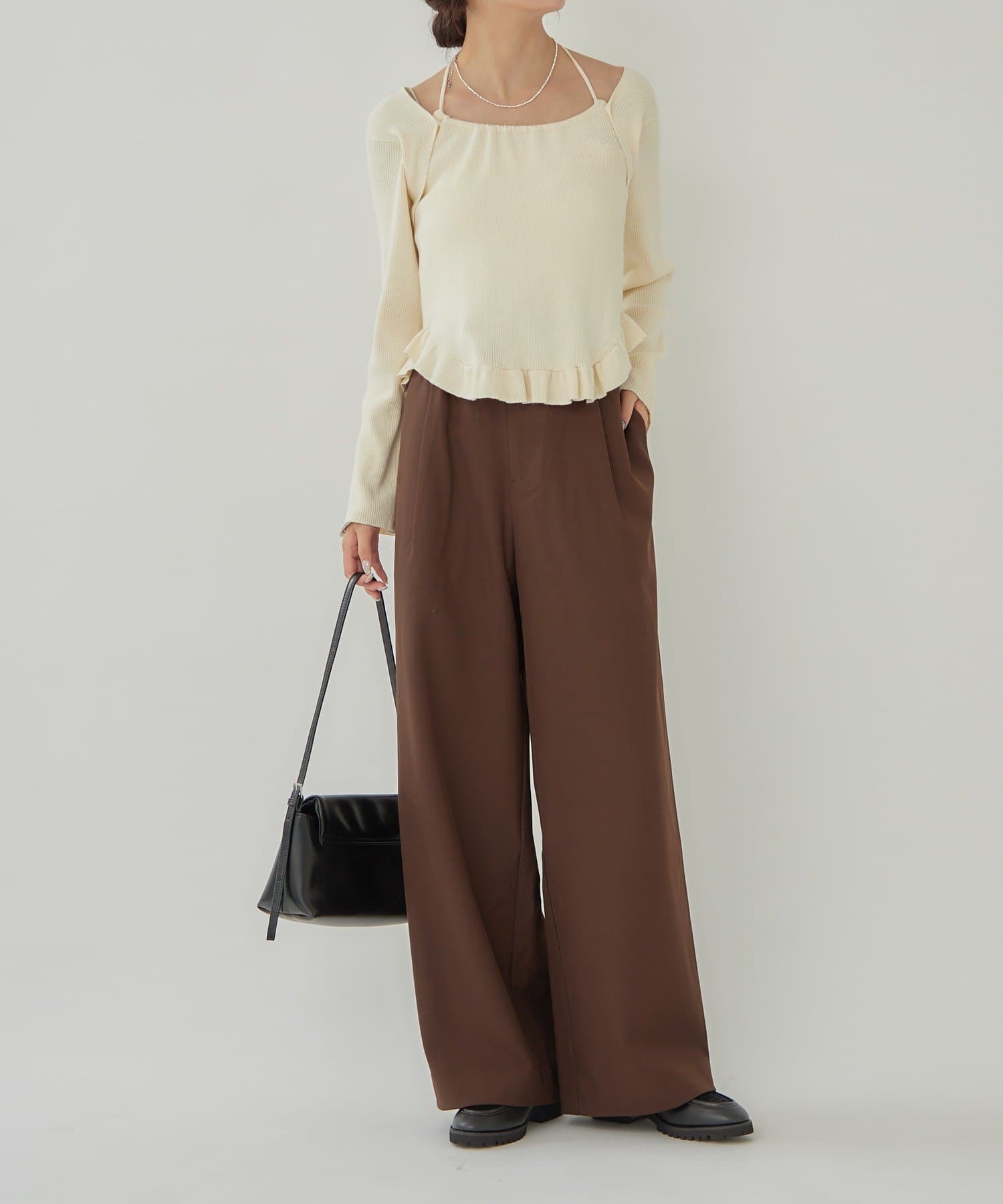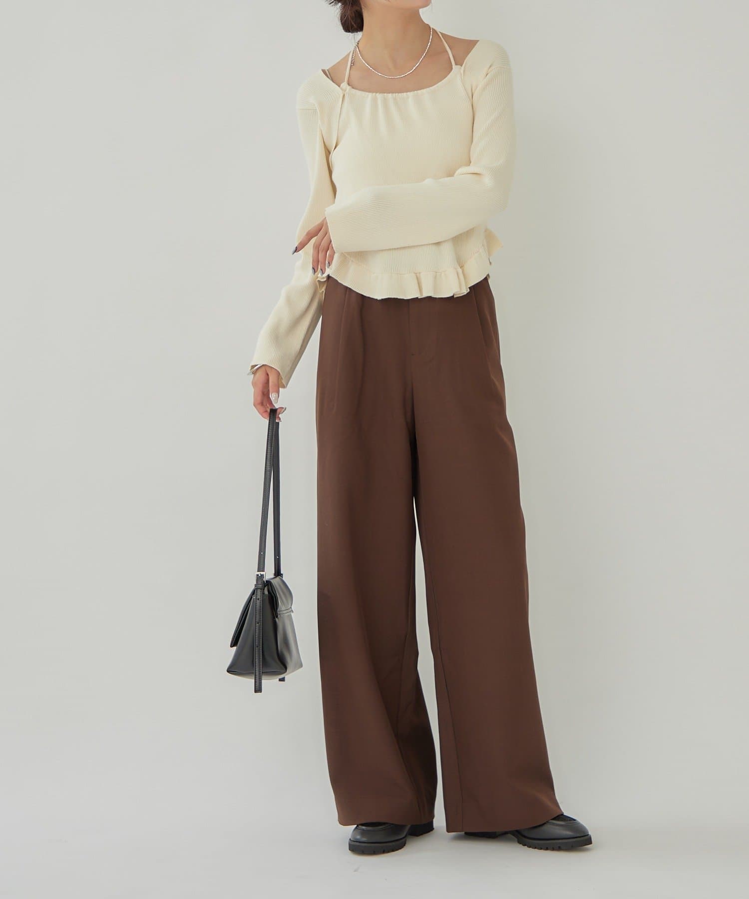 ・ハイウエストのボトムを合わせるとスタイルアップが叶います。